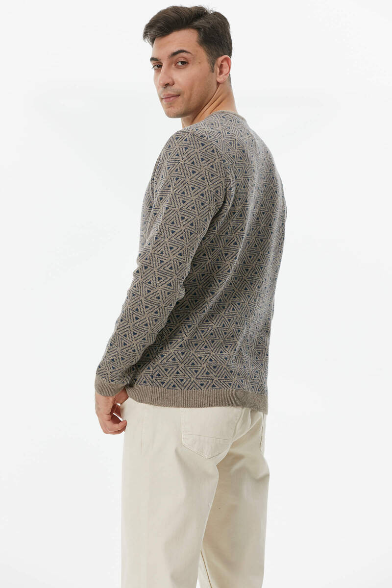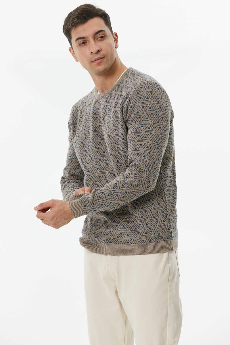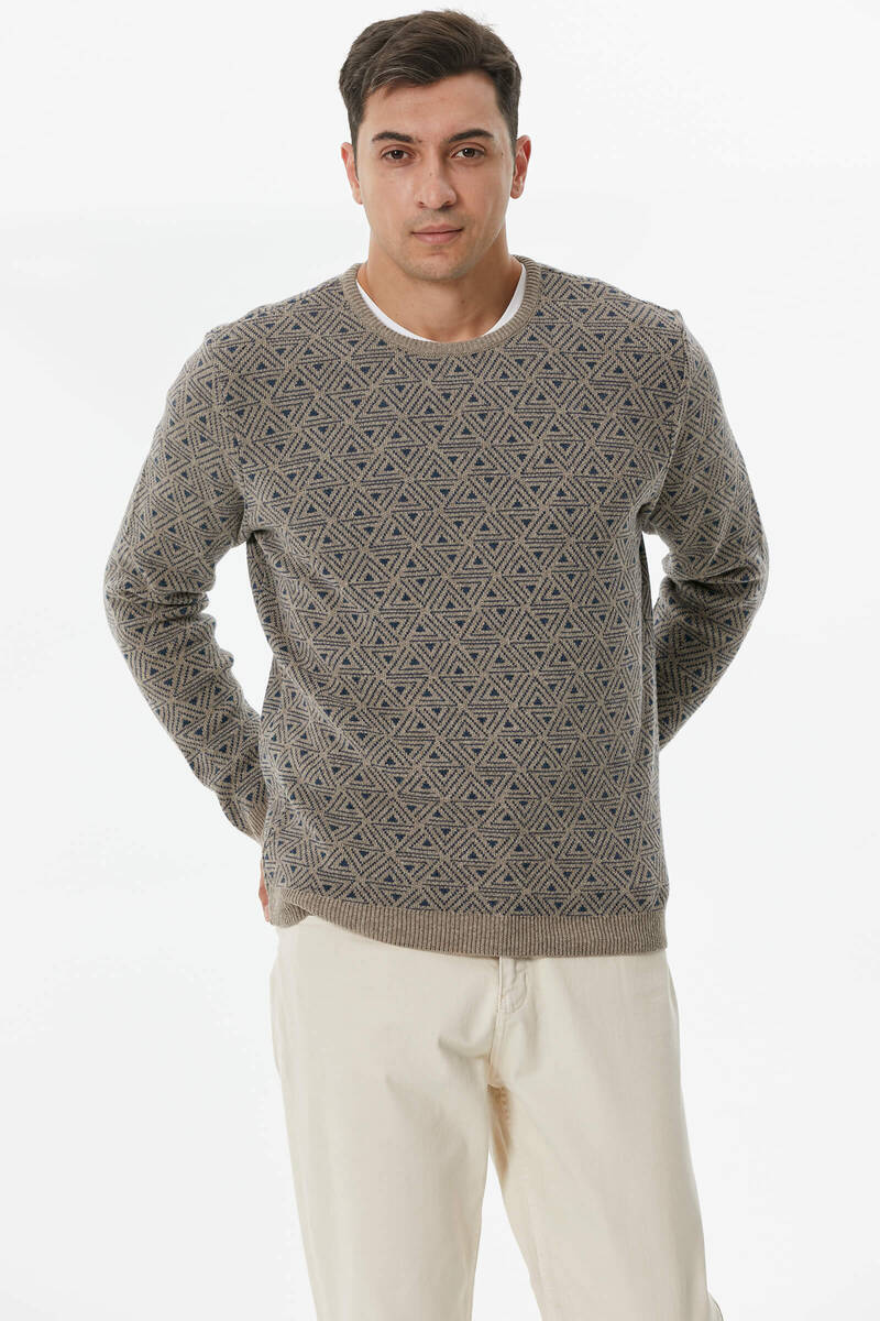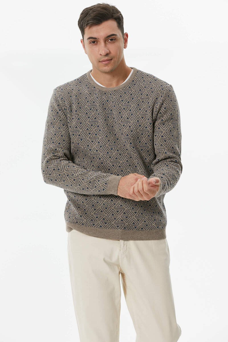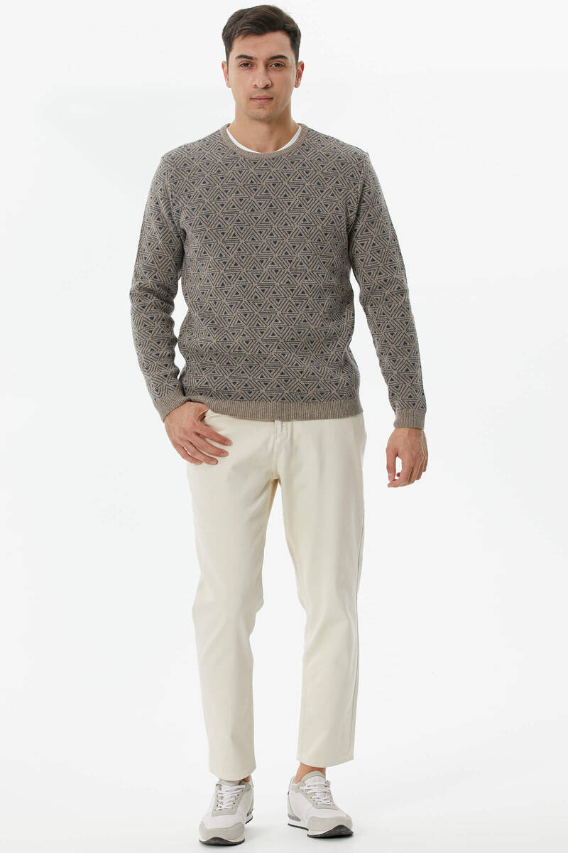 Erkek Sıfır Yaka Desenli Triko Kazak - Sütlü Kahve