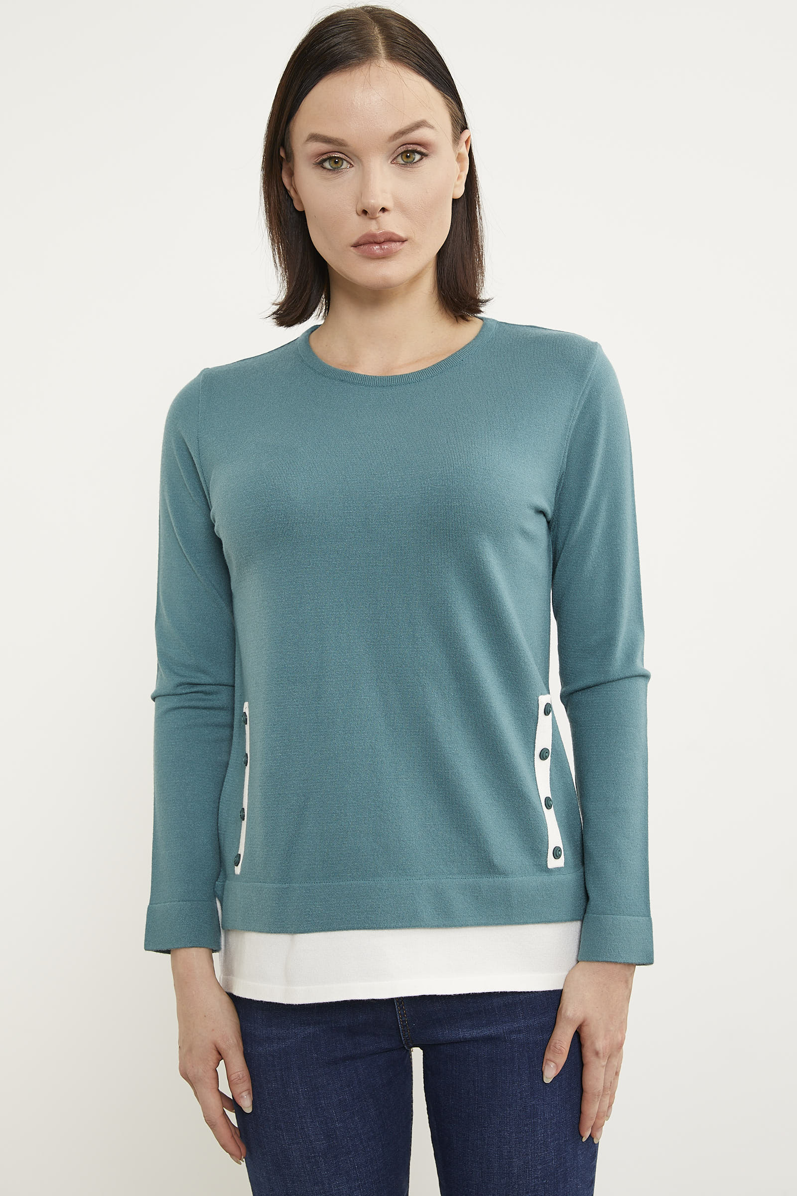 Etek Ucu Parçalı Triko Kazak - Mint
