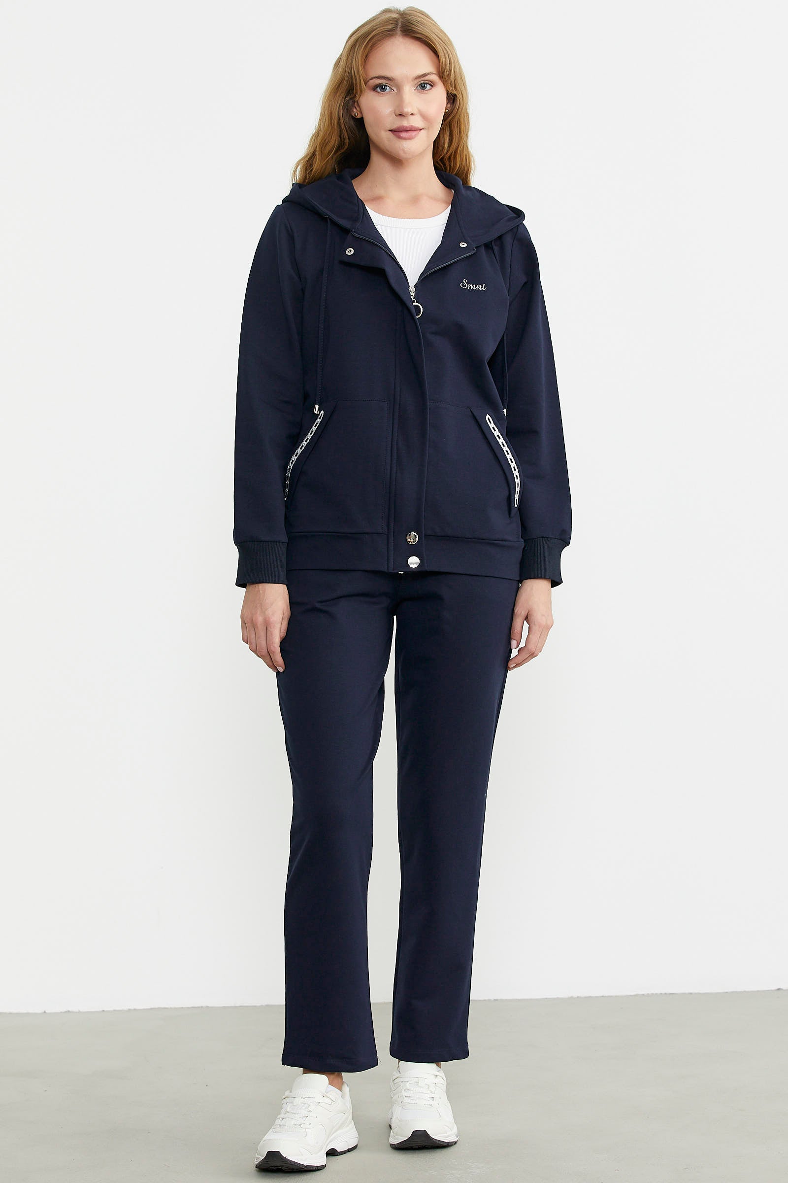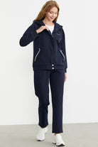 Fermuar Kapamalı Kapüşonlu Eşofman Takım - Lacivert