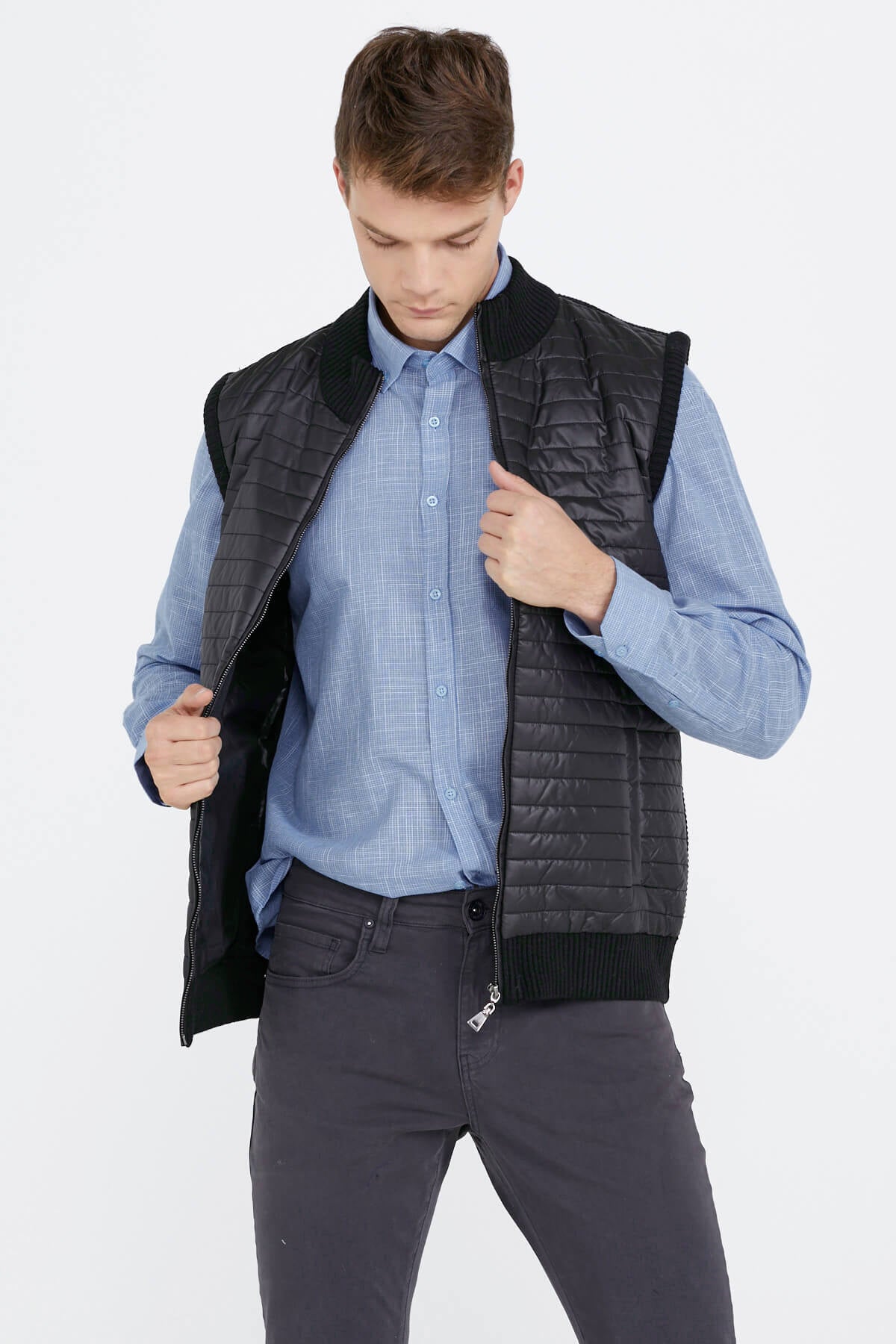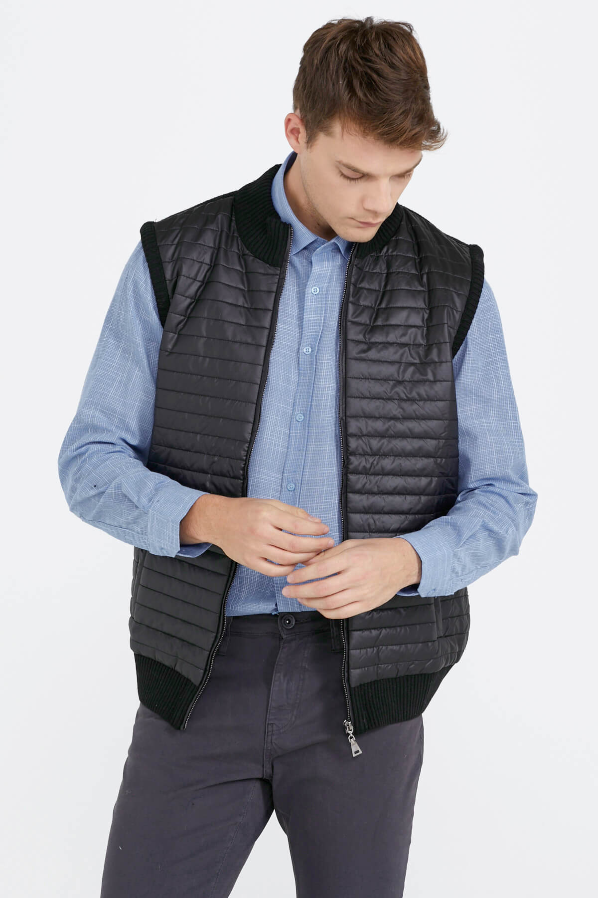 Fermuarlı Kapitone Erkek Yelek - Siyah