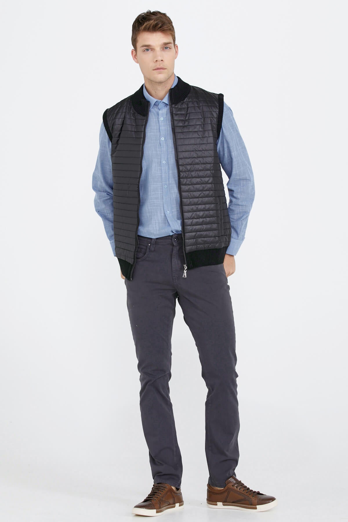 Ön zemini kapitone, arka zemini triko olan yelek, fermuar kapamasıyla kullanım kolaylığı sunuyor.
