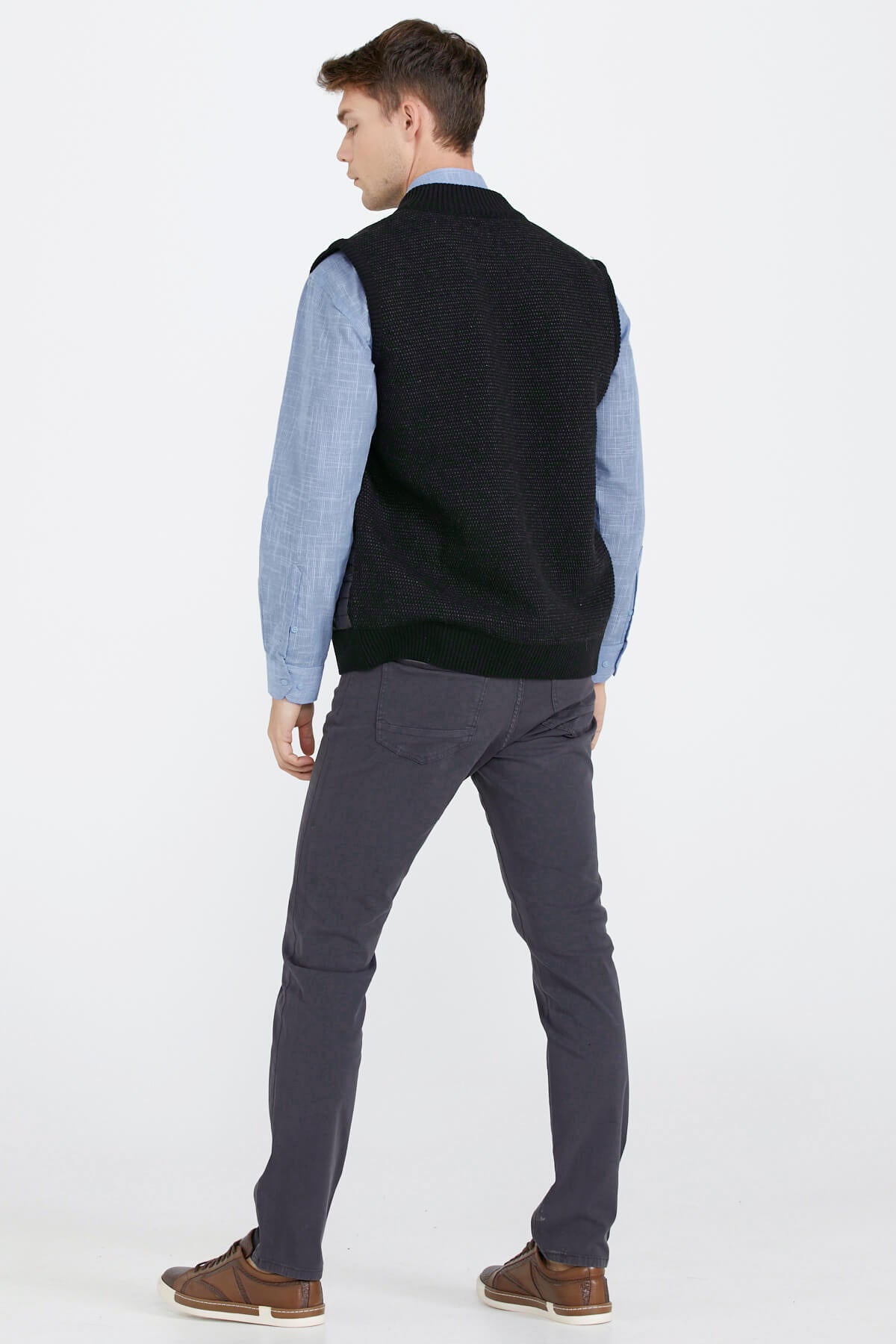 Triko yelek, minimal formda zamansız stil sunan tasarımıyla dikkat çekiyor.