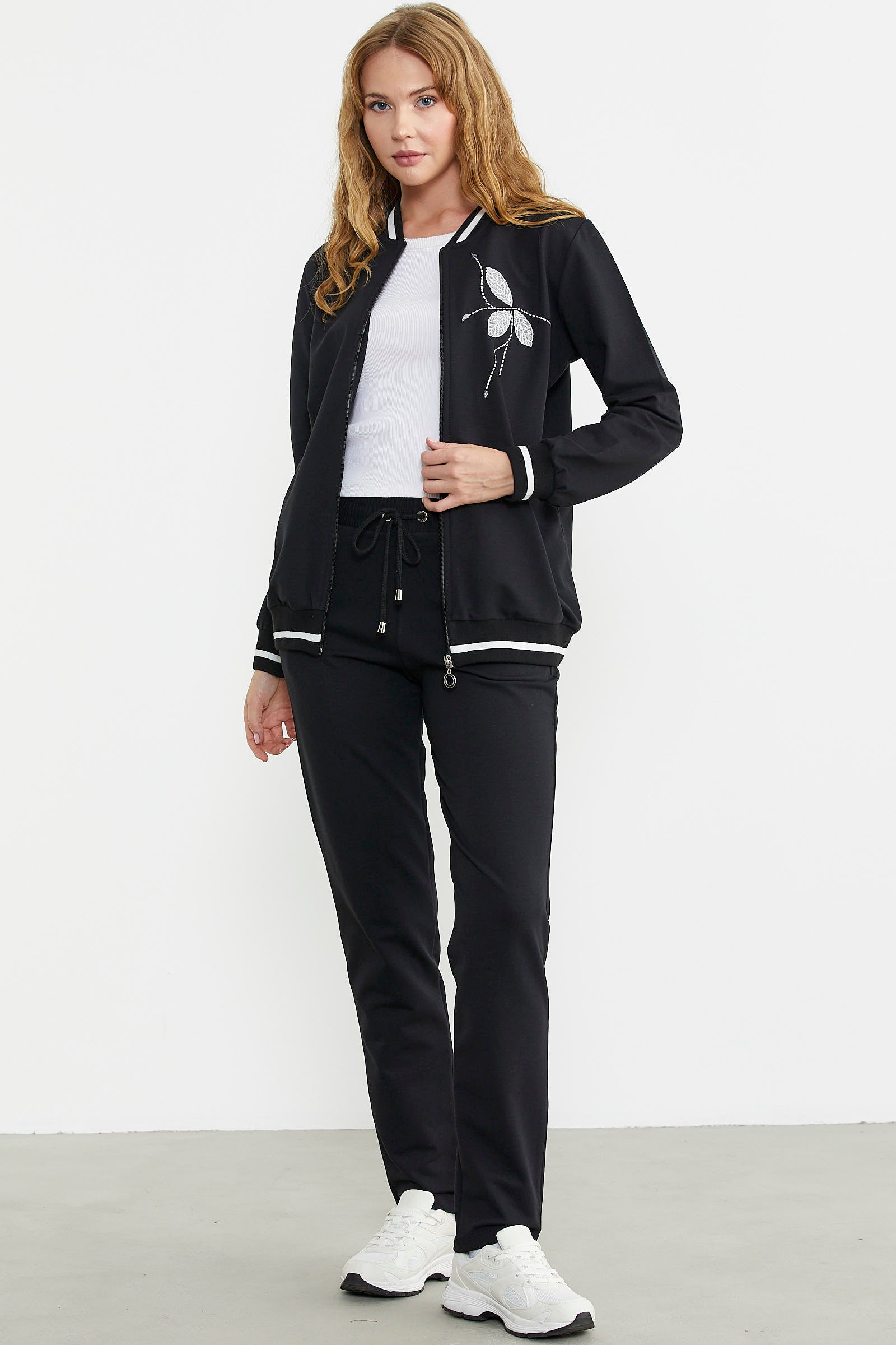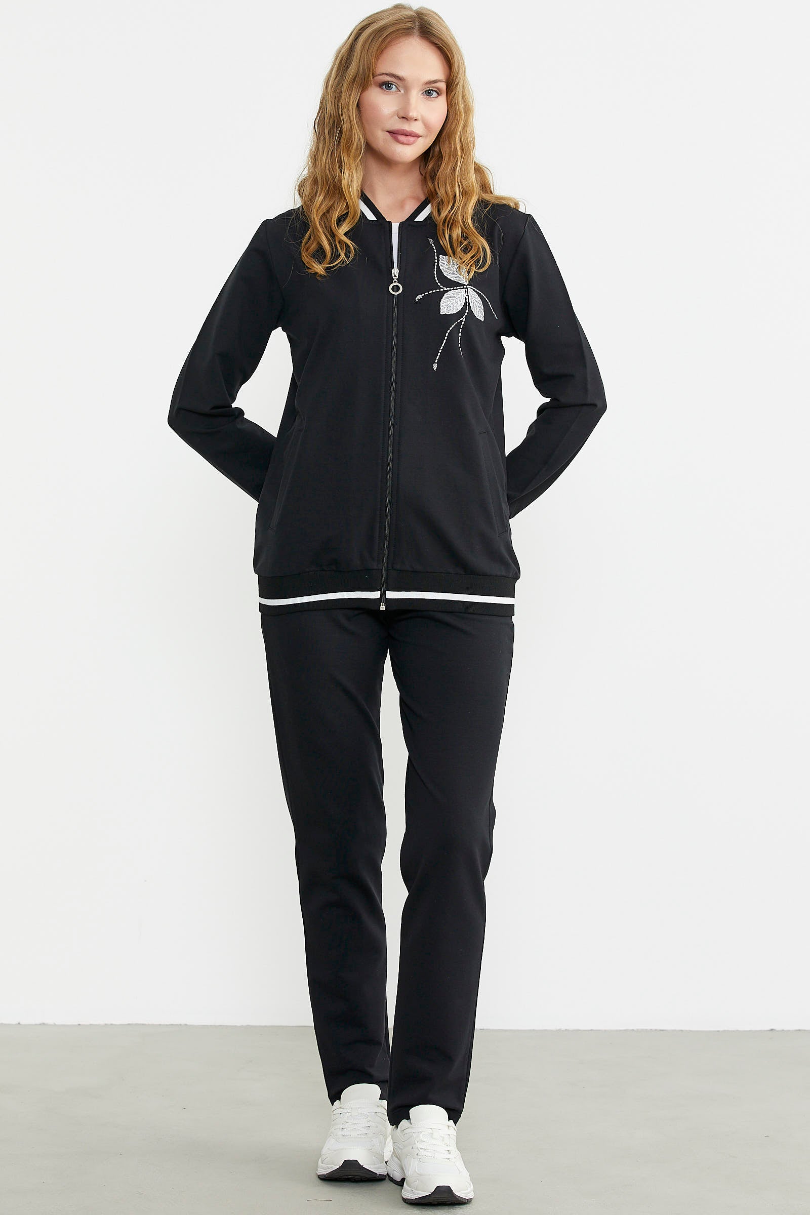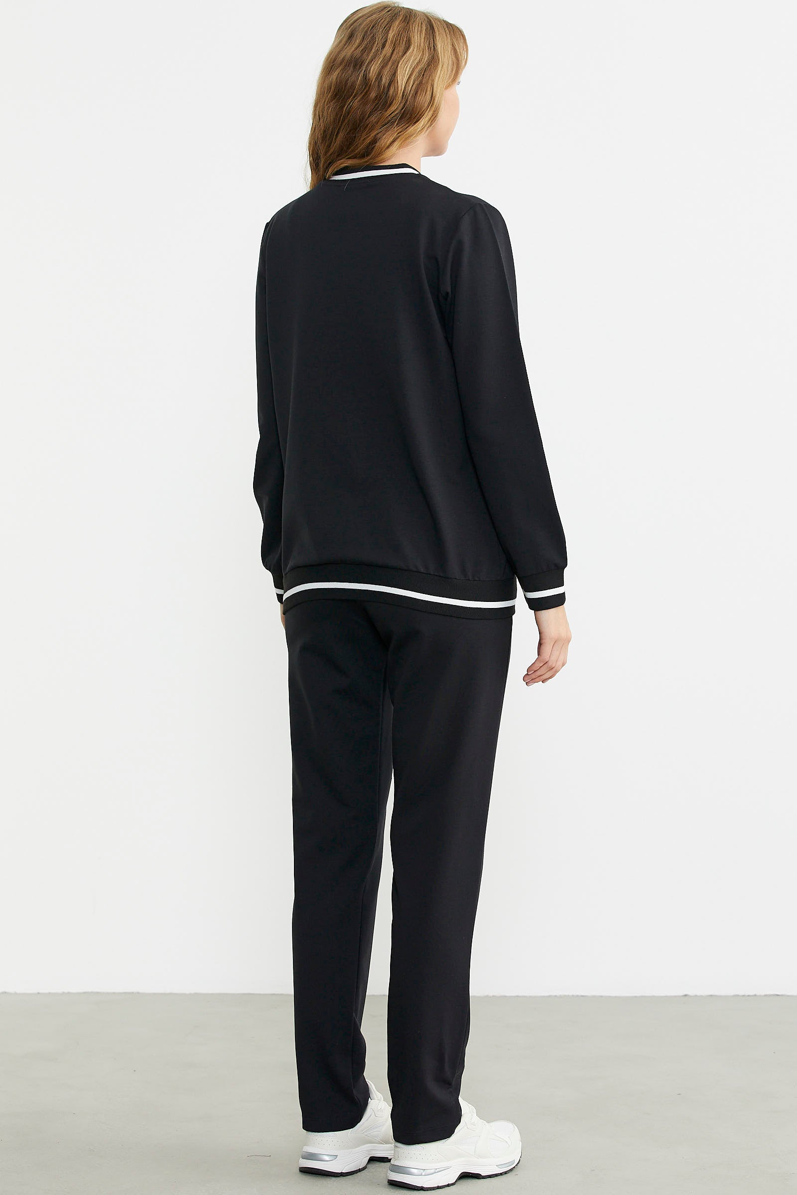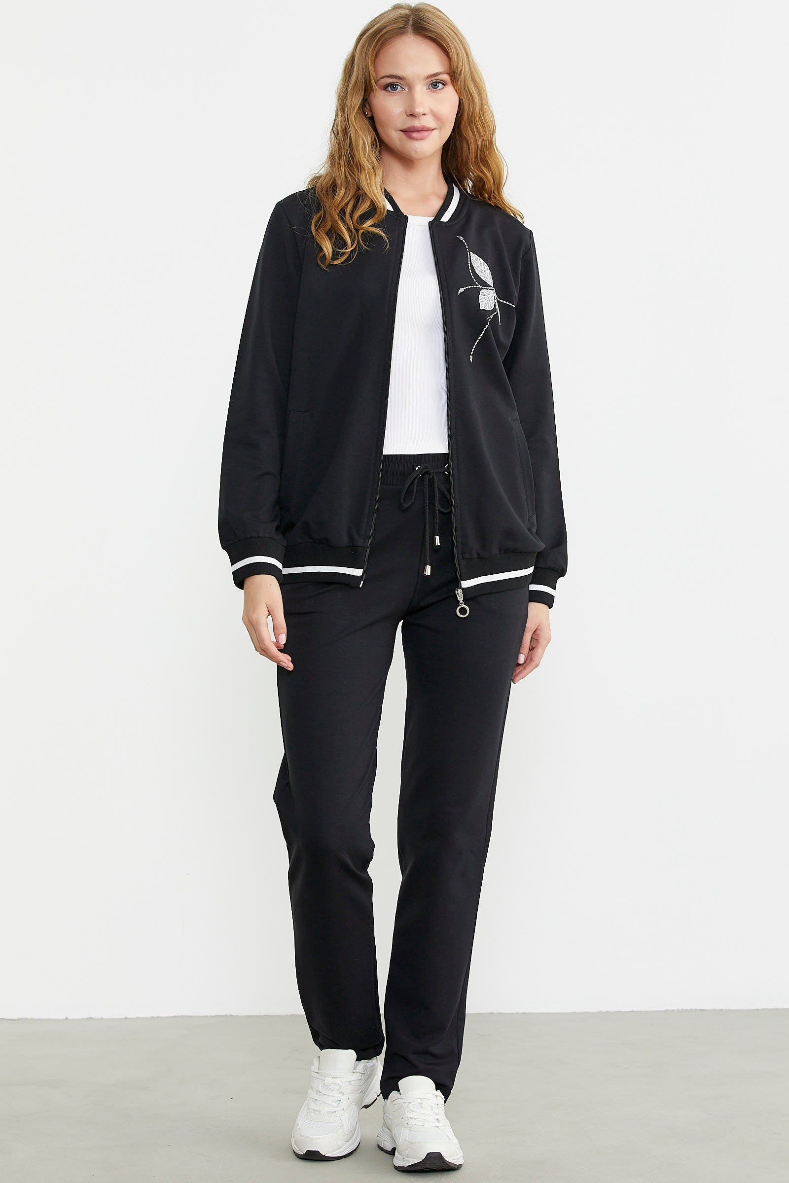 Fermuarlı Triko Kombinli Eşofman Takım - Siyah