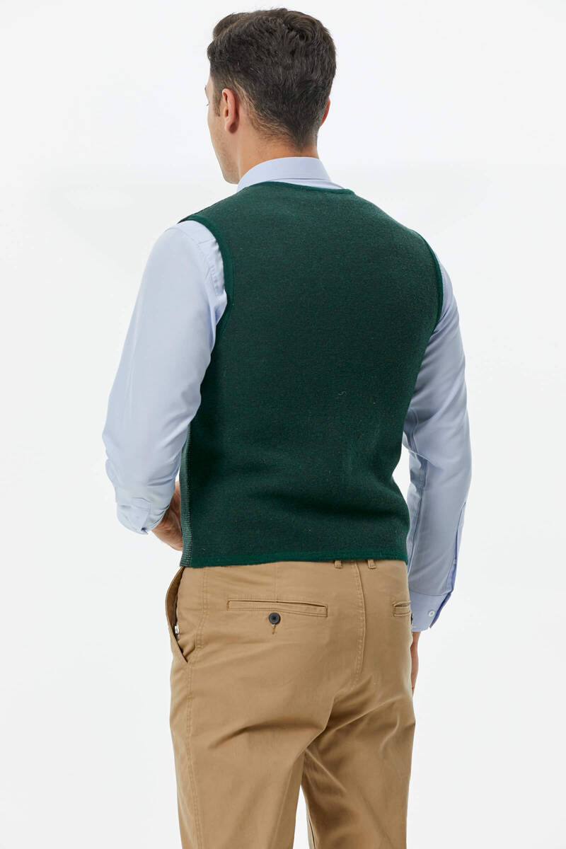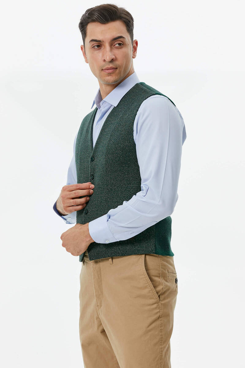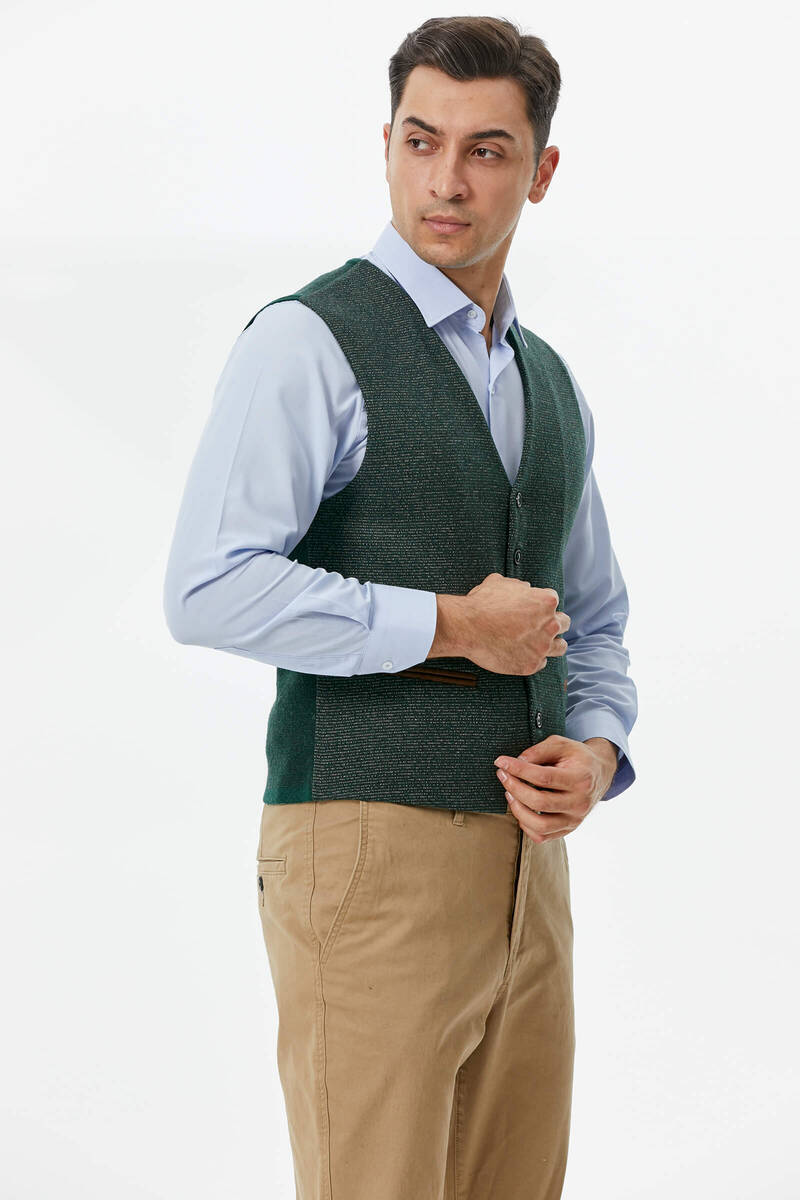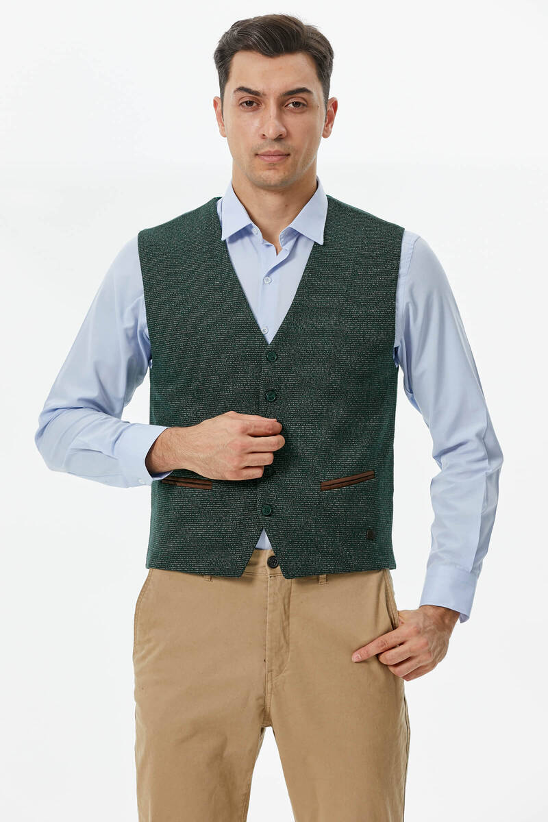 Fileto Cepli Düğmeli Yelek - Yeşil