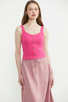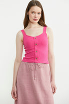 Fitilli Düğme Detaylı Basic Atlet - Fuşya