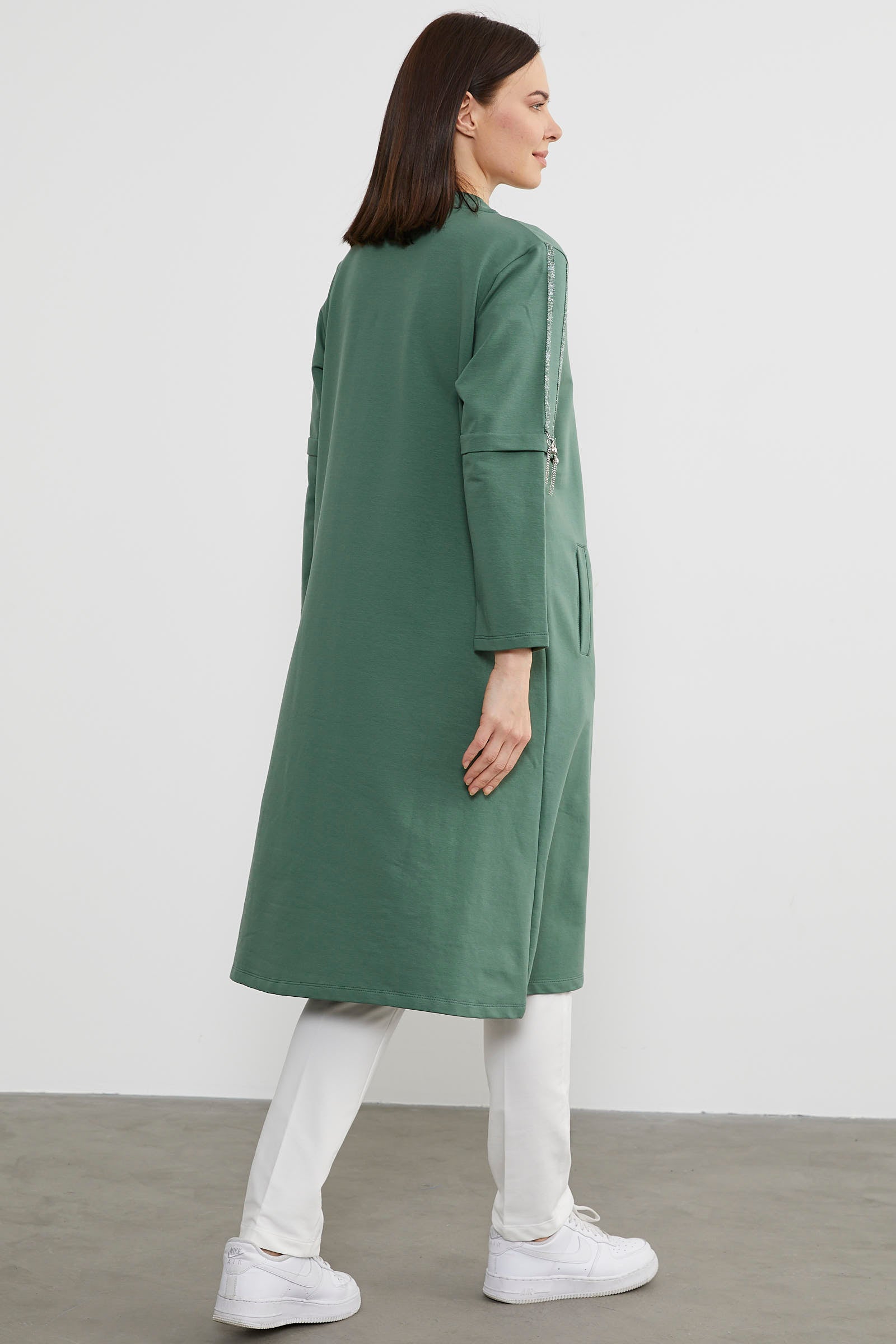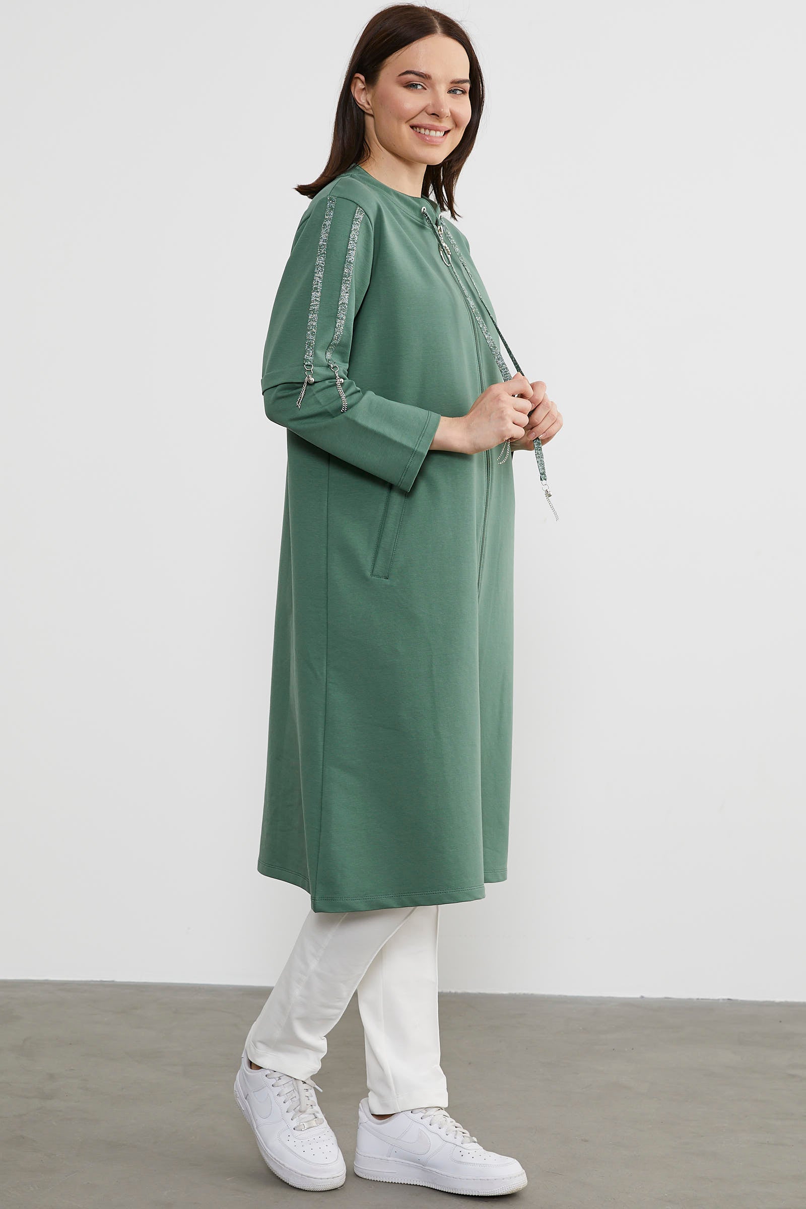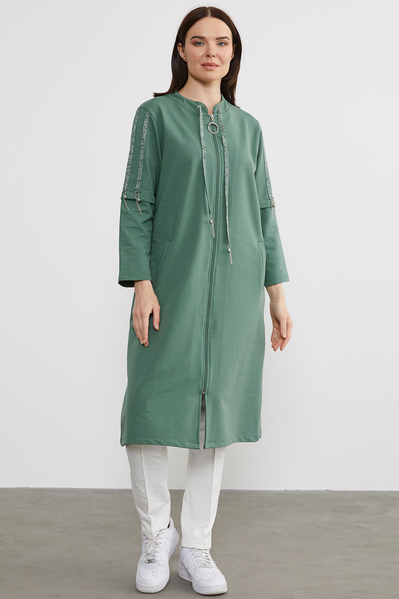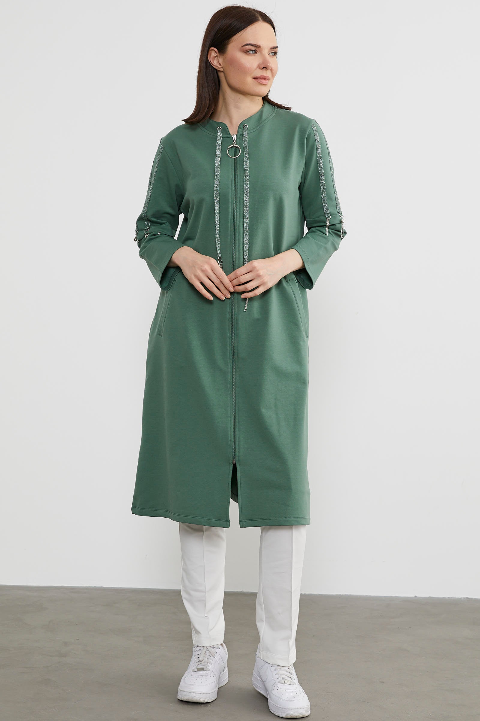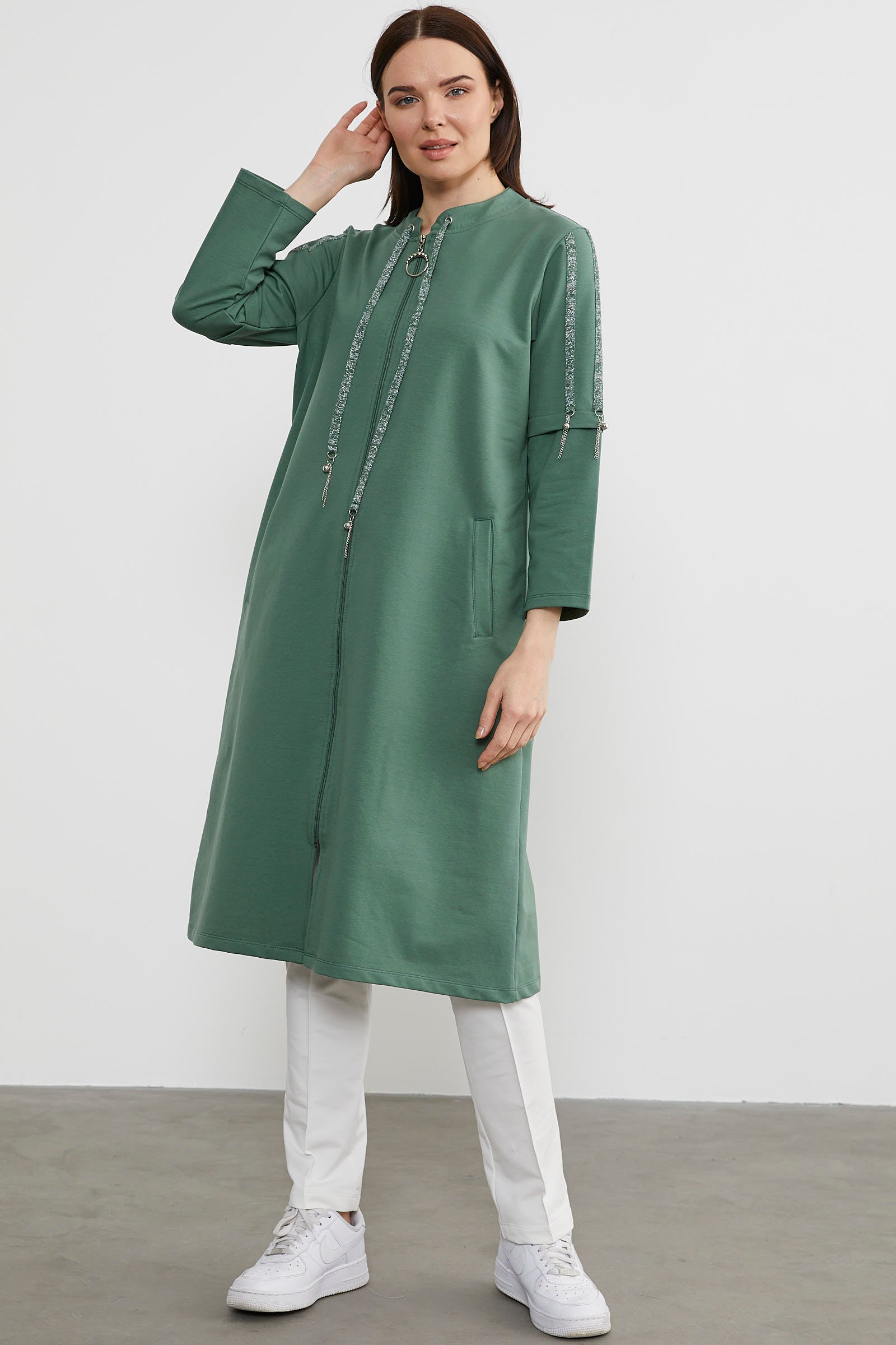 Hakim Yaka Fermuarlı Rahat Kalıp Kap - Yeşil