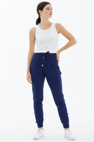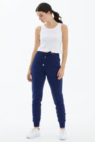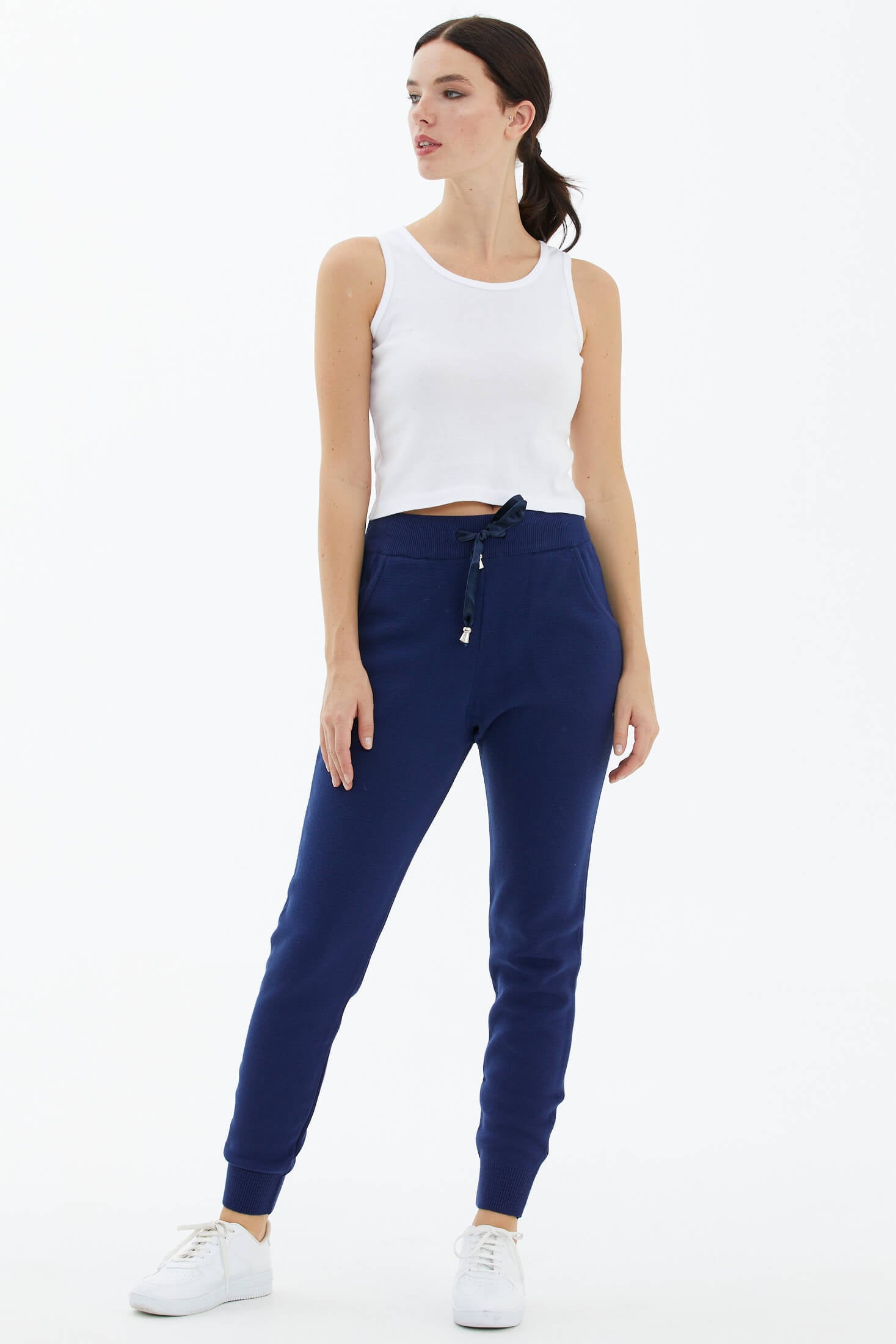 Beli lastik kaplı ve büzgü bağı bulunan, paça ağızları ve beli lastik örgülü jogger triko pantolon.