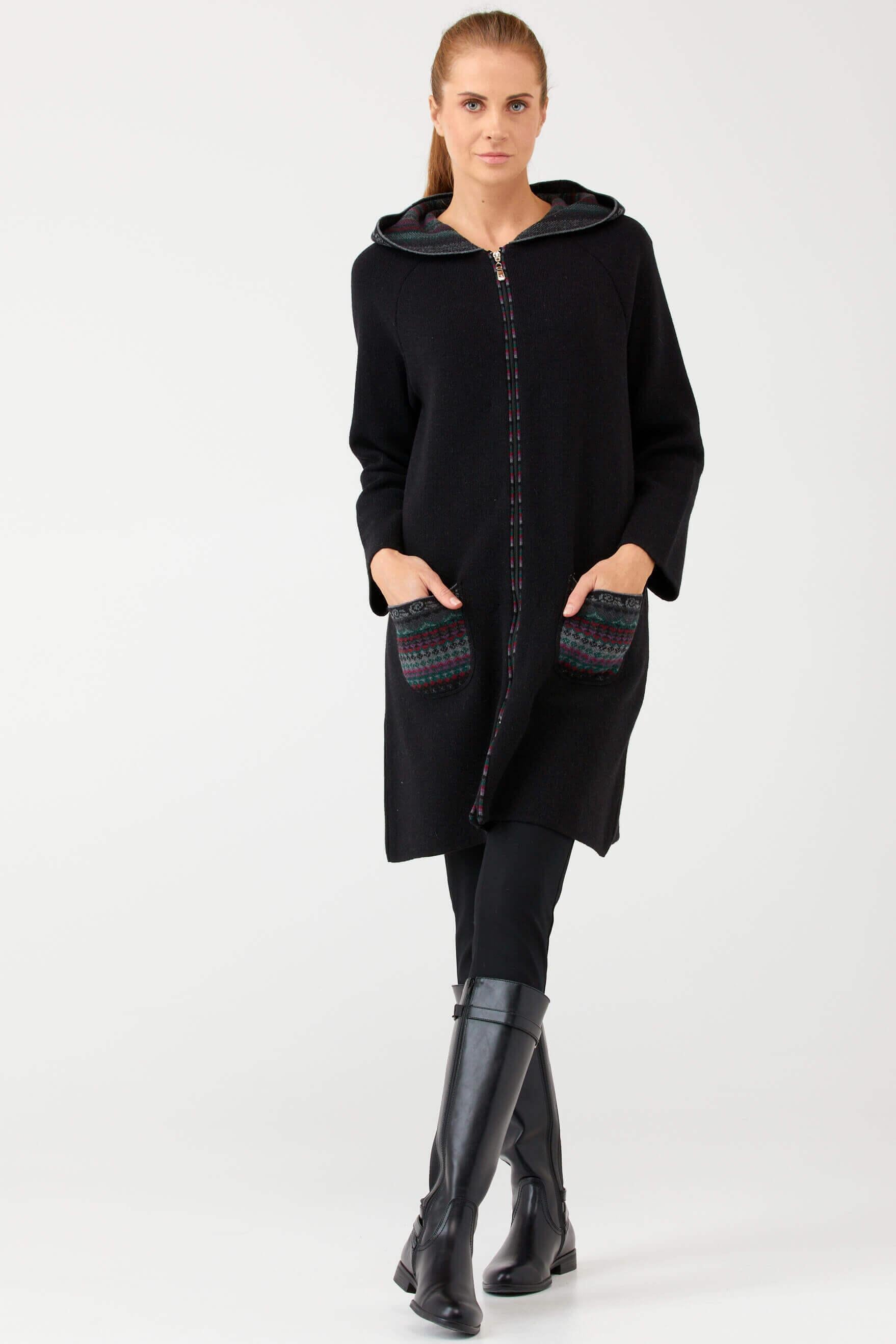 Kadın Kapüşonlu Fermuarlı Triko Ceket - Siyah