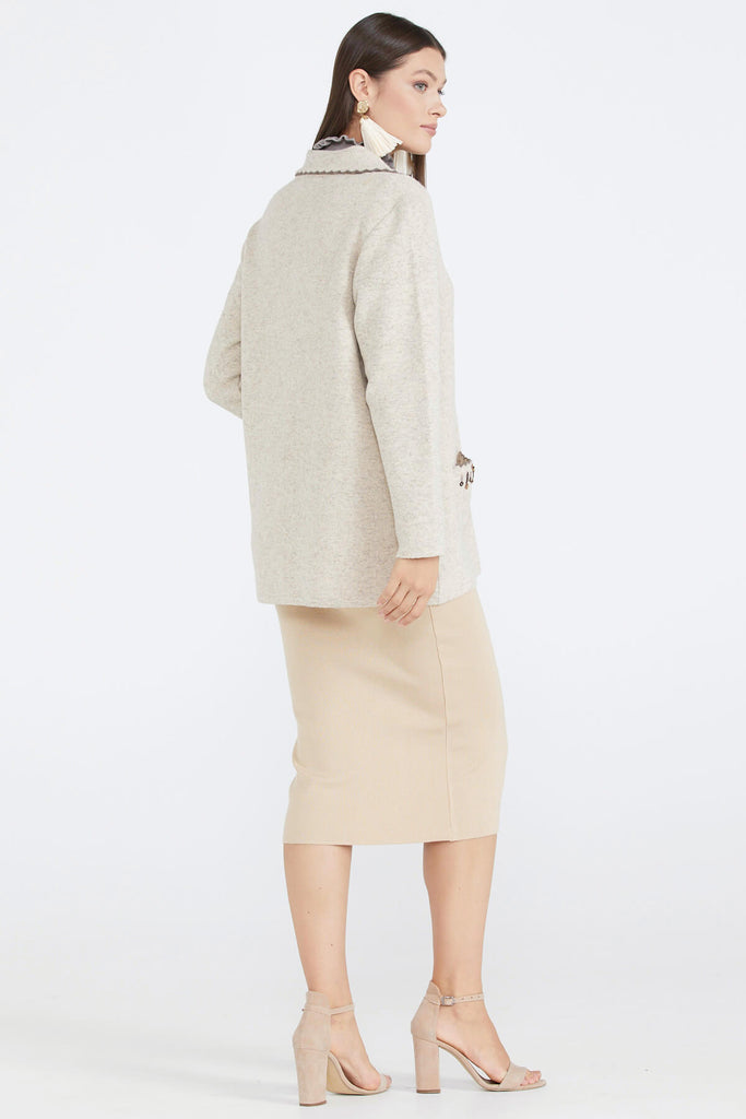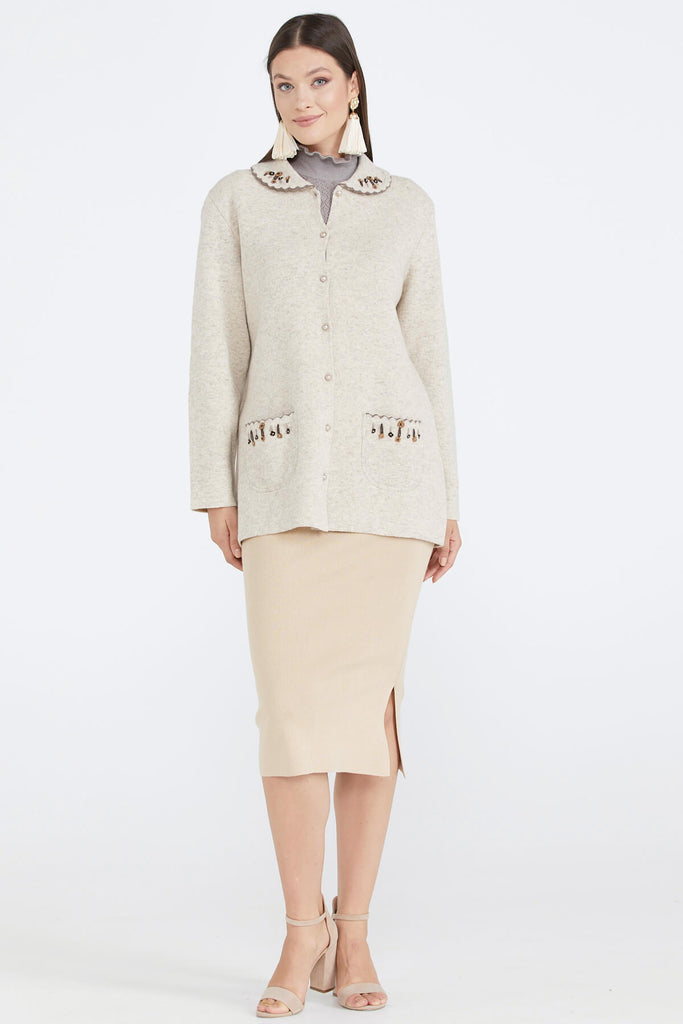 Kadın Polo Yaka Cepli Nakışlı Triko Ceket - Açık Bej