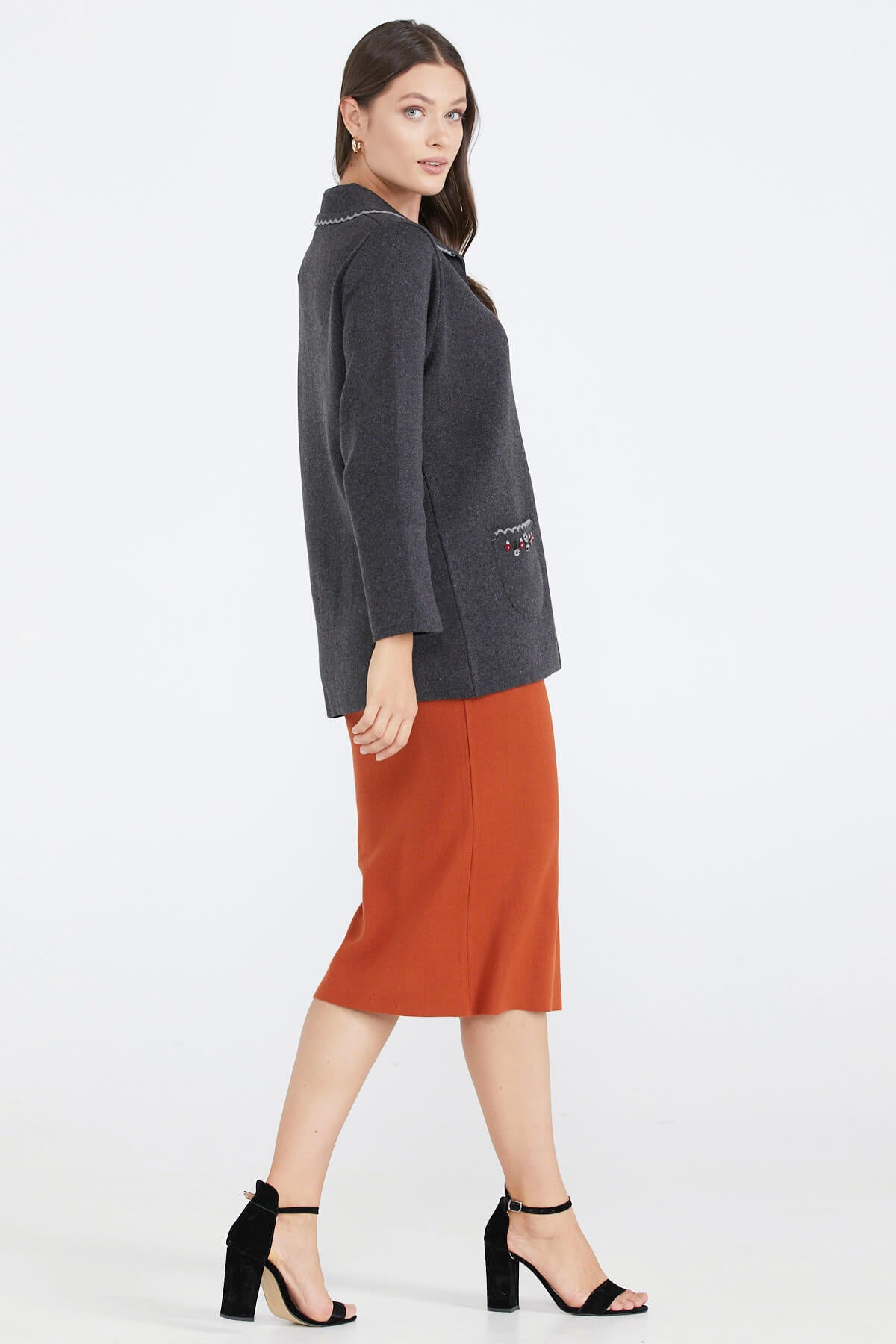 Kadın Polo Yaka Cepli Nakışlı Triko Ceket - Antrasit