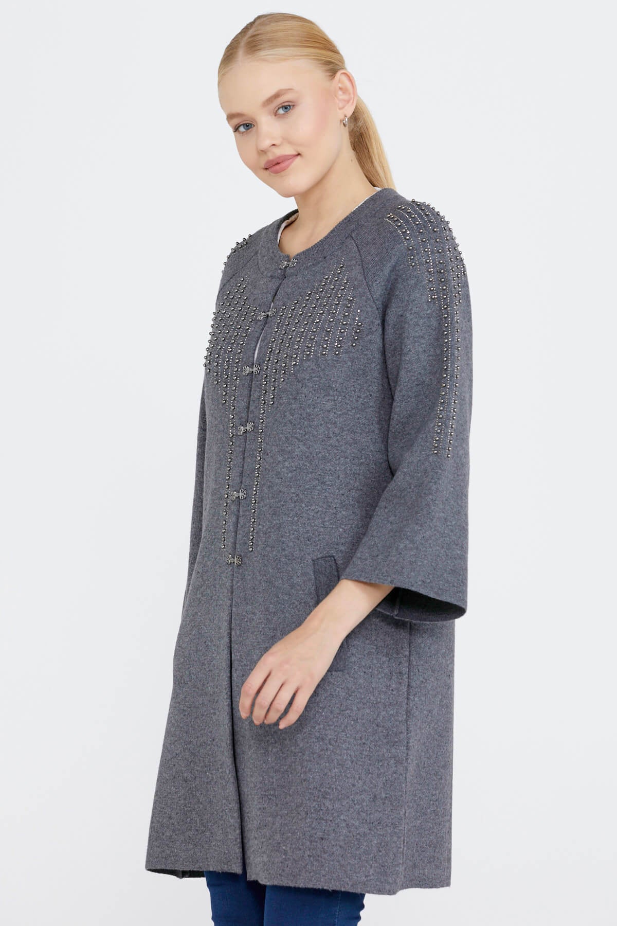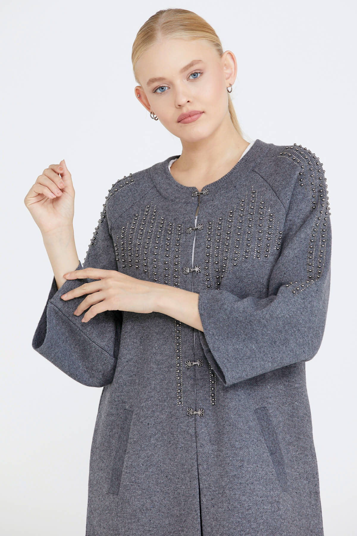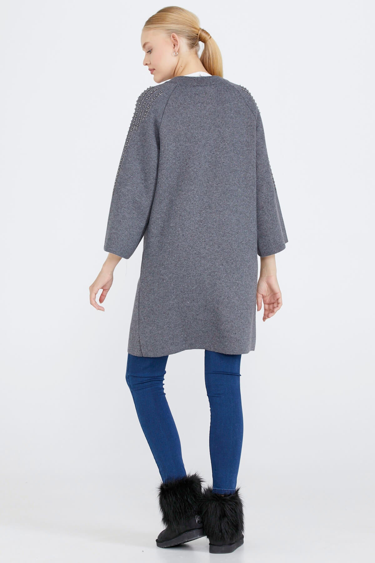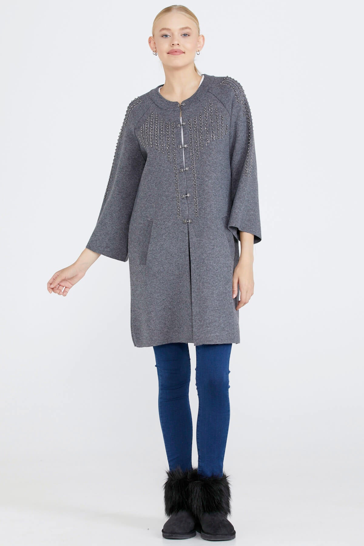 Kadın Taşlı Agraflı Triko Ceket - Koyu Gri