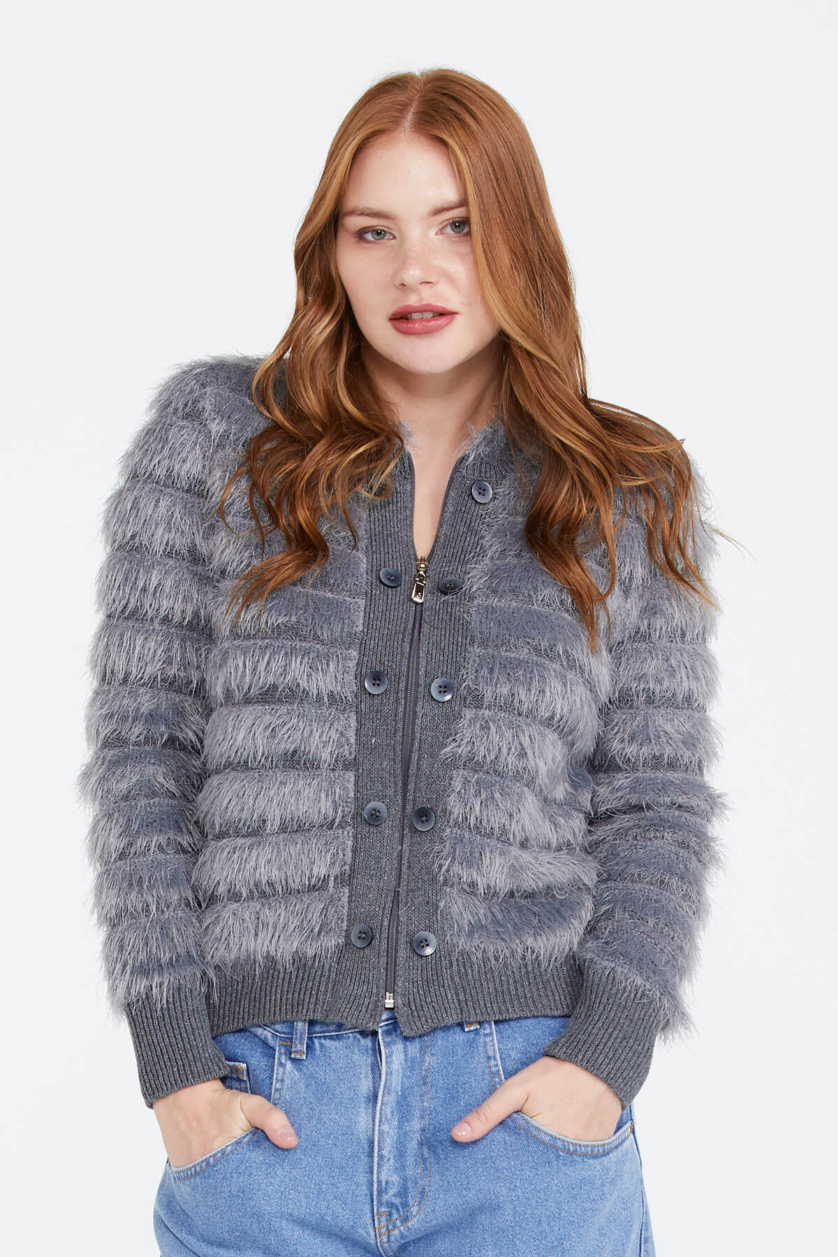 Kadın Triko Ceket - Gri