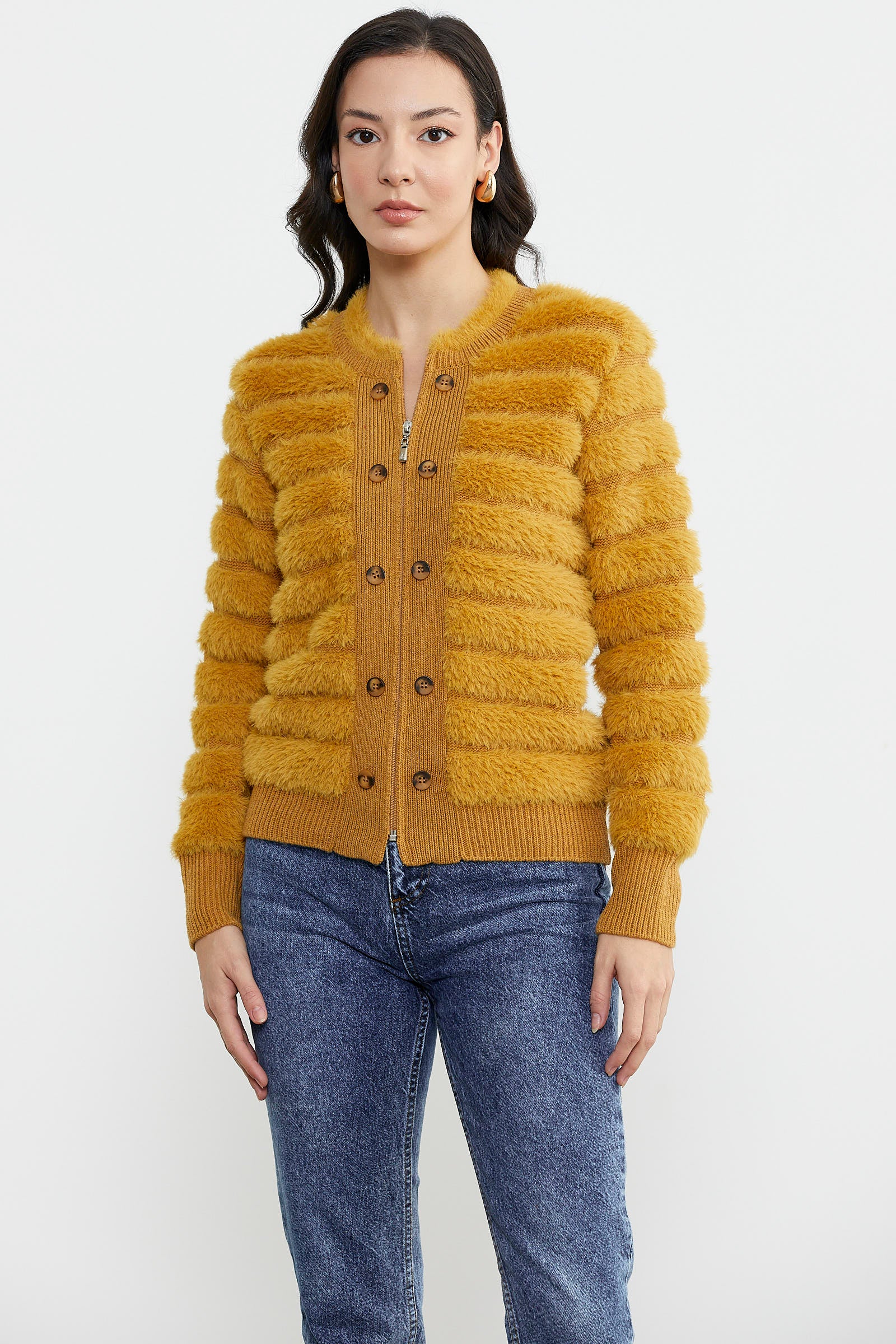 Kadın Triko Ceket - Hardal