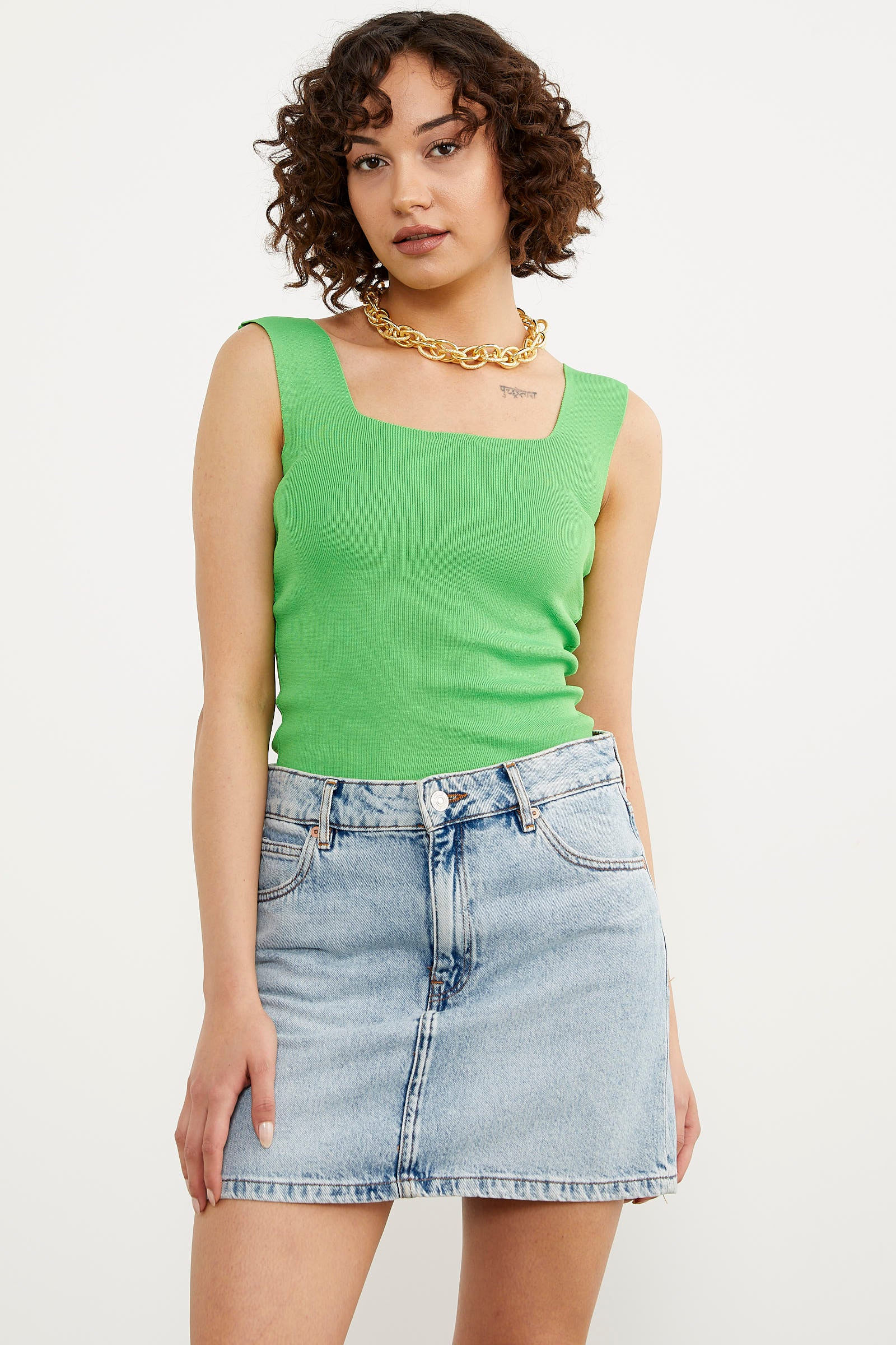 Kalın Askılı Basic Triko Atlet - Fıstık Yeşili