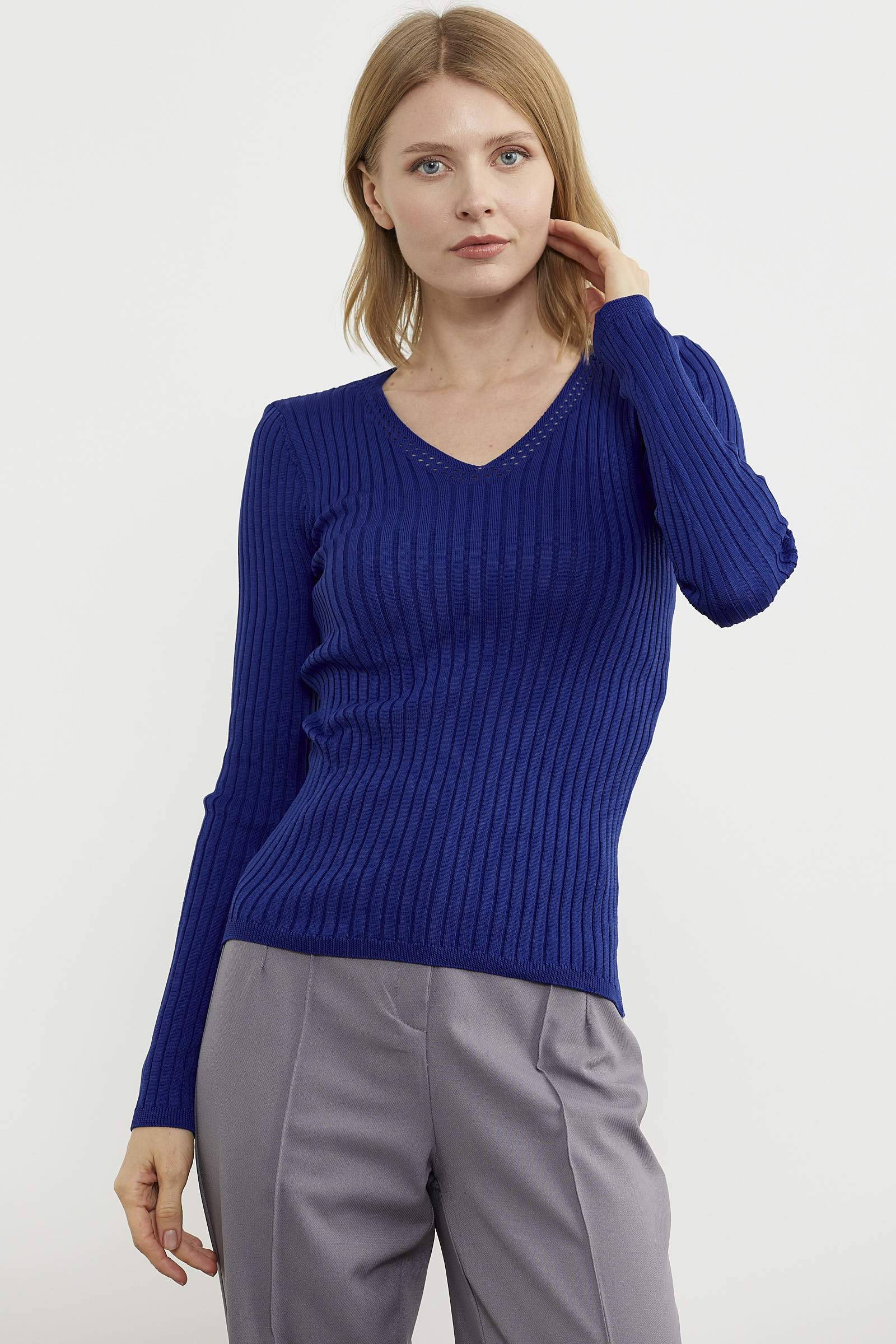 Fitilli dokusu ve esnek kumaşıyla rahat hissettirecek V yakalı uzun kollu triko kazak kolay kombinlenebilecek bir parça olmasının yanı sıra stillerinizde öne çıkacaktır.