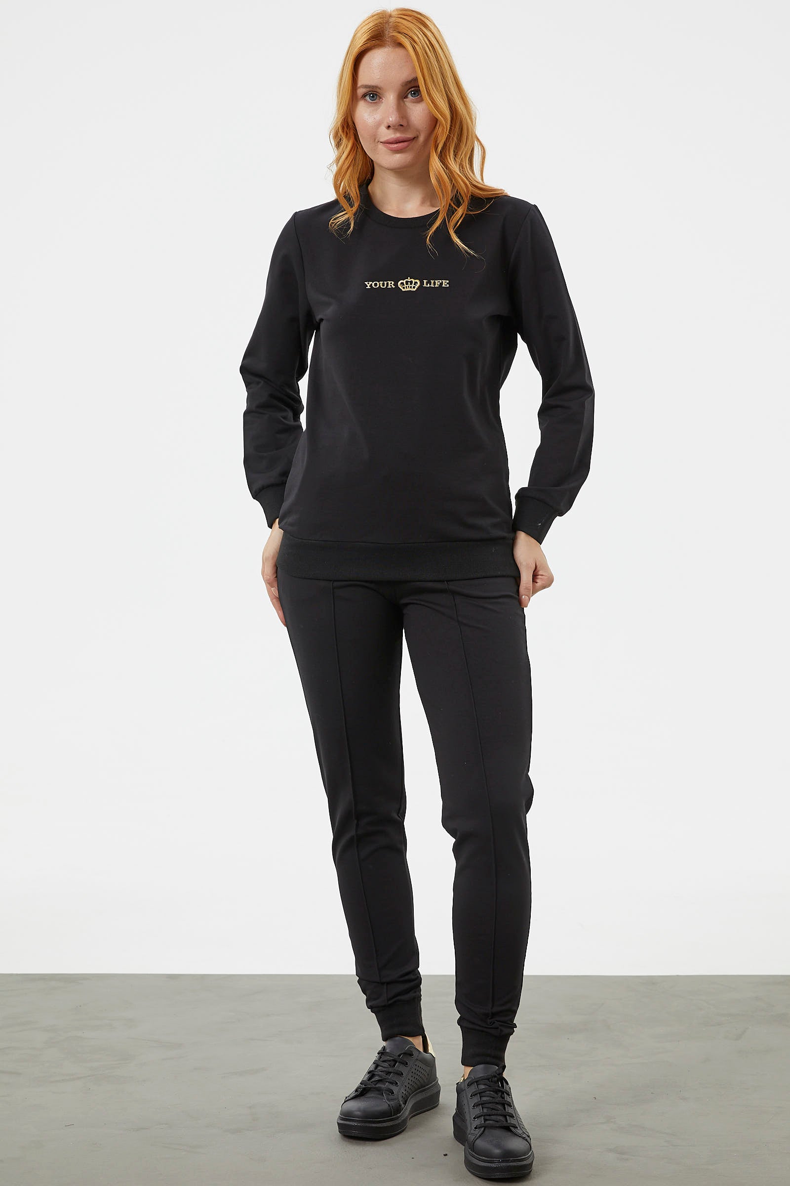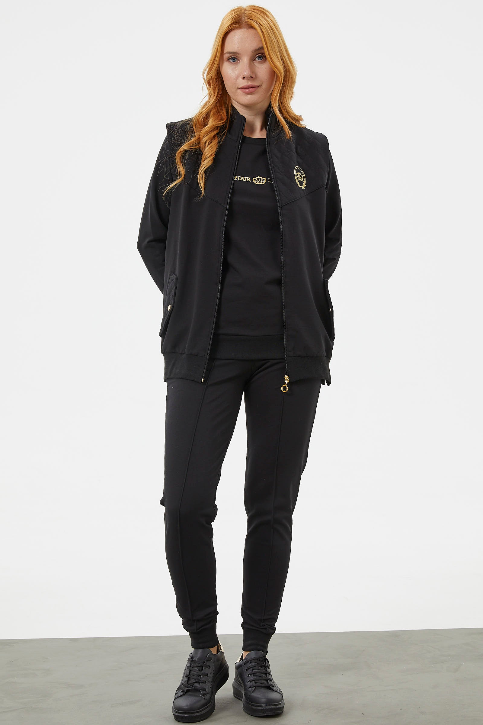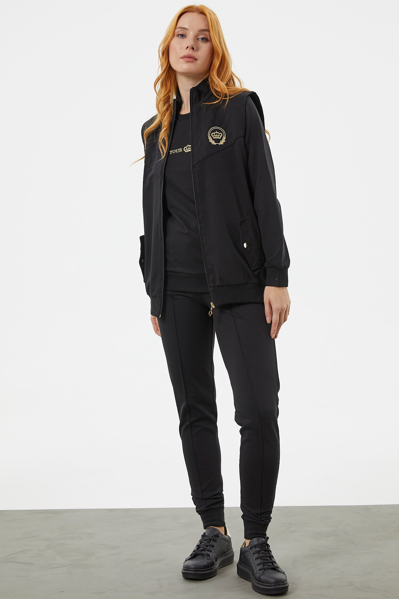 Kapitone Detaylı Yelekli Üçlü Eşofman Takım - Siyah