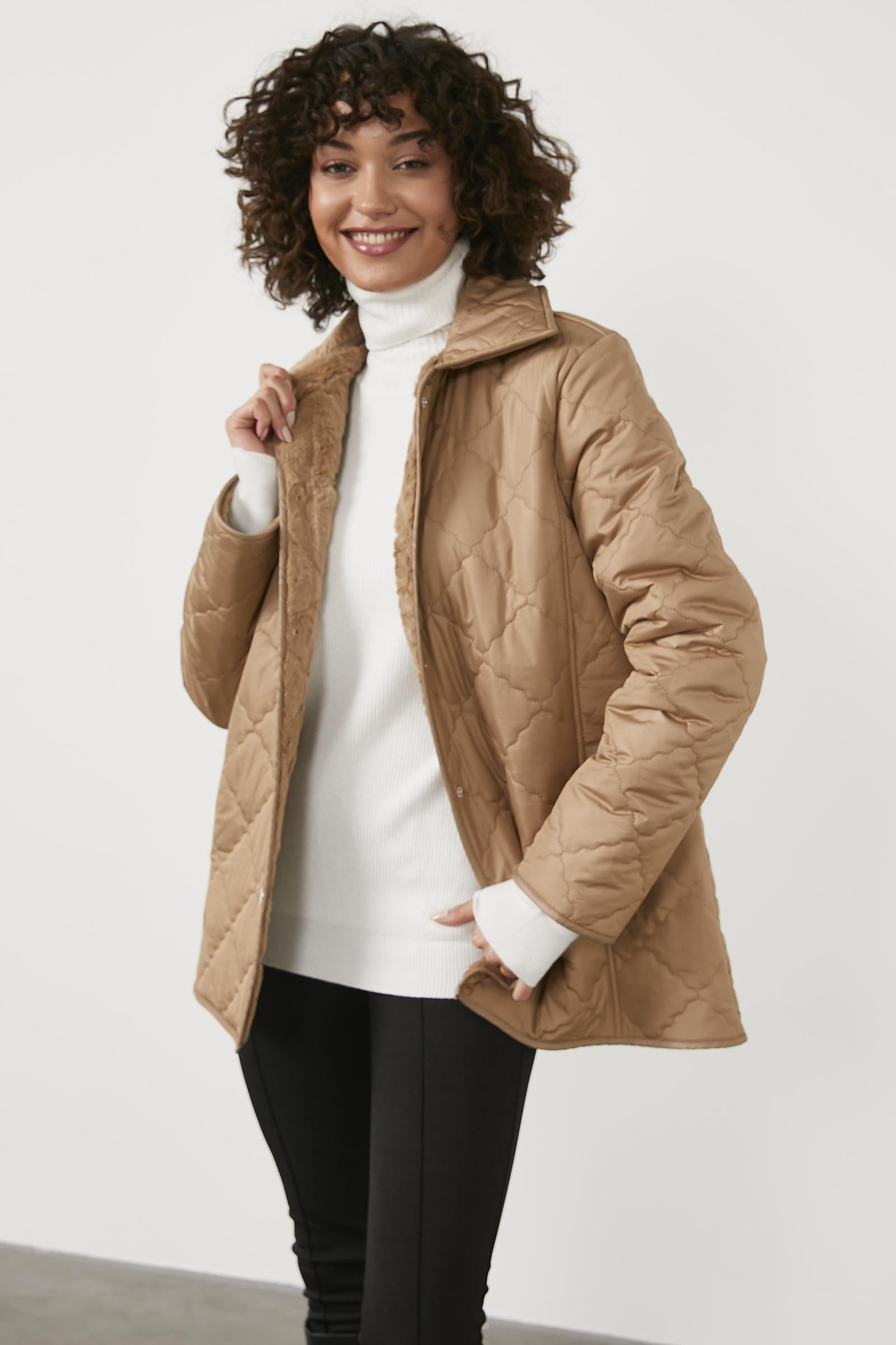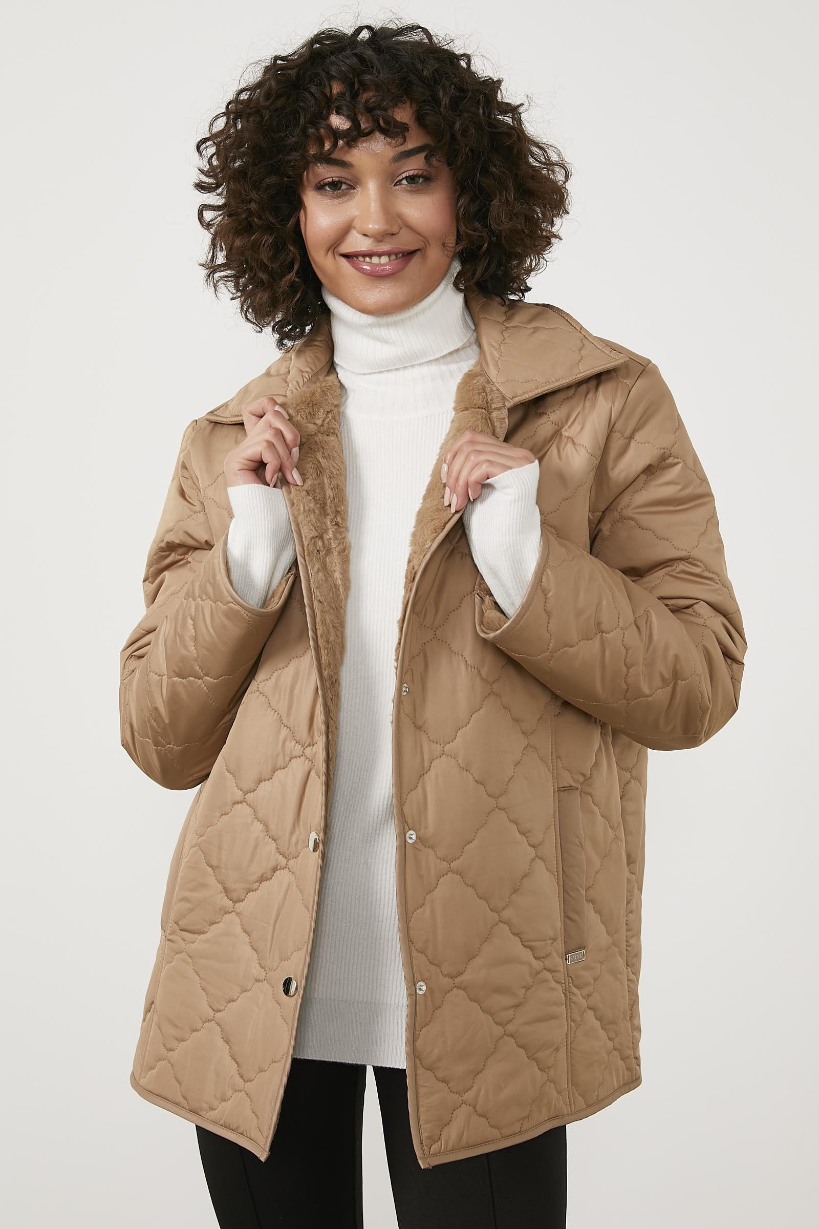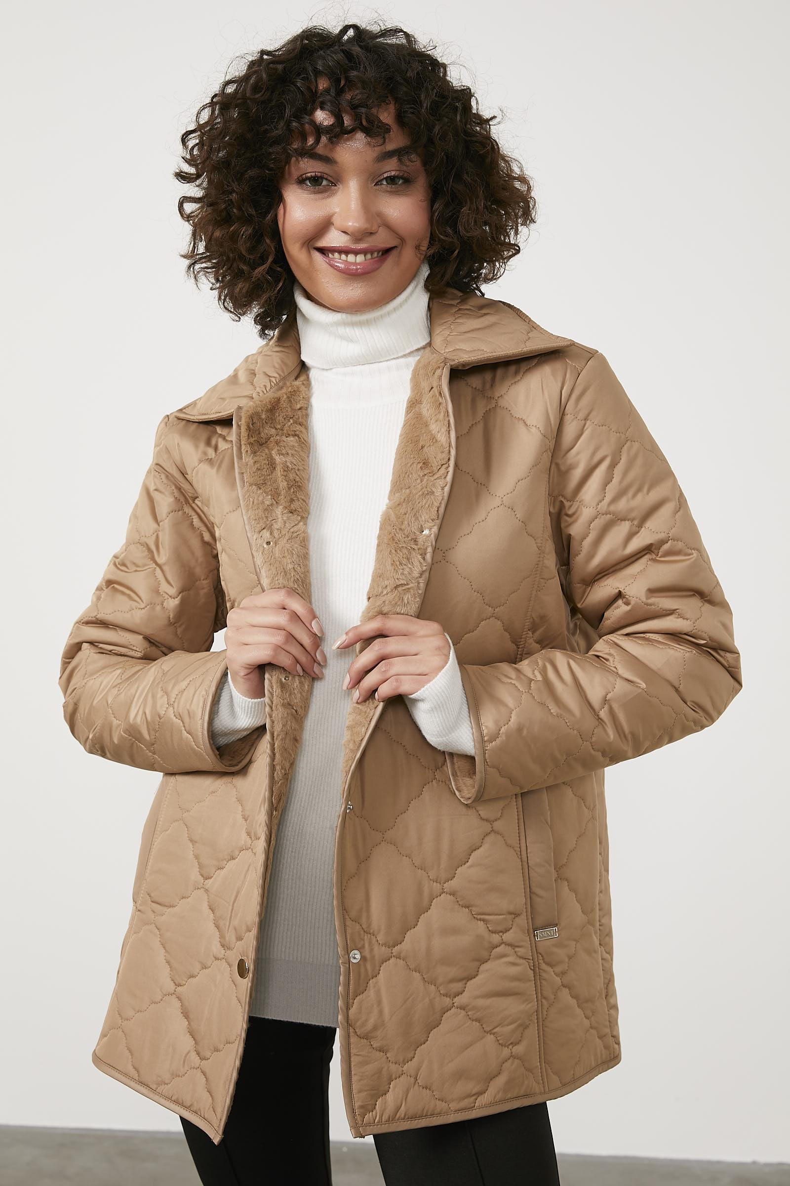 Kapitone Rahat Kalıp İçi Peluş Mont - Kamel