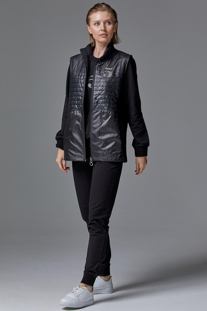 Kapitone Yelekli Üçlü Eşofman Takım - Siyah