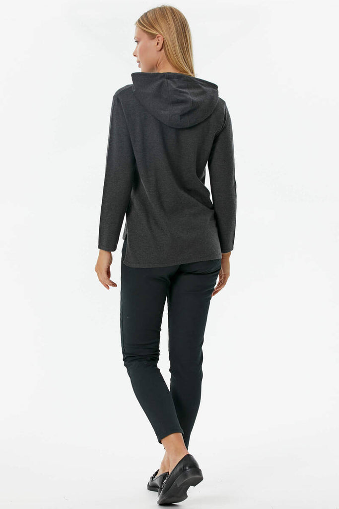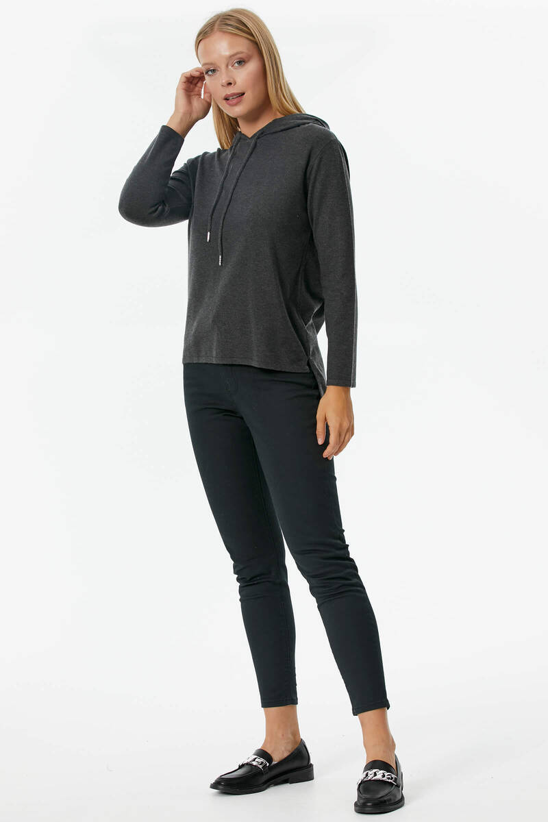 Kapüşonlu Arkası Uzun Triko Kazak - Antrasit