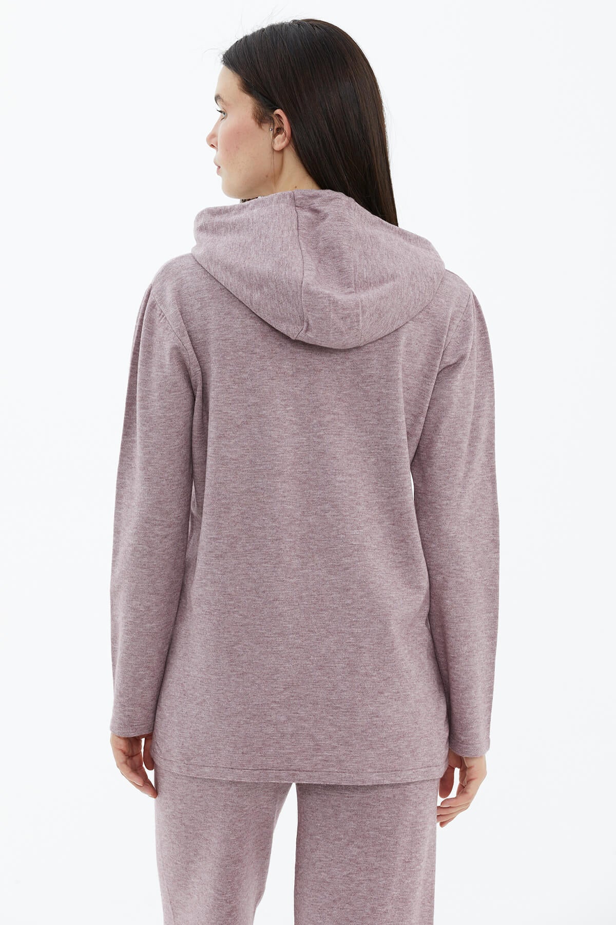 Kapüşonlu Arkası Uzun Triko Kazak - Gül