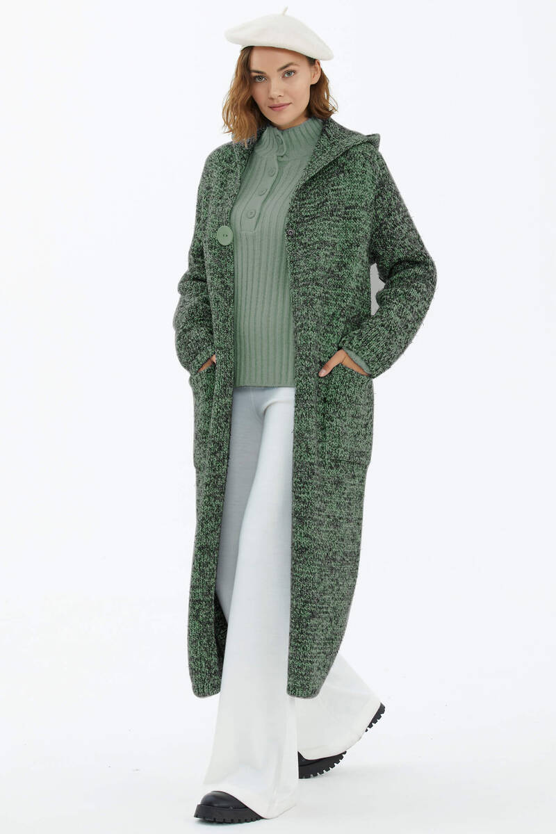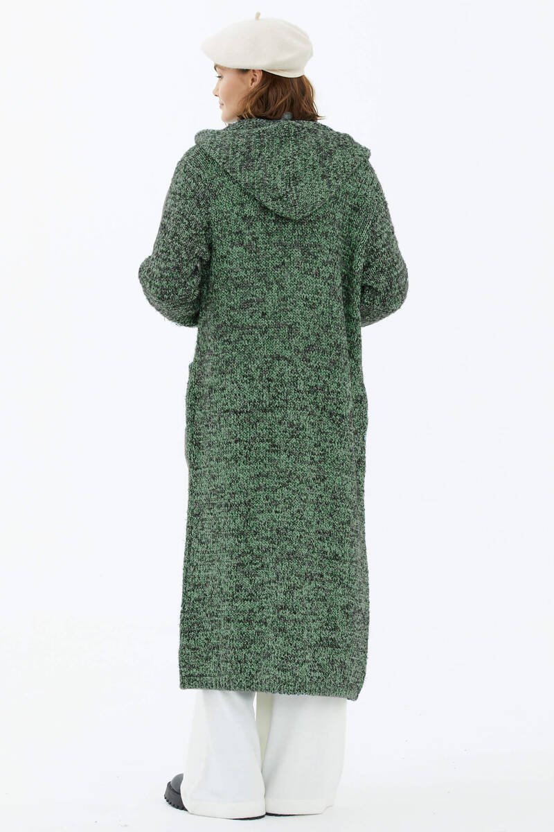 Kapüşonlu Cepli Triko Hırka - Yeşil