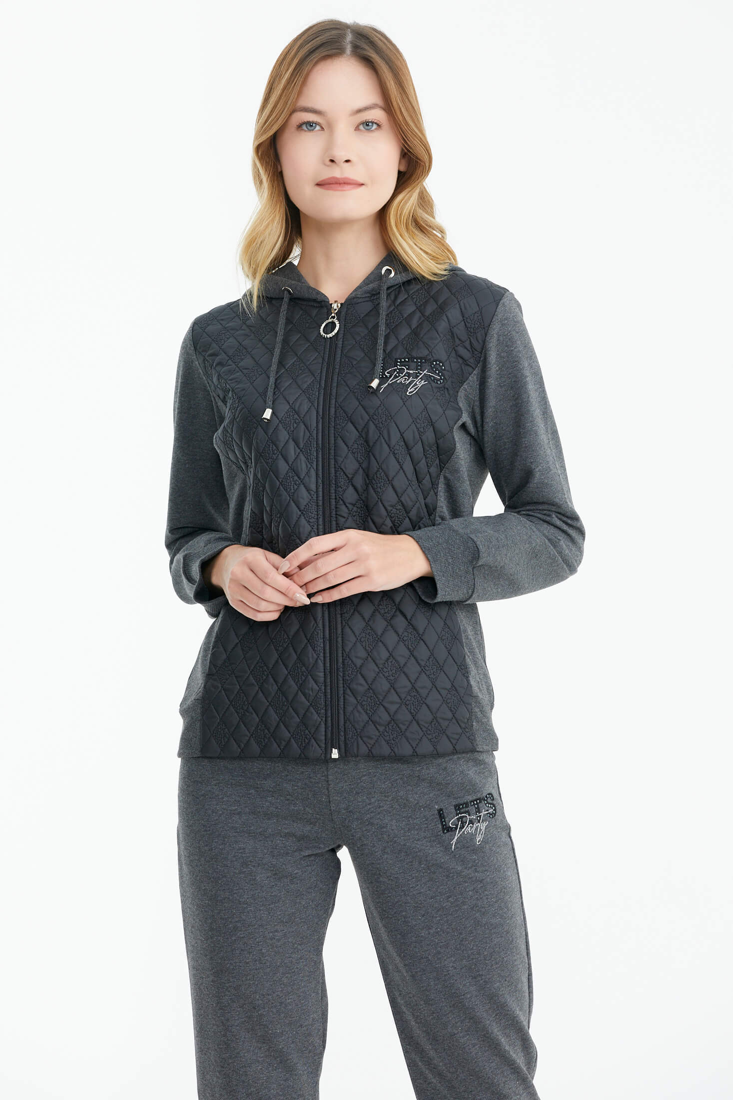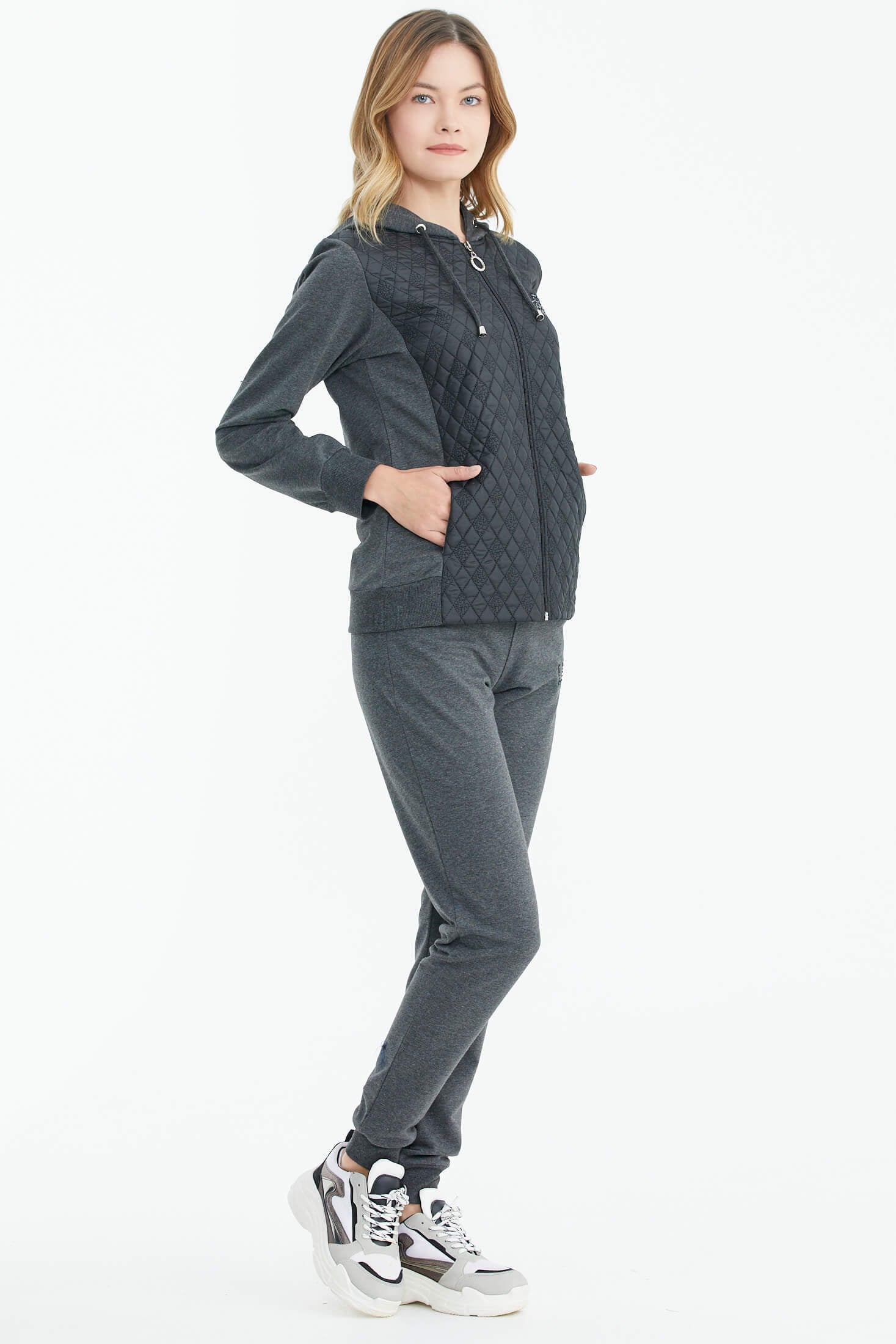 Kapüşonlu Kapitone Detaylı Eşofman Takım - Antrasit