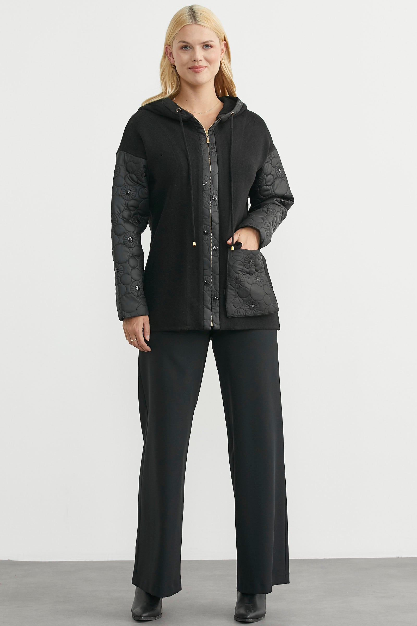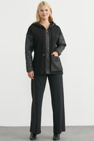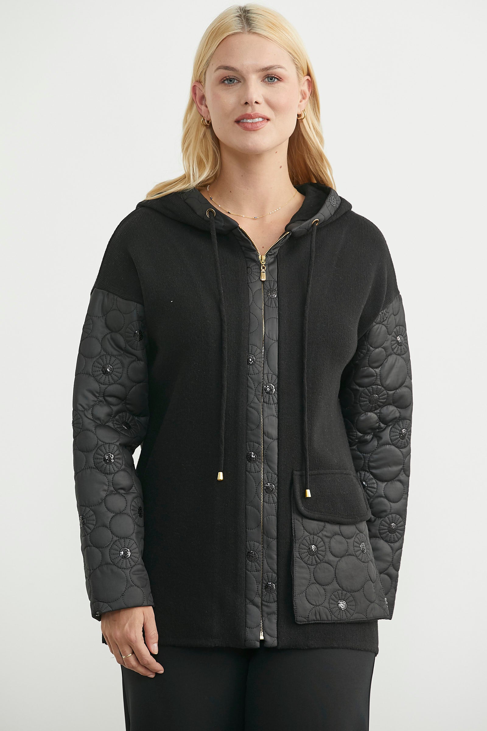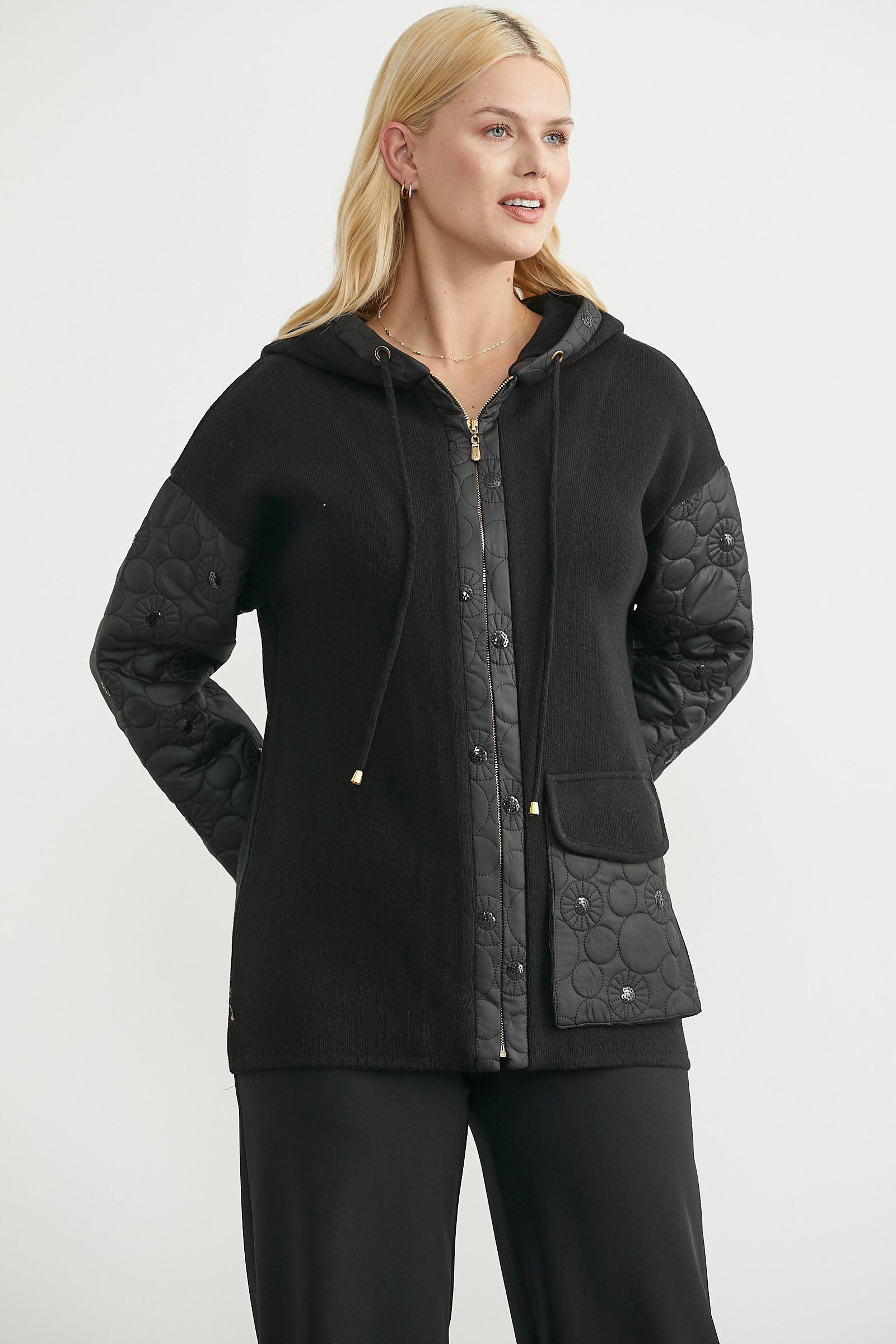 Kapüşonlu Kapitone Detaylı Triko Ceket - Siyah