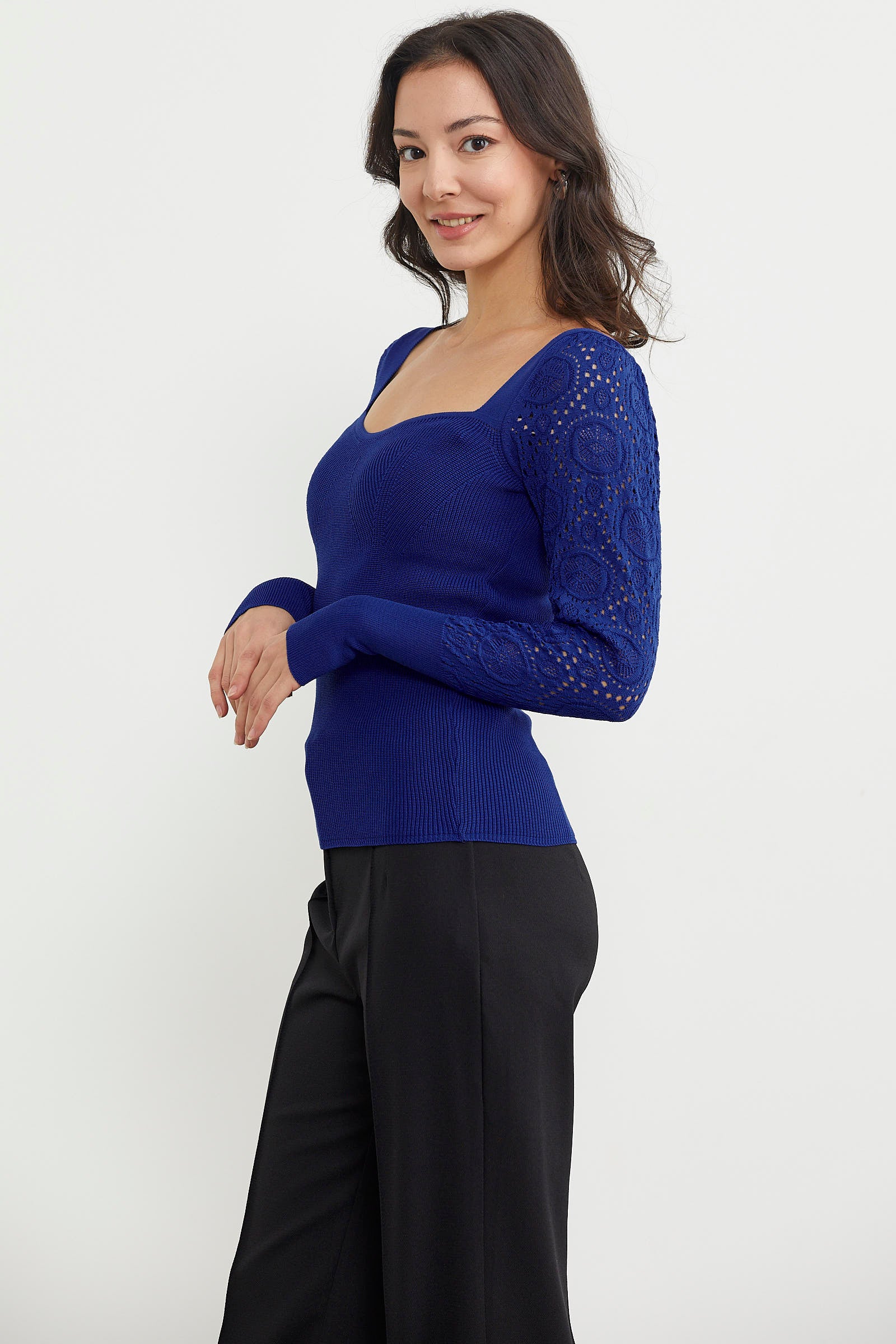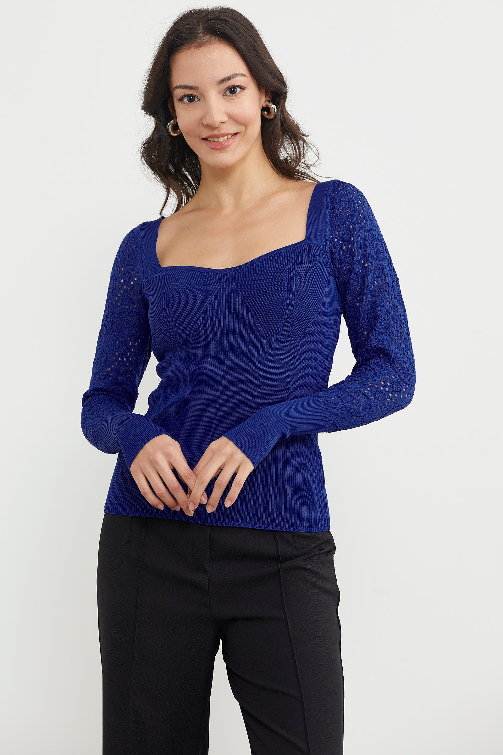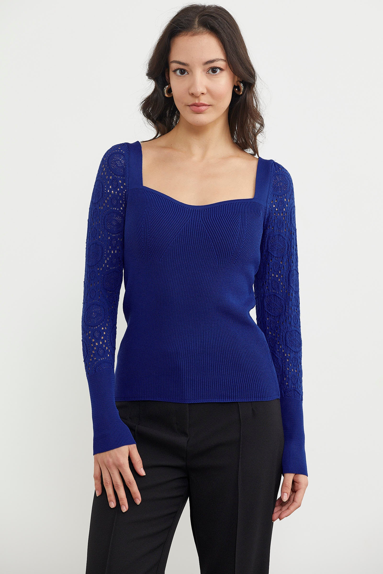 Açık kare yakaya sahip, uzun kollu zarif kol desenli vücuda mükemmel uyum sağlayan kalıbı ile dolabınızın sık tercih edilenleri arasında olacaktır. Kolay kombin yaparken modern ve şık bir görünüm yaratabileceksiniz.