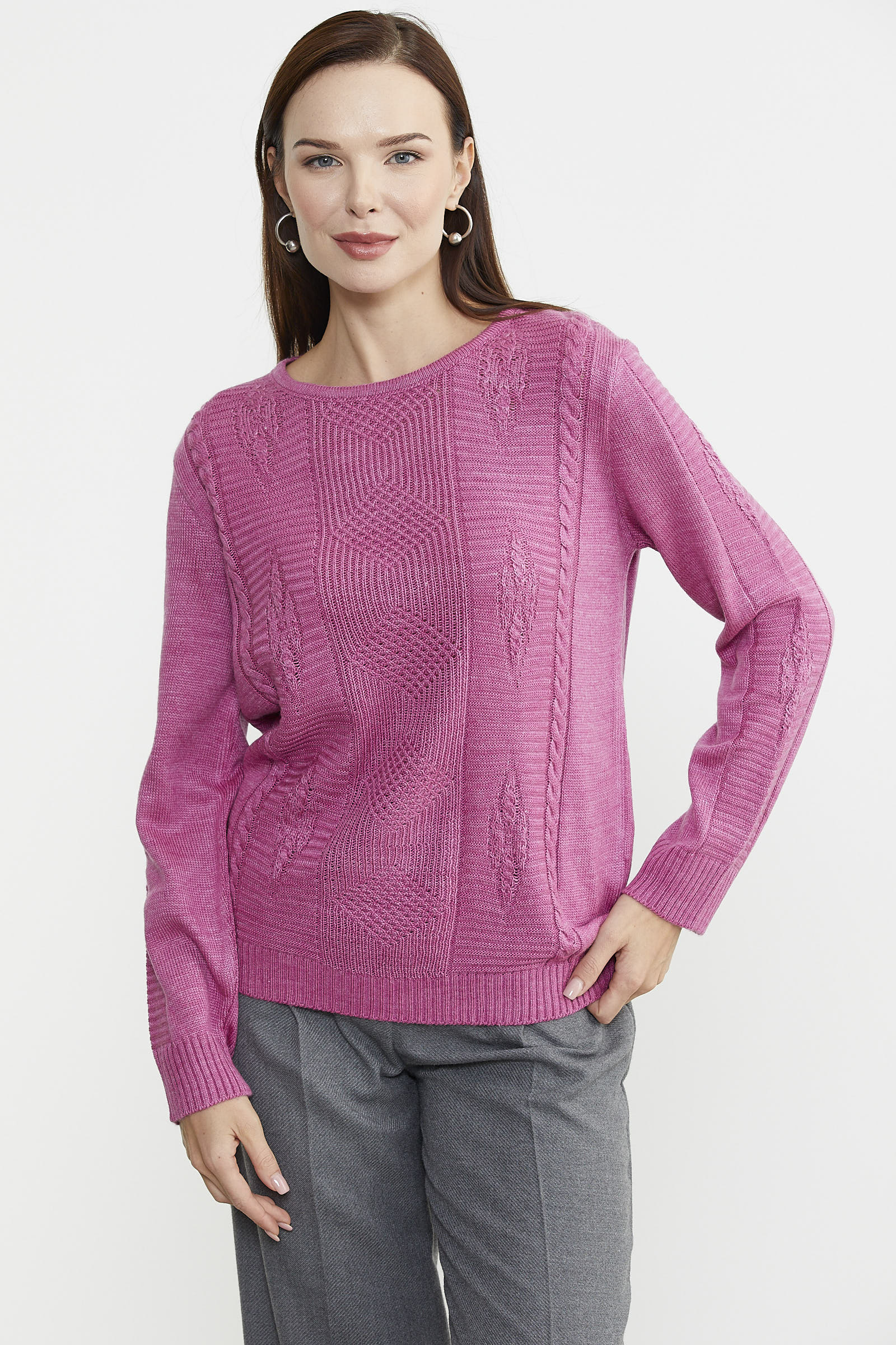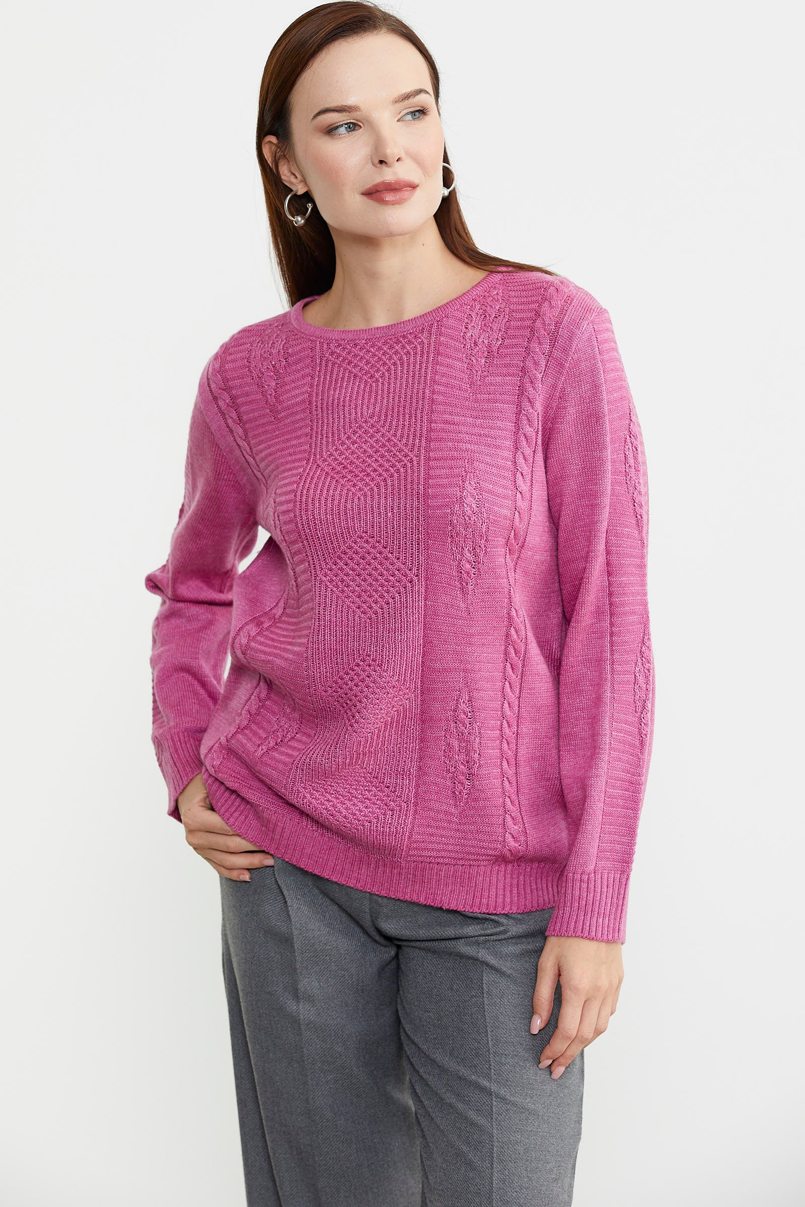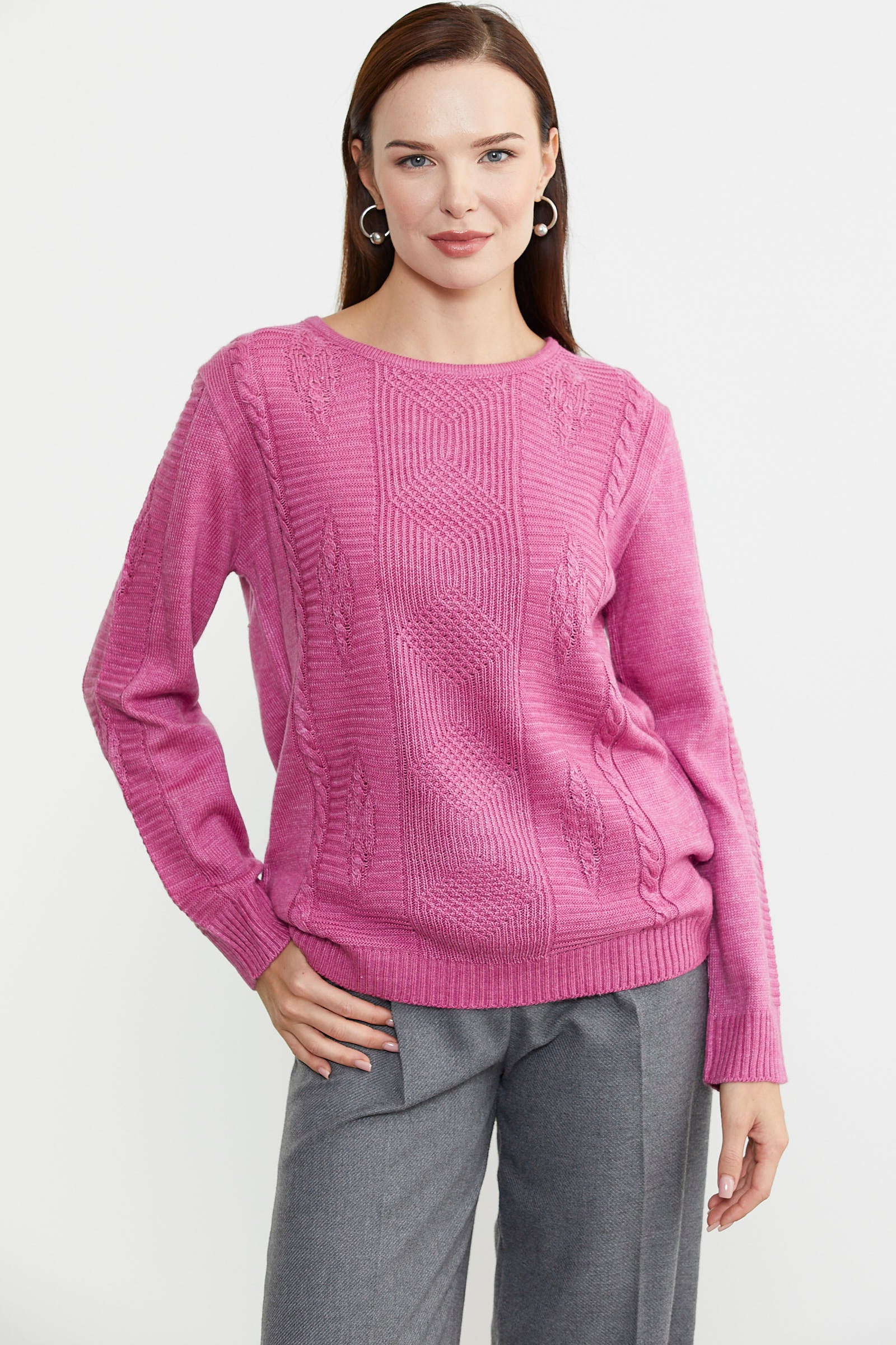 Karışık Motif Detaylı Yünlü Triko Kazak - Gül
