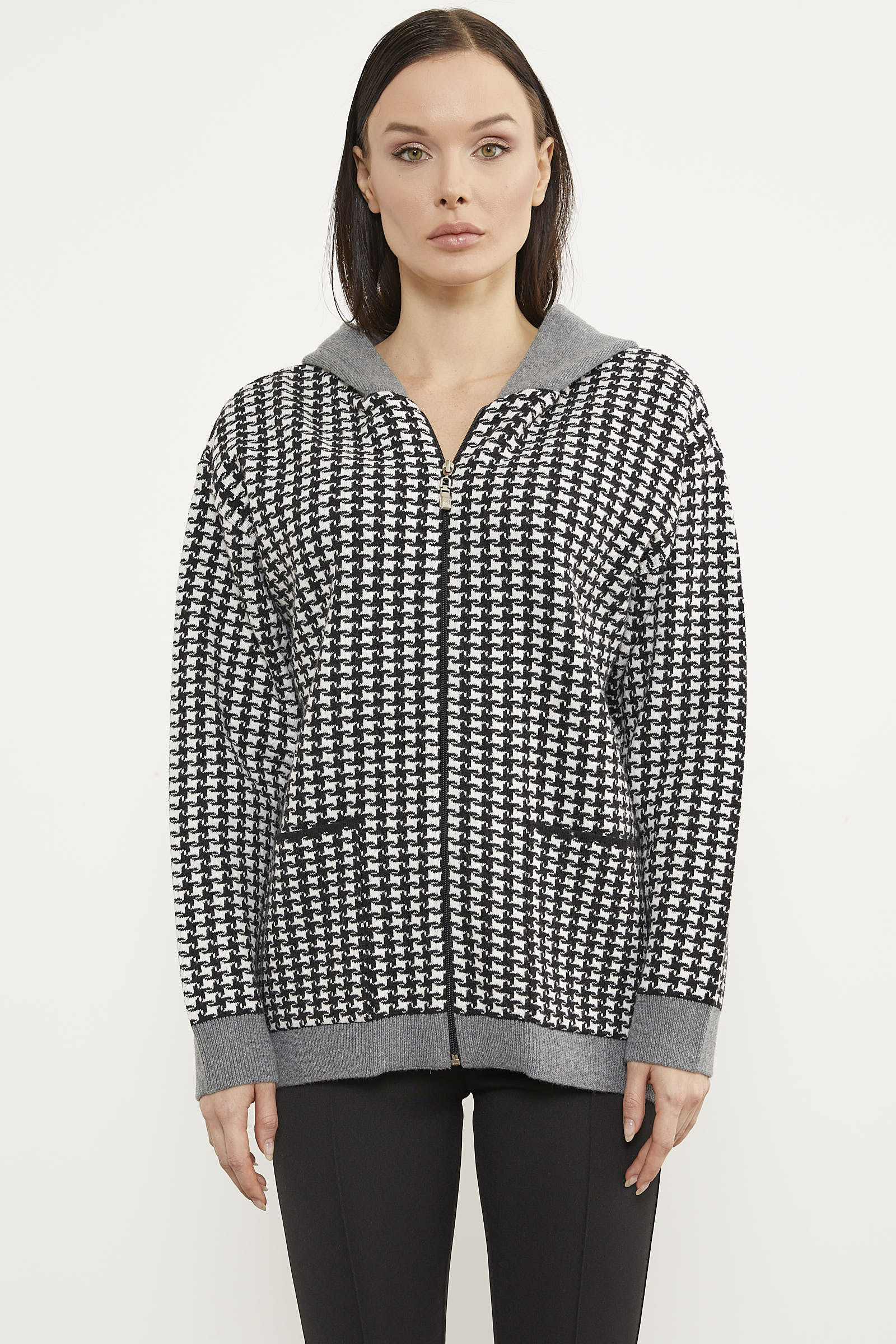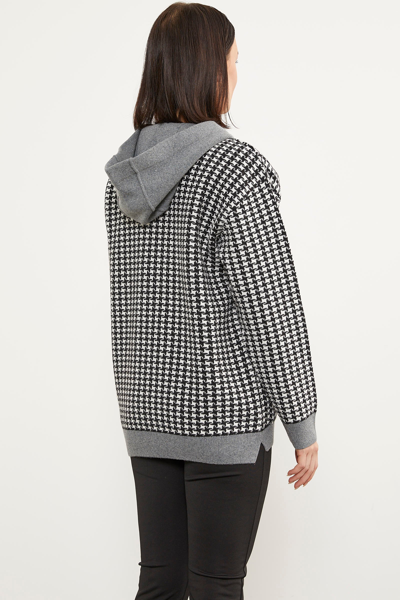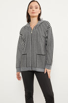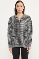 Kazayağı Desenli Cepli Triko Hırka - Siyah