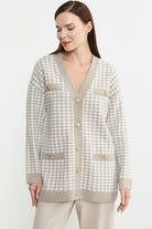 Kazayağı Motif Oversize Triko Ceket - Vizon