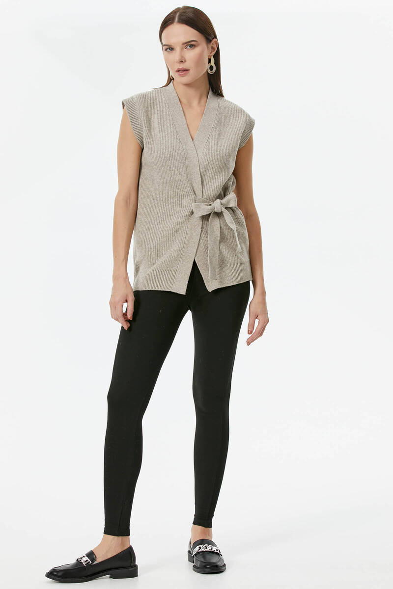 Sezonun en favori parçalarından olan triko yelek, bağlama detaylı kemeri ve yumuşak dokusu ile iş ve gündelik stillerinize kolaylıkla uyum sağlar.