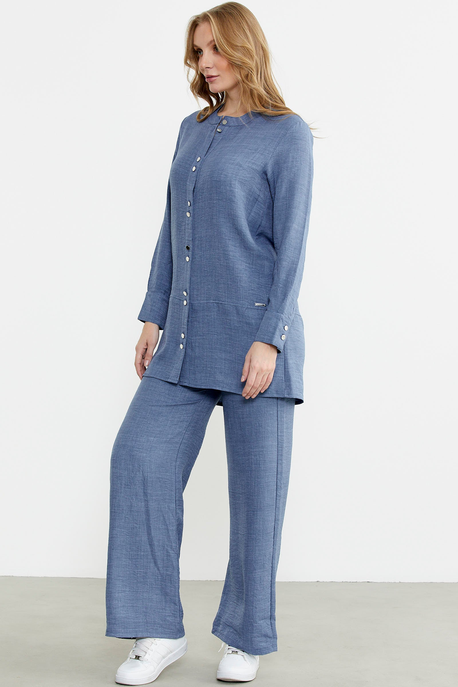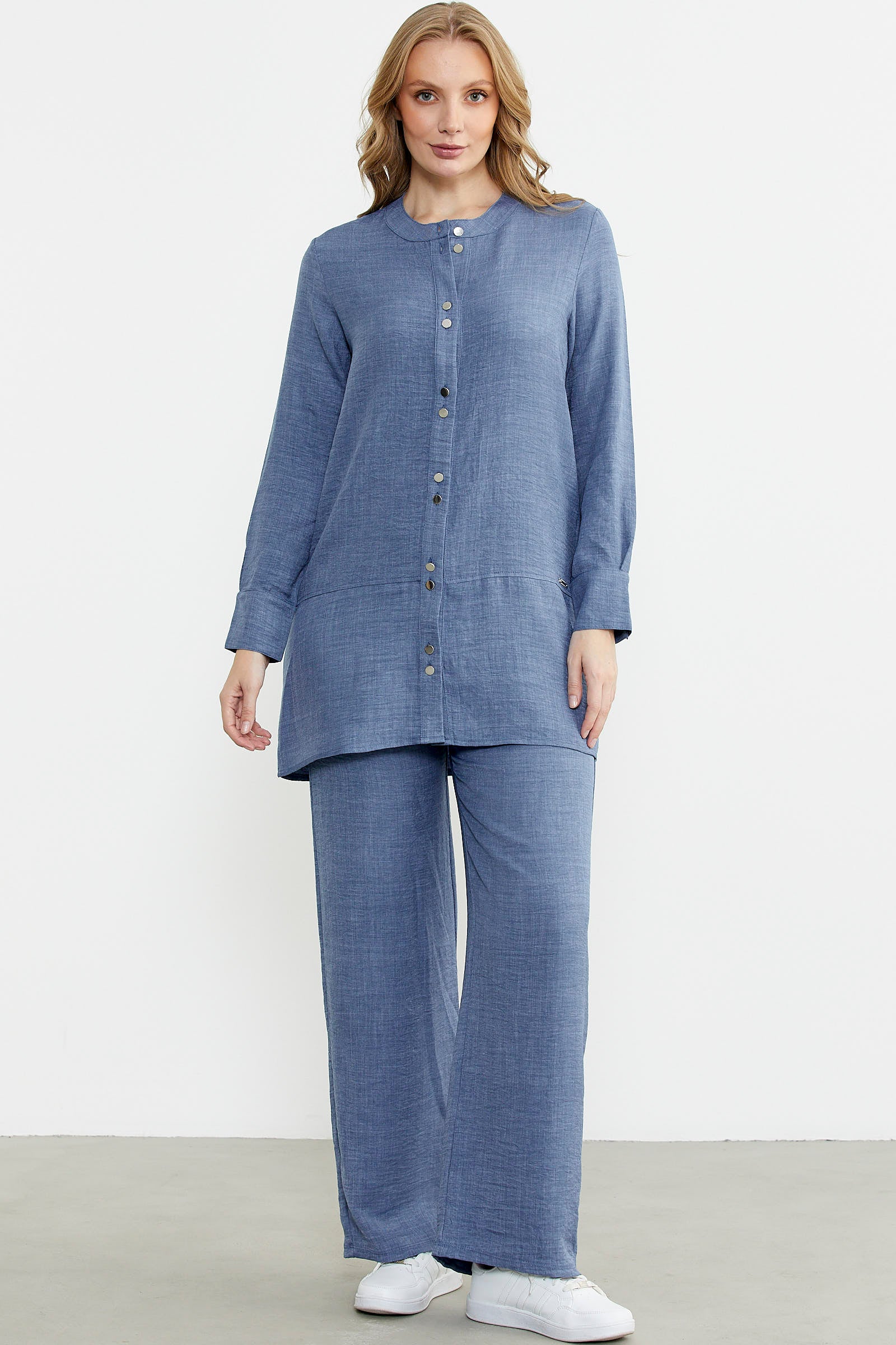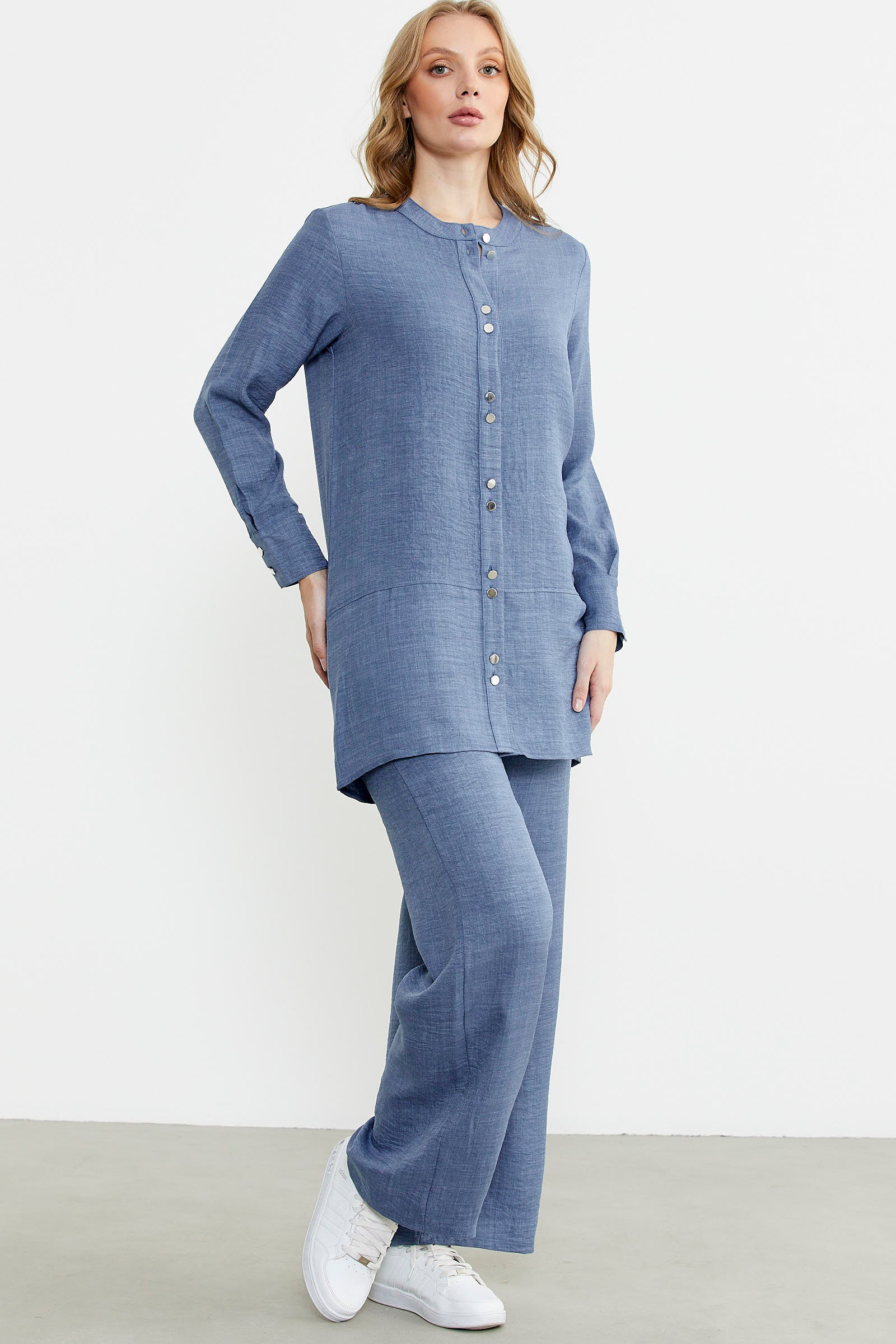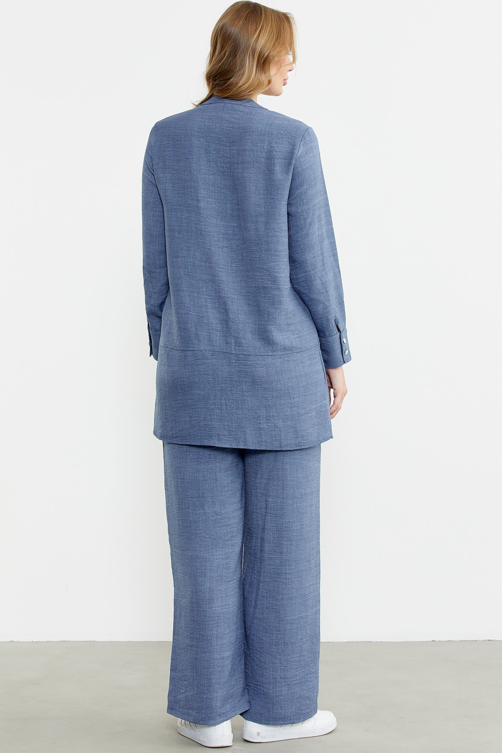 Keten Görünümlü Gömlek Pantolon Takım - Indigo