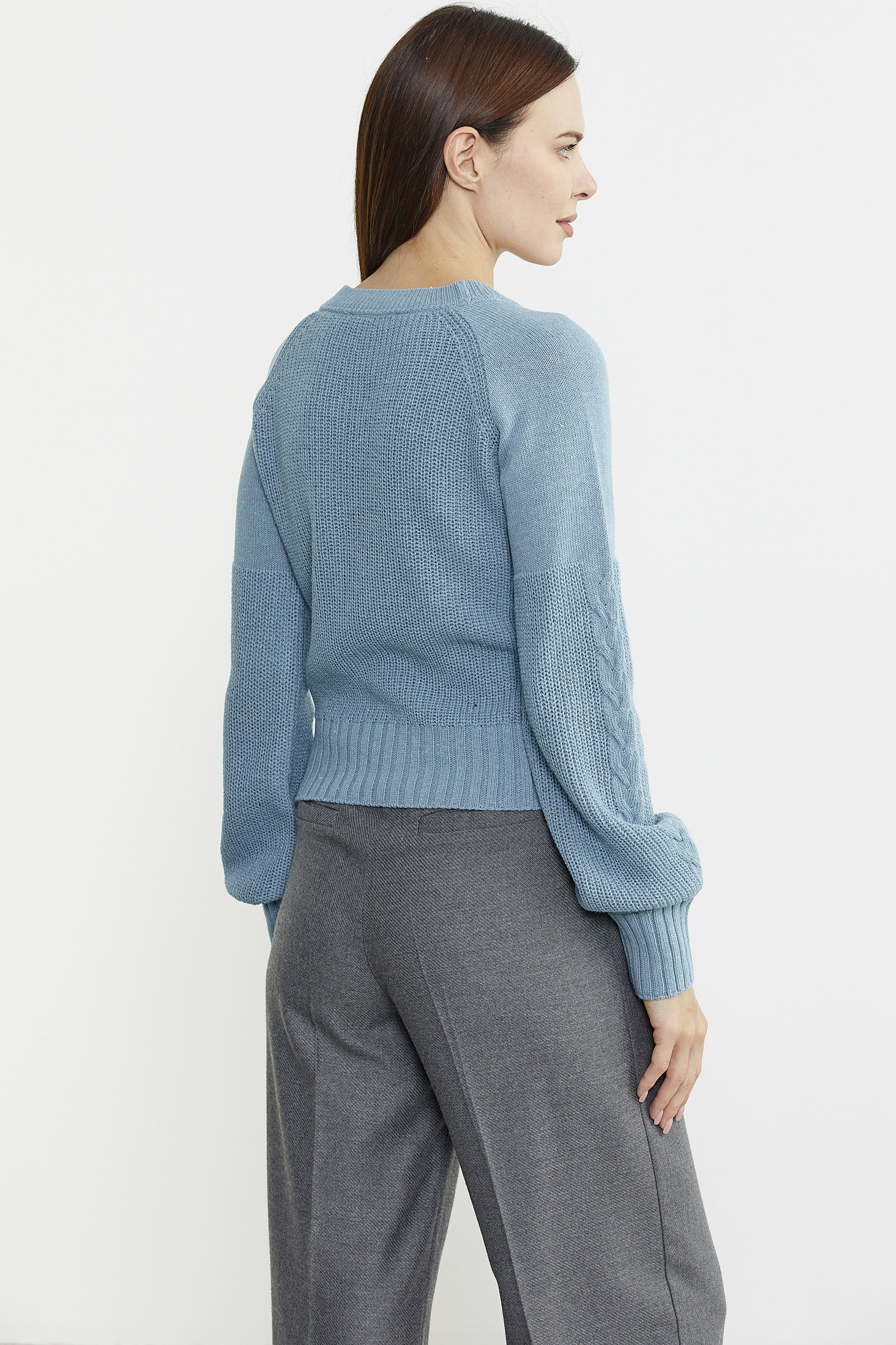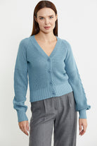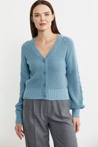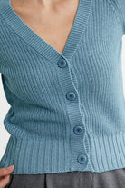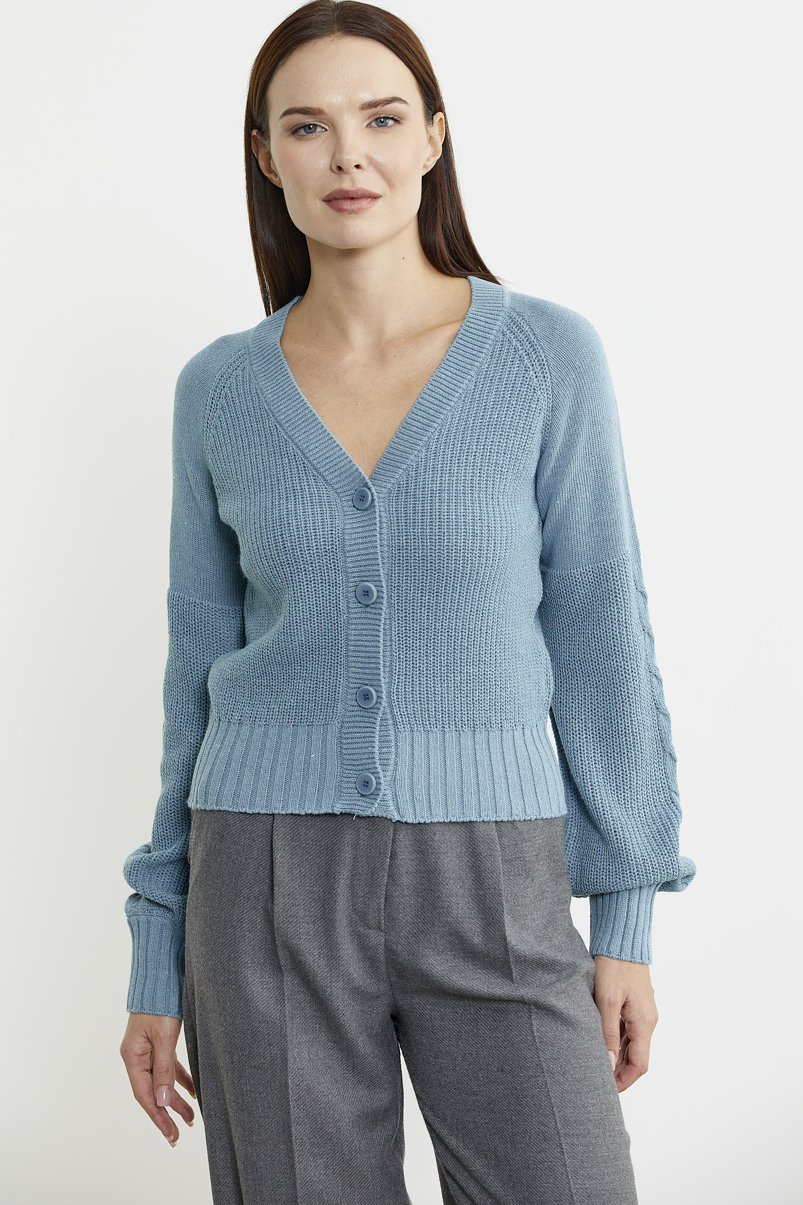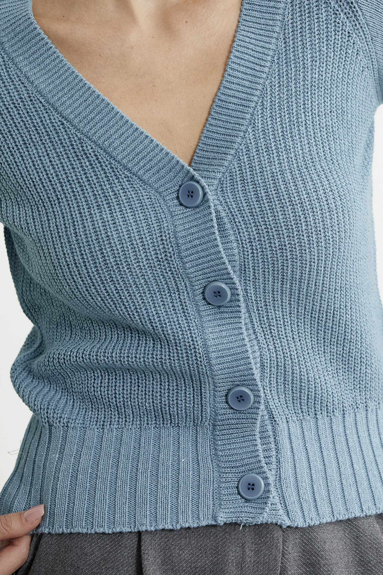 Kısa Düğmeli Yünlü Triko Hırka - Açık Mavi