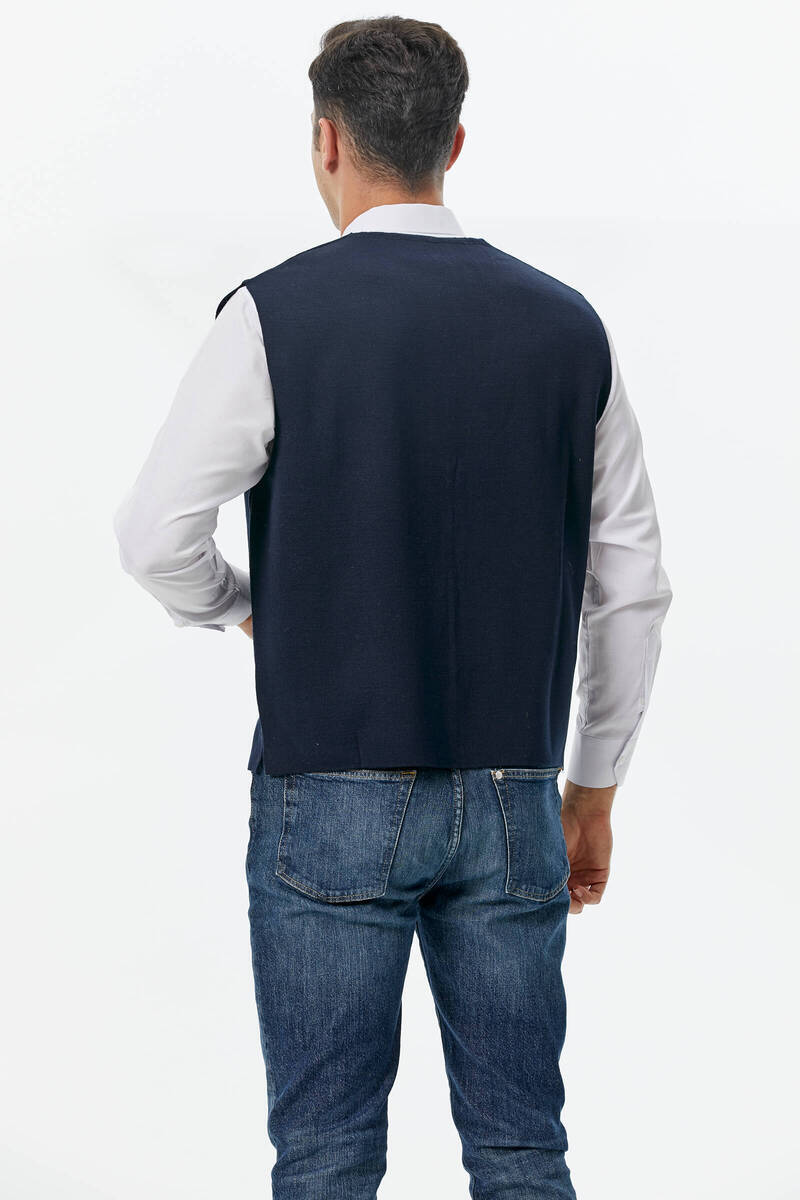 Klasik Triko Düğmeli Triko Yelek - Lacivert