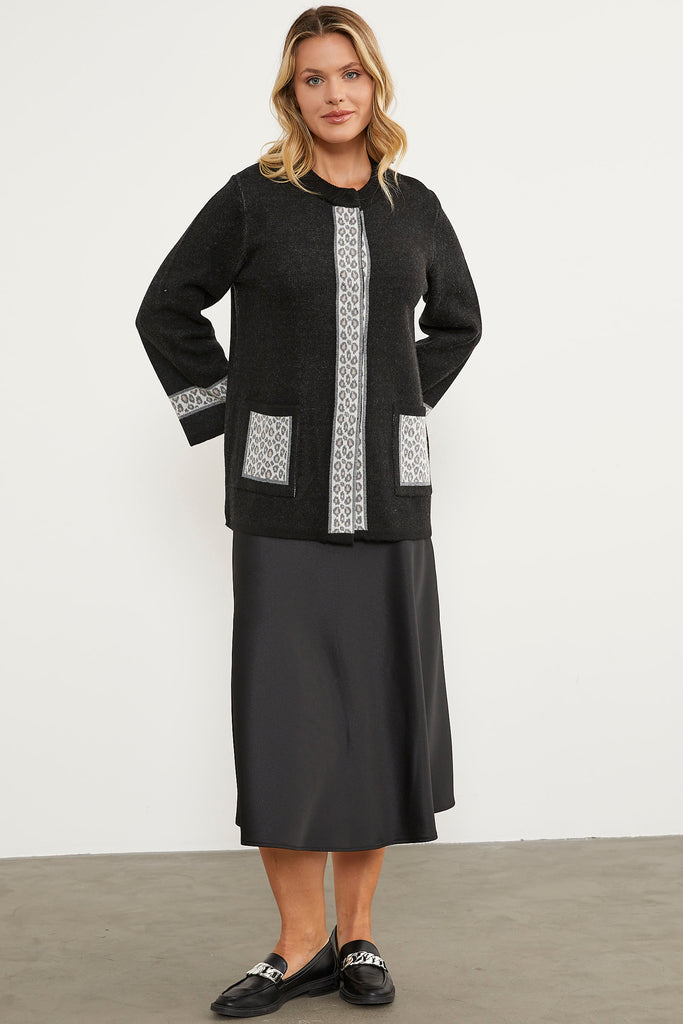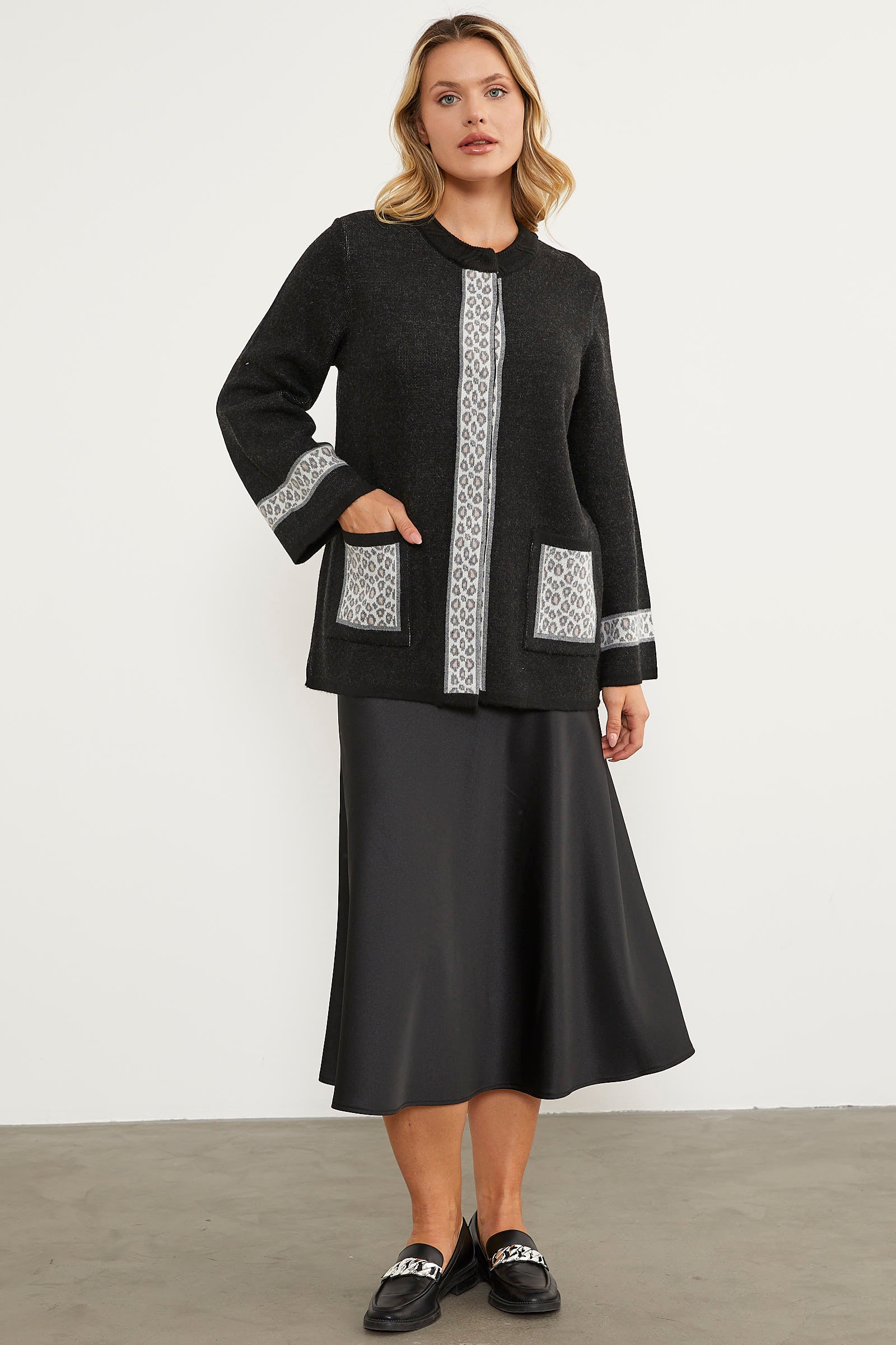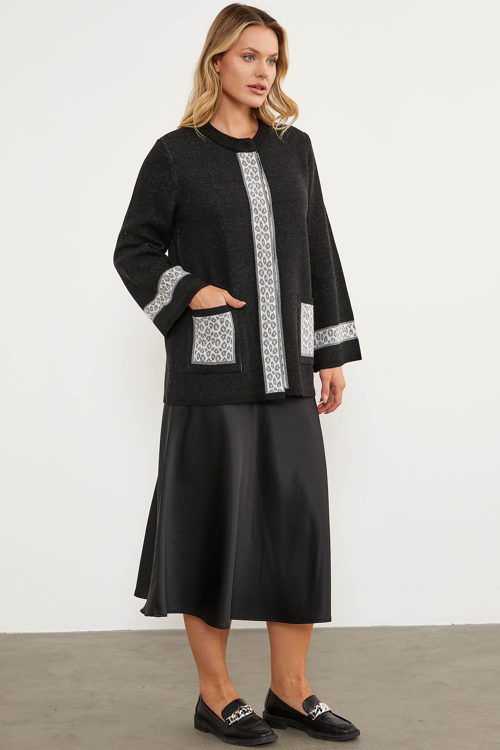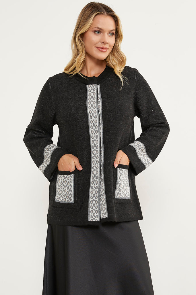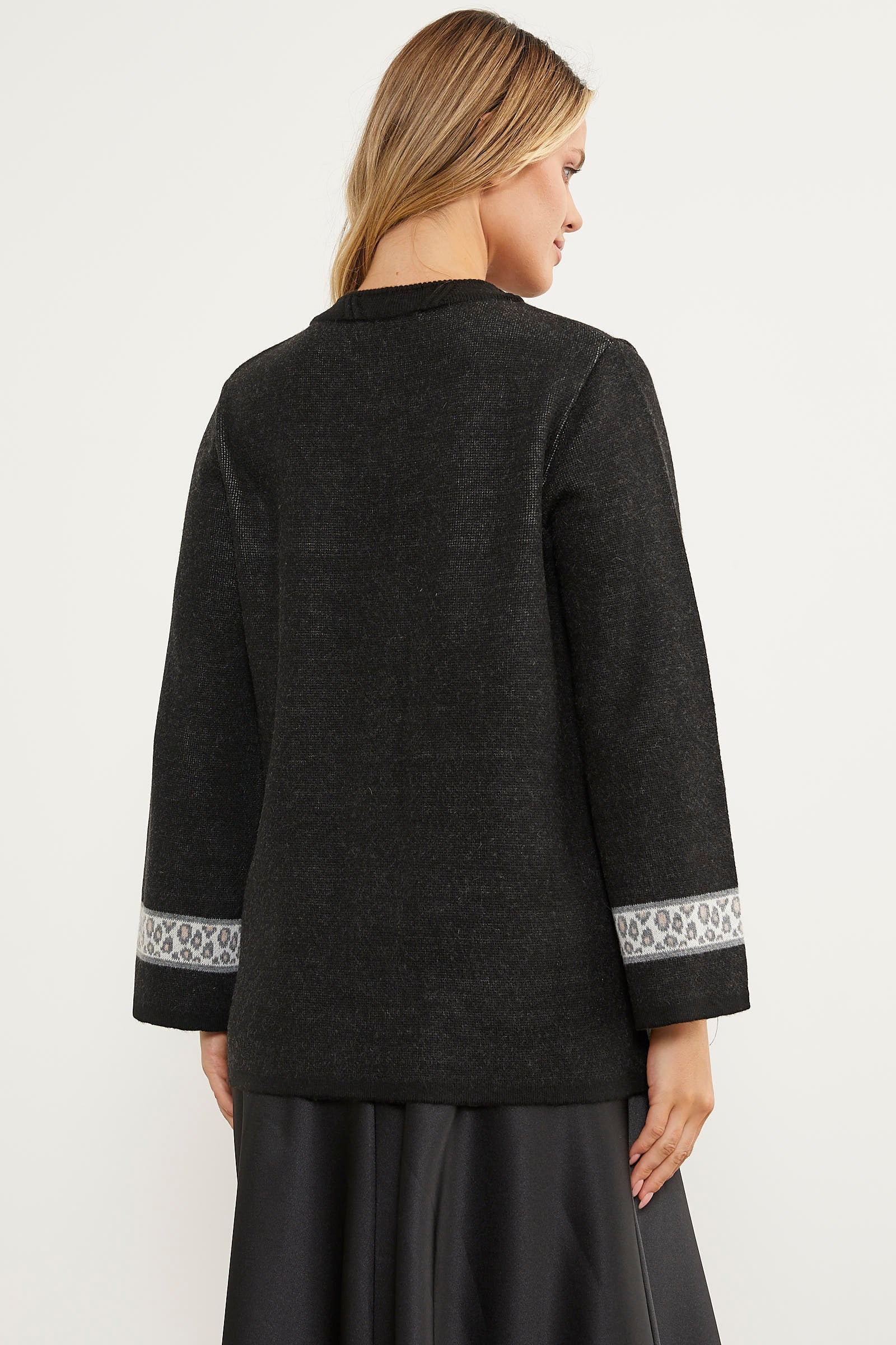 Leopar Detaylı Geniş Kalıp Triko Hırka - Siyah