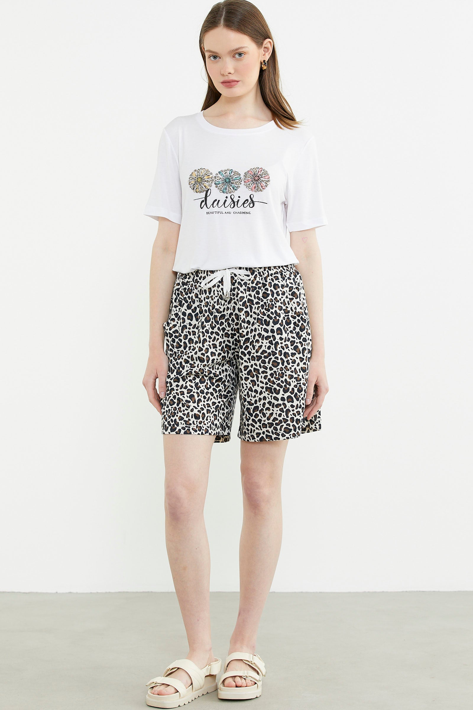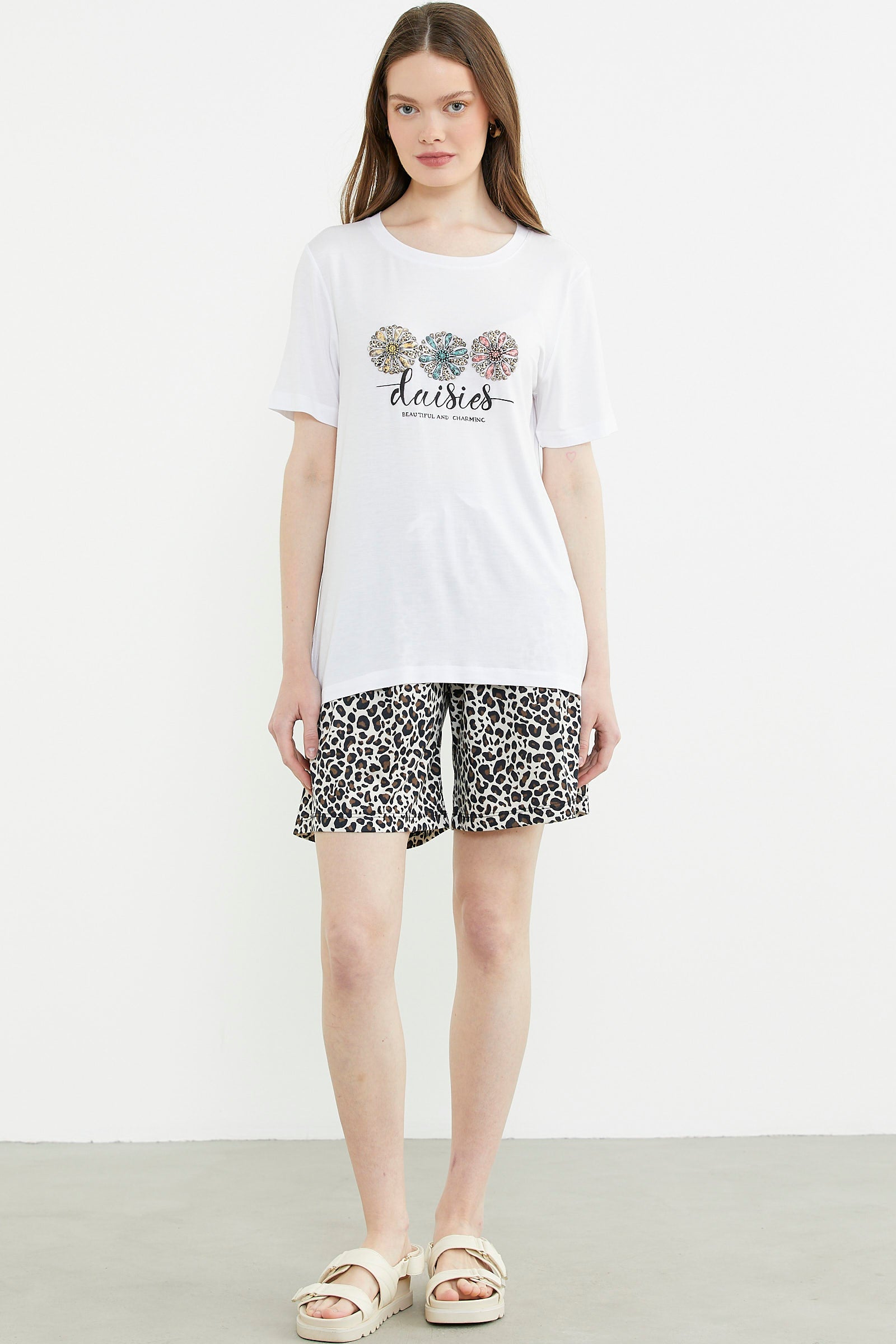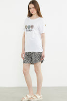 Leopar Kombinli Şortlu Takım - Ekru
