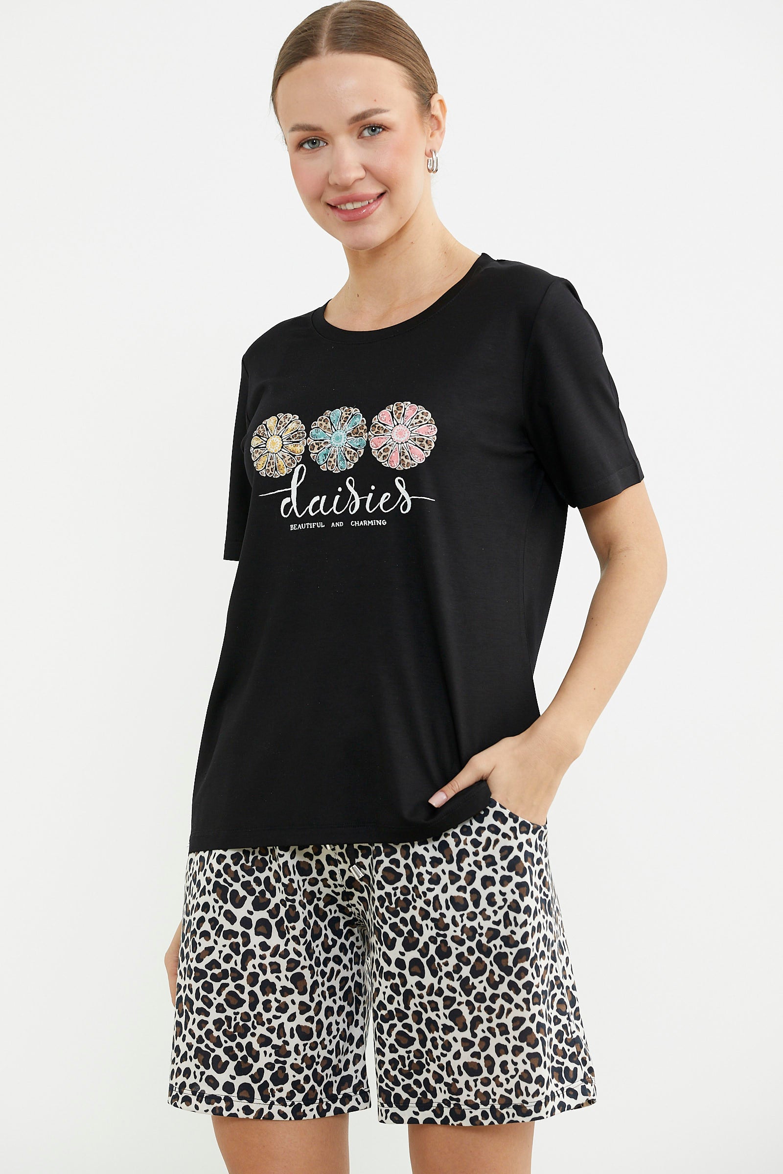 Yumuşacık dokulu şortlu ikili takım, regular fit kalıp ve normal beldir. Kaliteli kumaşı ve rahat tasarımıyla her tarza uyum sağlar.