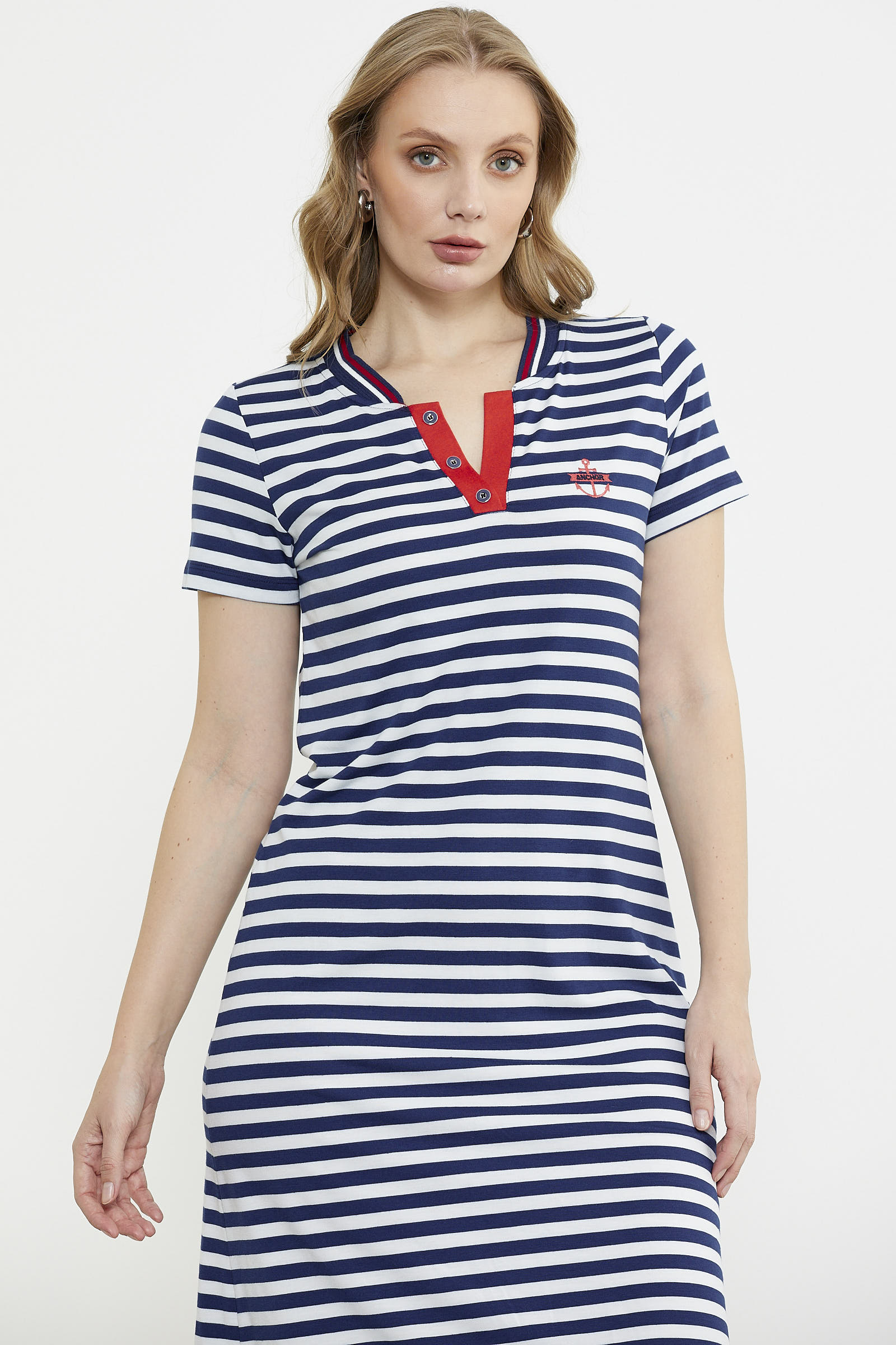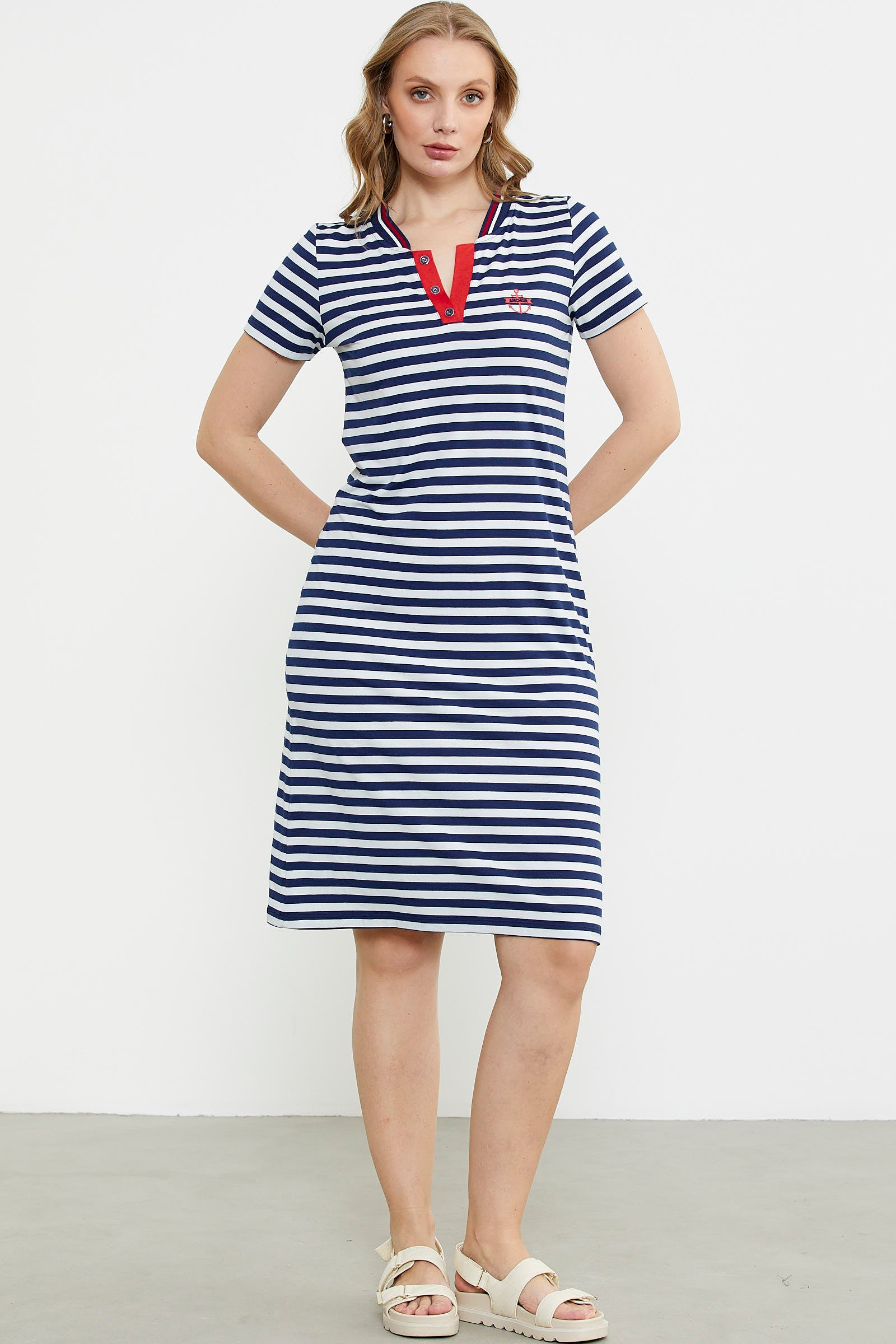Marine Yaka Detaylı Penye Elbise - Lacivert