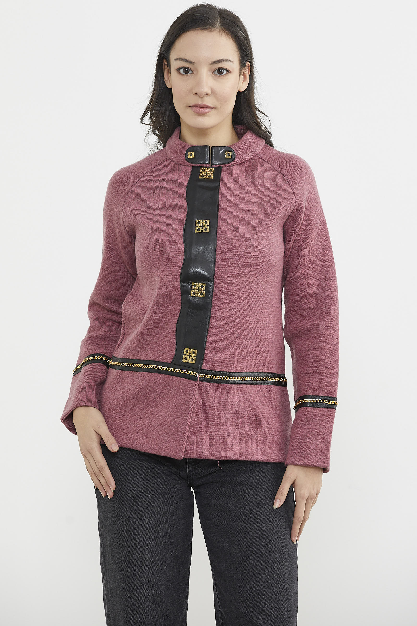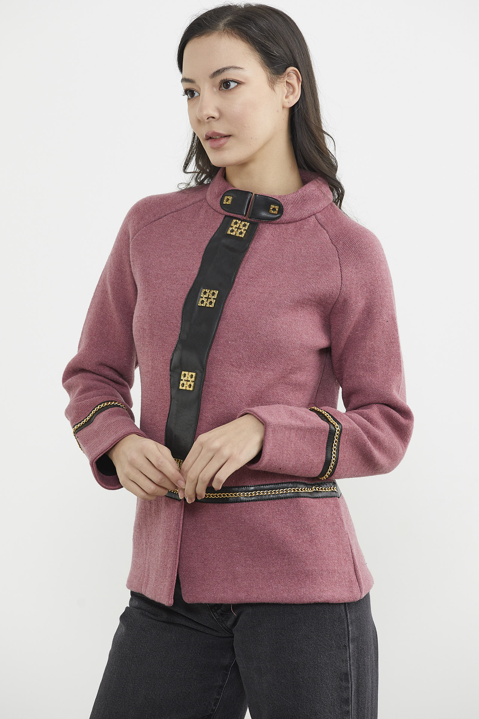Metal Aksesuarlı Triko Ceket - Gül - Siyah