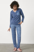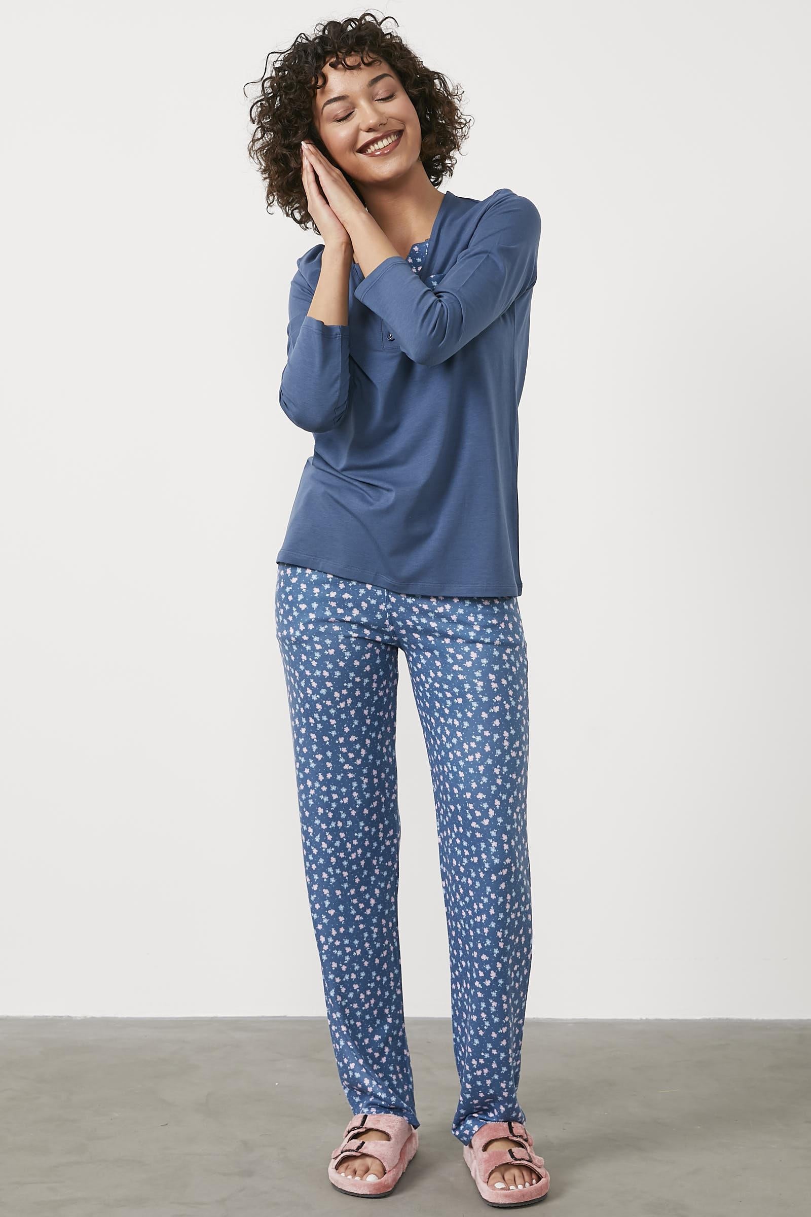 Modal Desen Kombinli Pijama Takım - Mavi