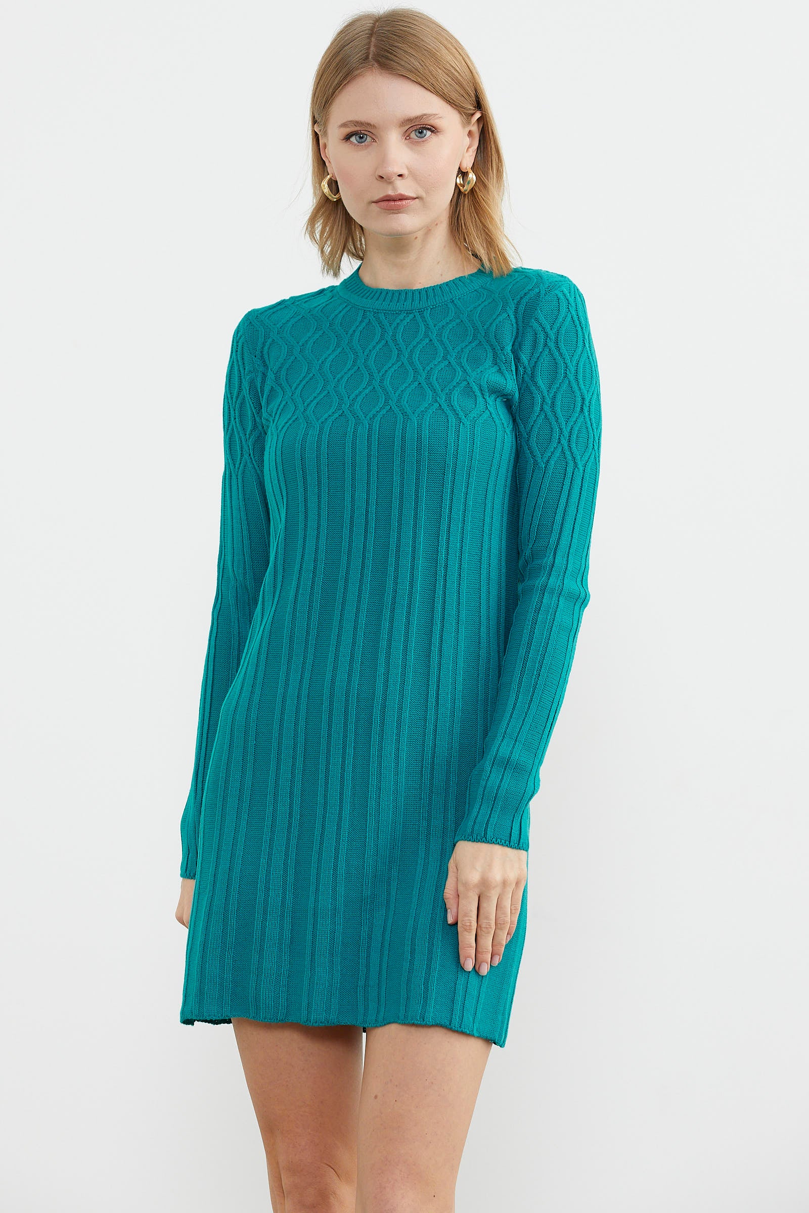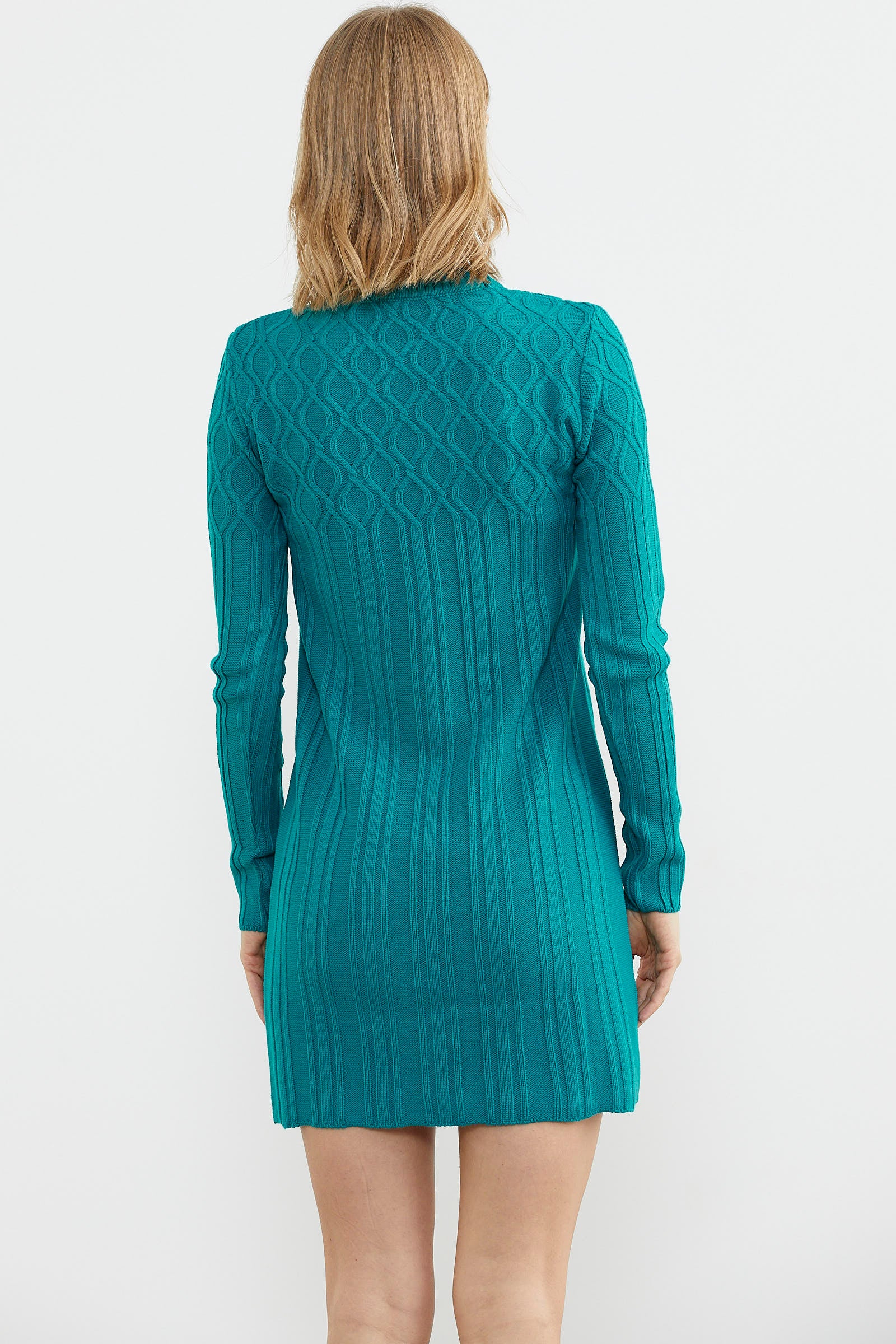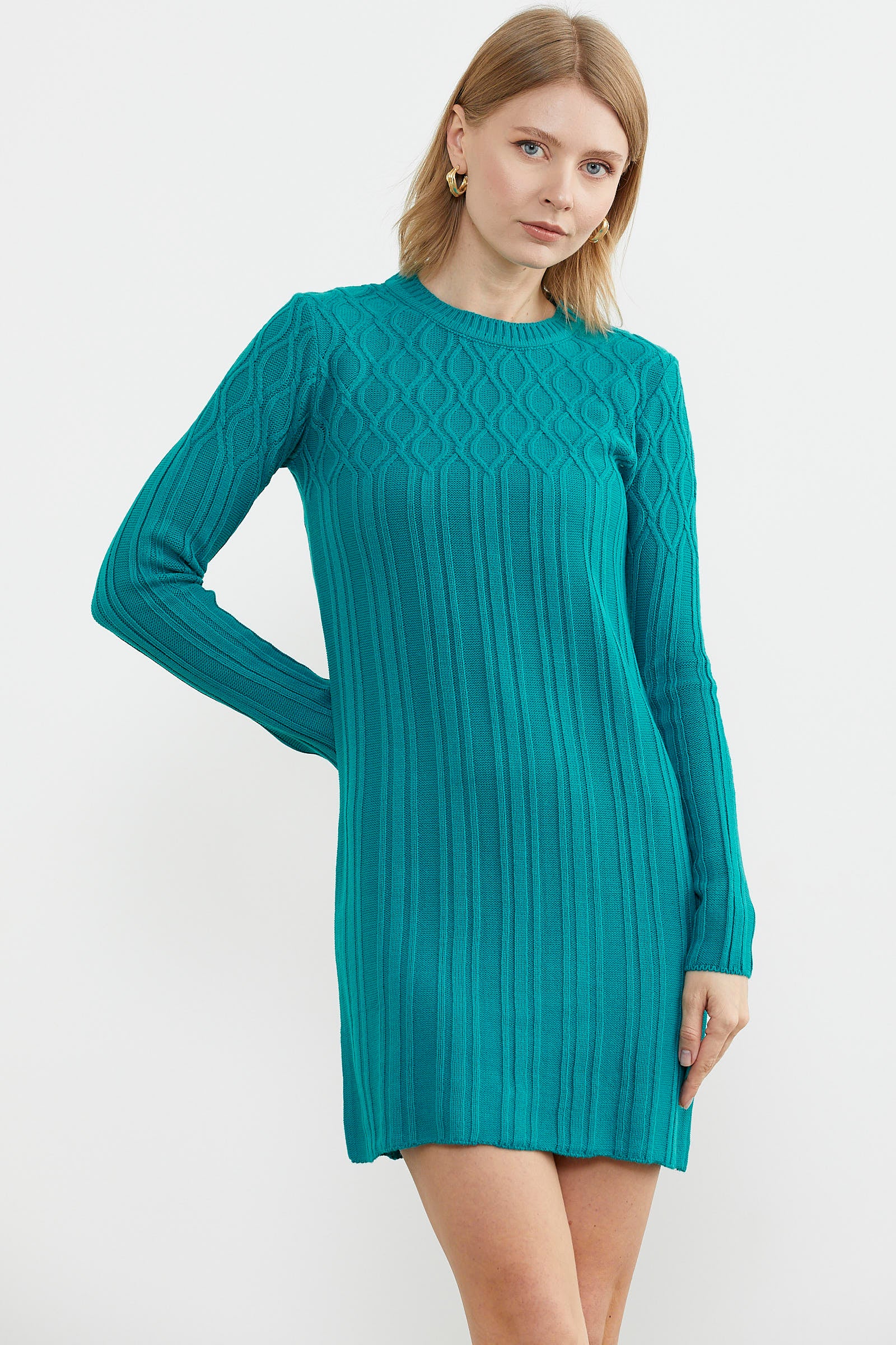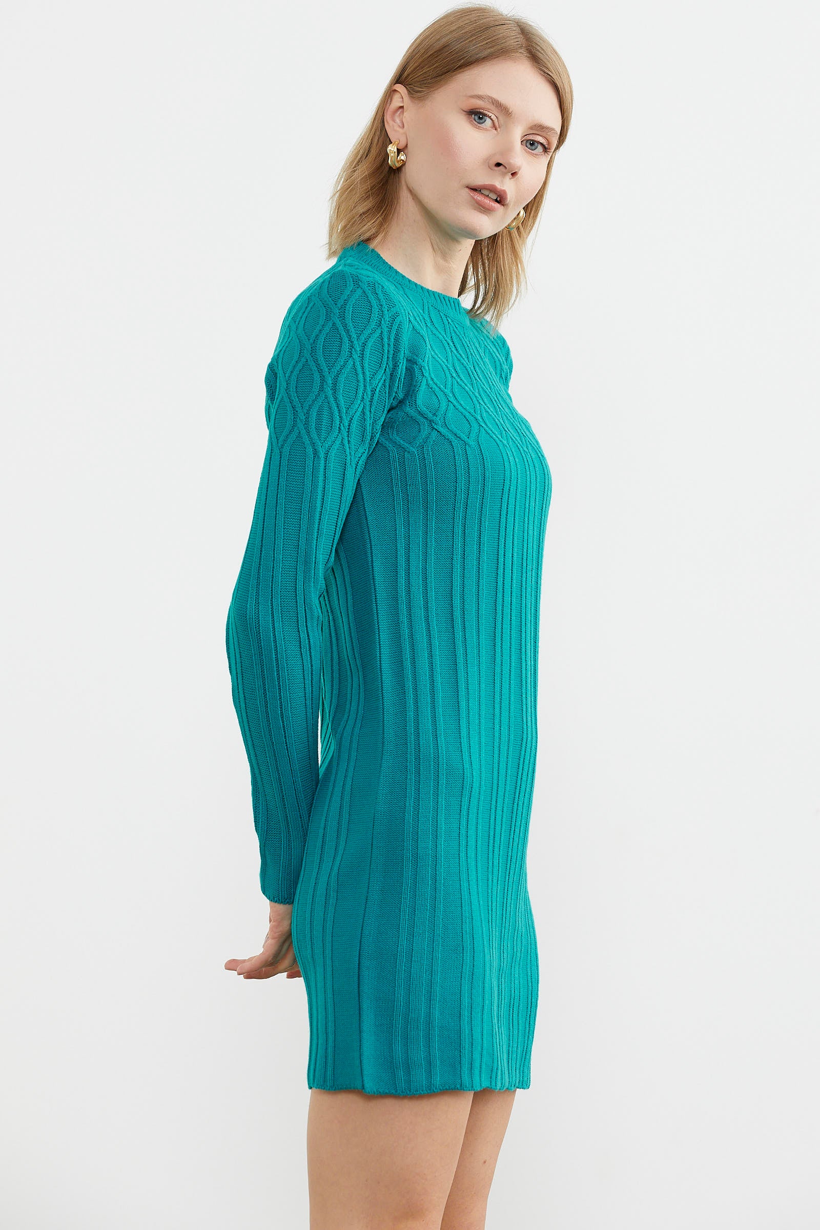Motif Detaylı Mini Triko Elbise - Turkuaz