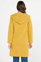 Nakış Desenli Kapüşonlu Kadın Triko Ceket - Güneş