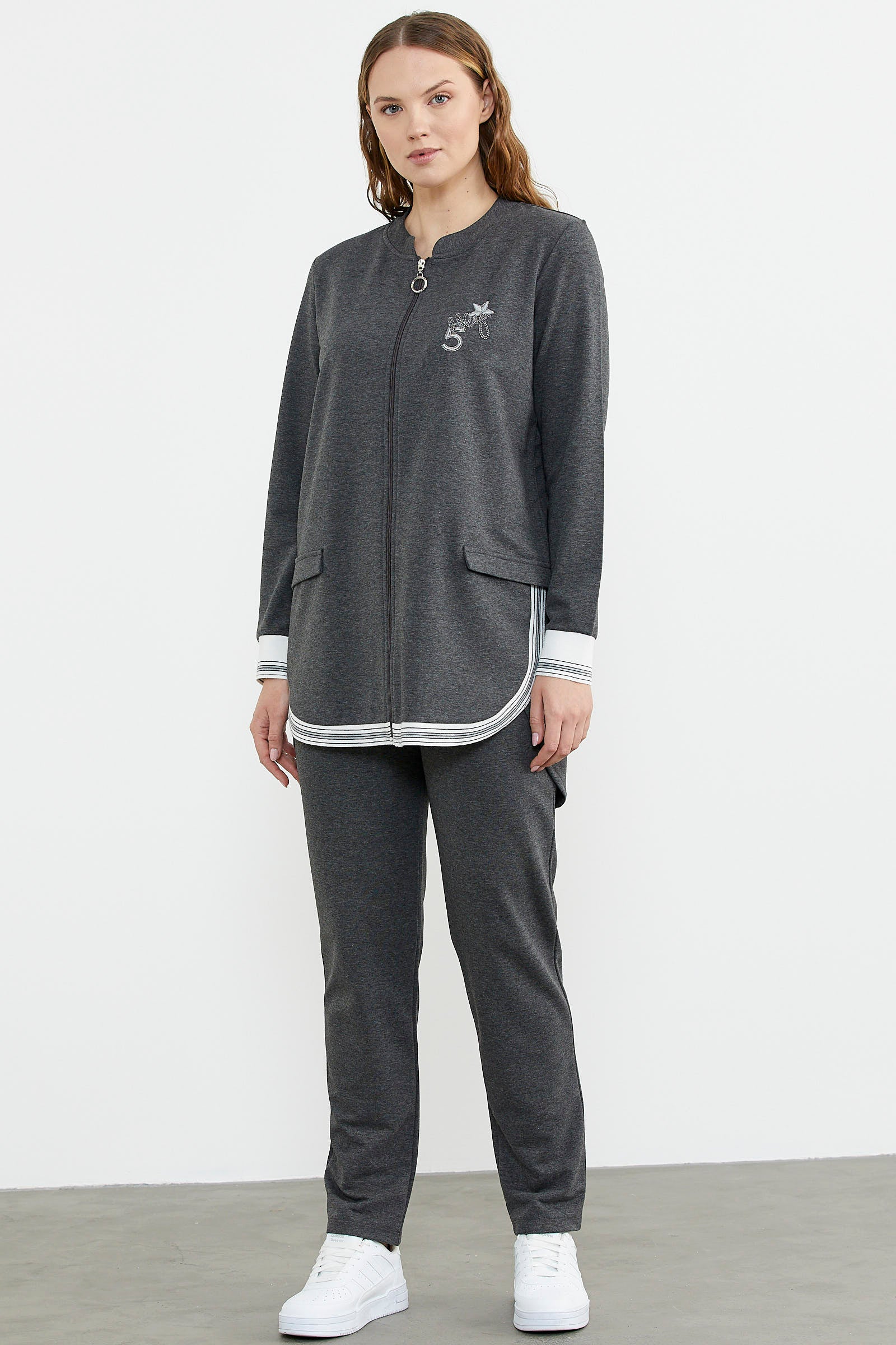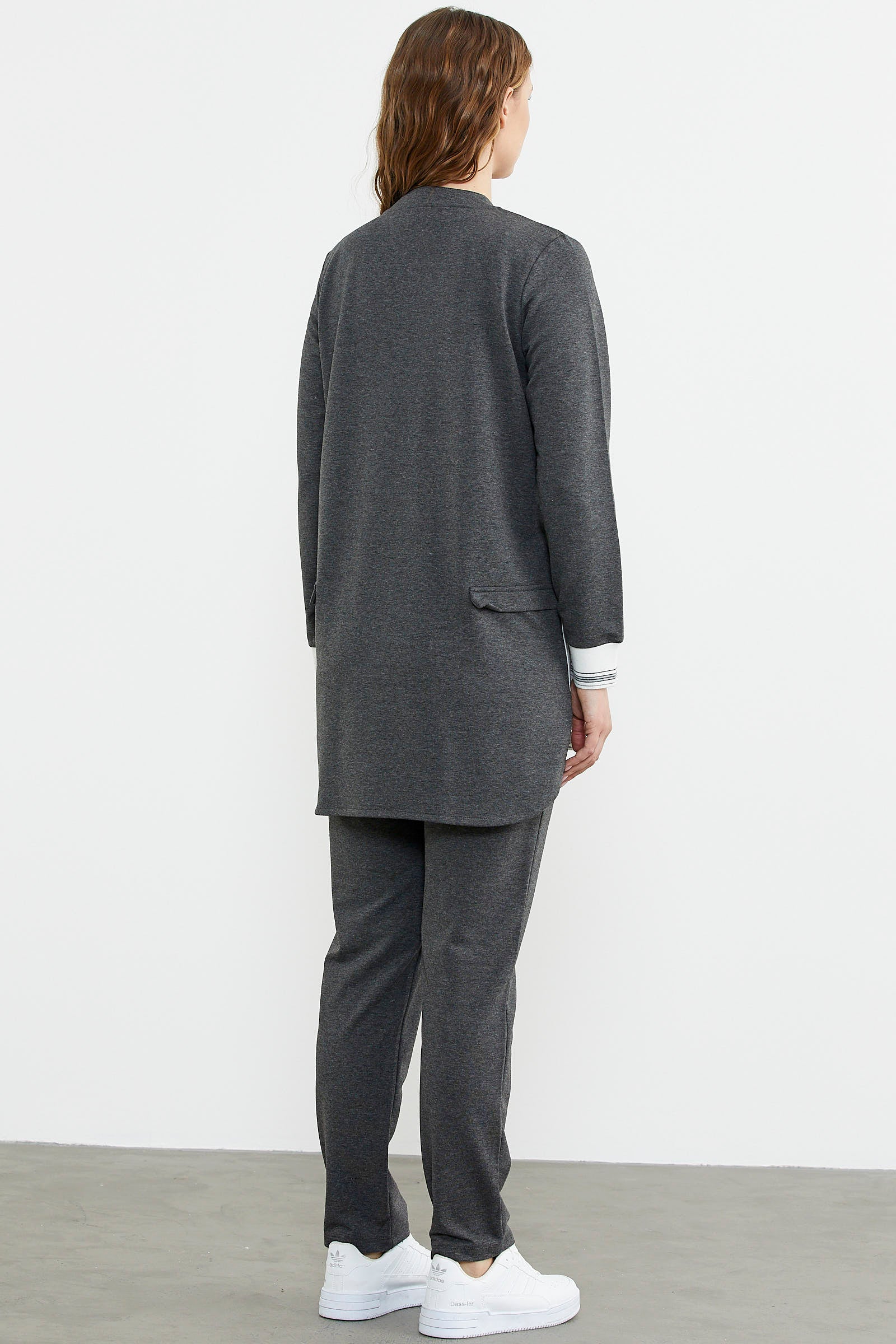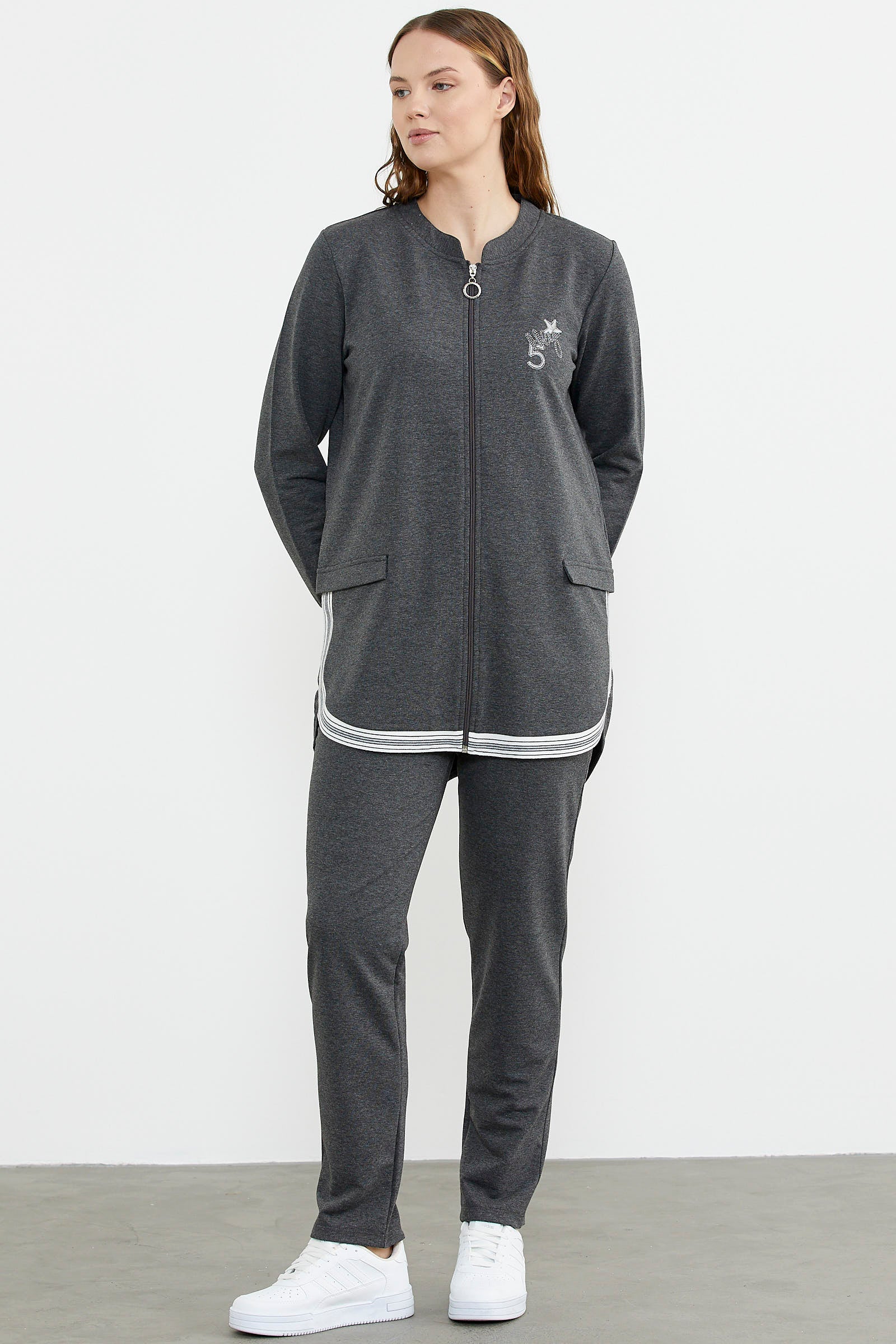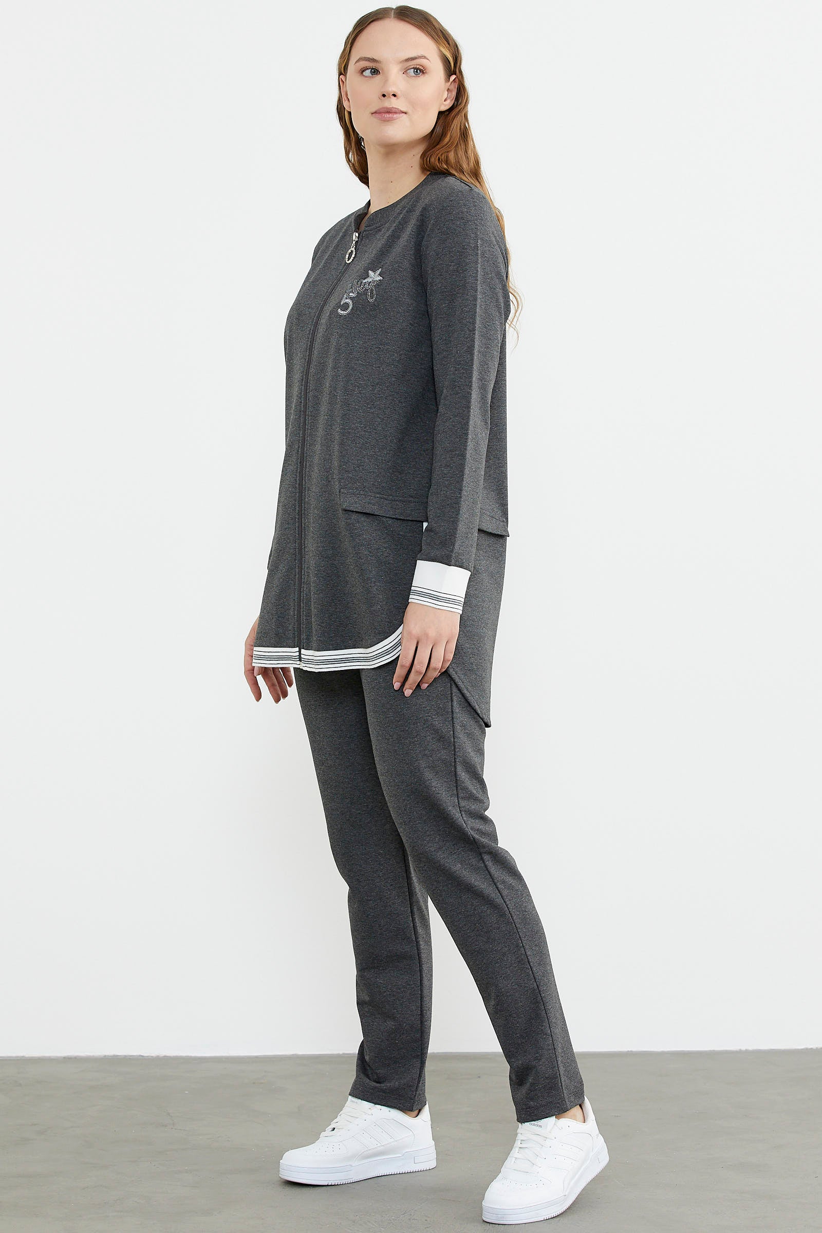 Neon Kombinli Rahat Kalıp Tunik Eşofman Takım - Antrasit