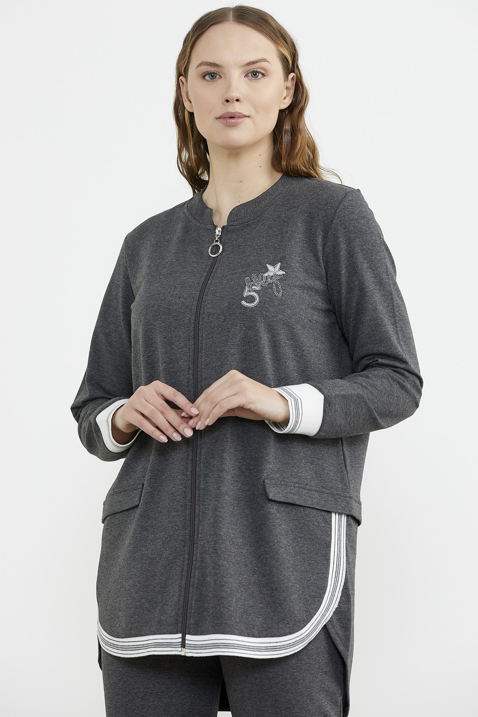 Hakim yaka fermuar kapamalı tunik eşofman takımrahat kalıp olarak üretilmiştir. Ev ve sokak stilinize kolaylıkla uyum sağlamaktadır.
