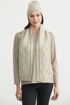 Yün karışımlı iplikten üretilen, kenarı geniş katlı, yumuşak dokulu triko bere.