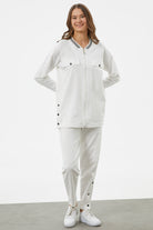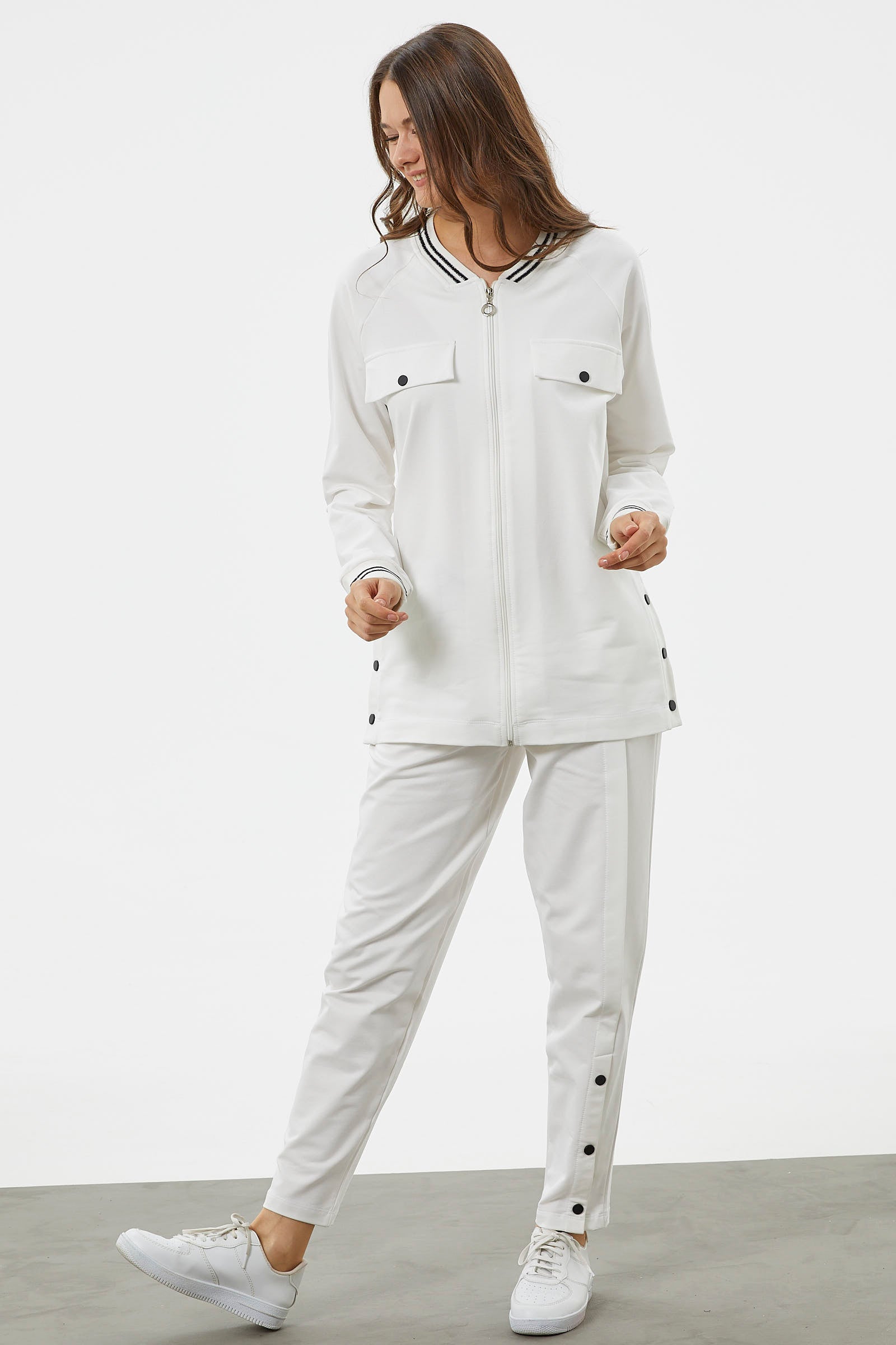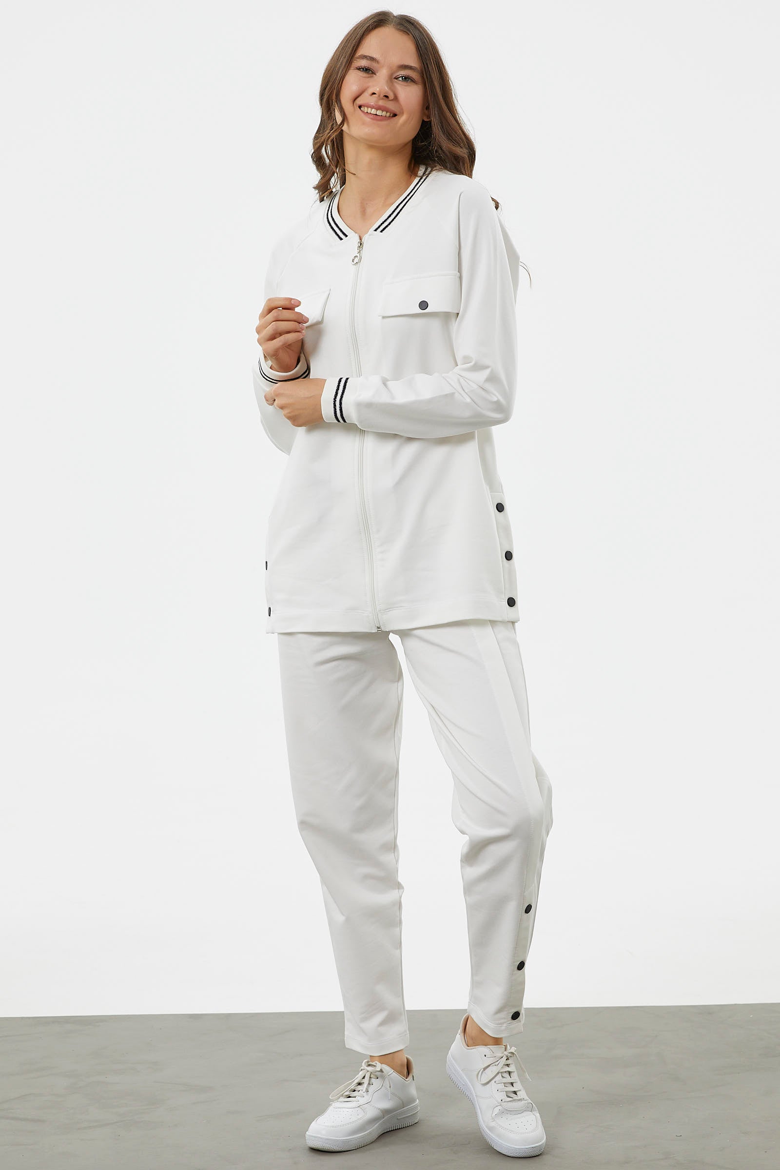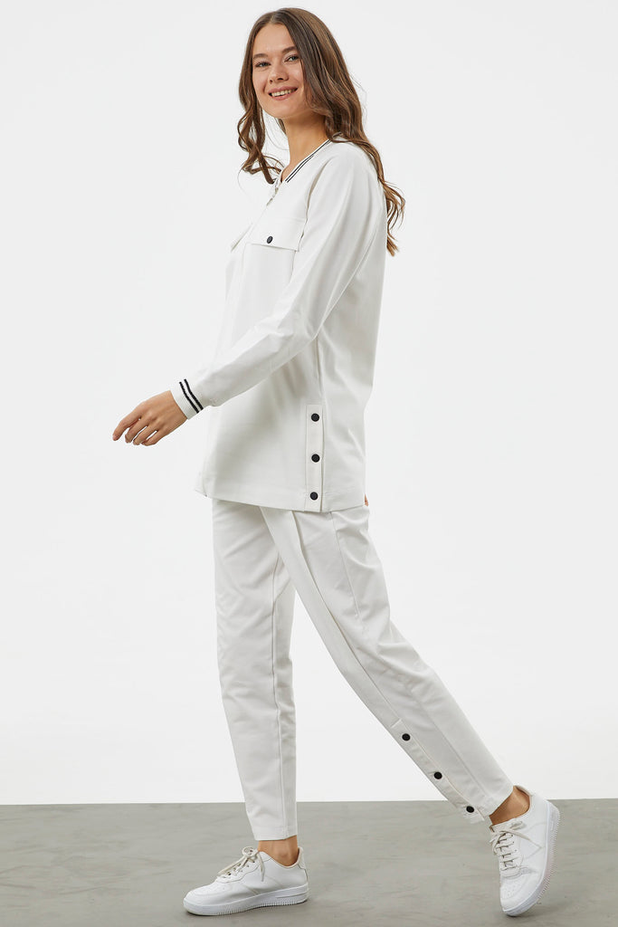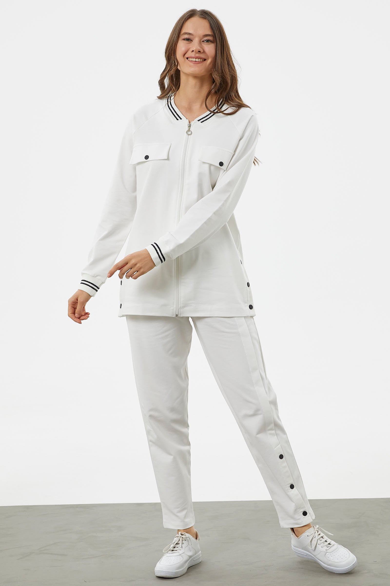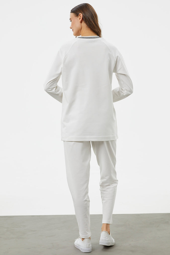 Örme Yaka Fermuarlı Tunik Eşofman Takım - Ekru