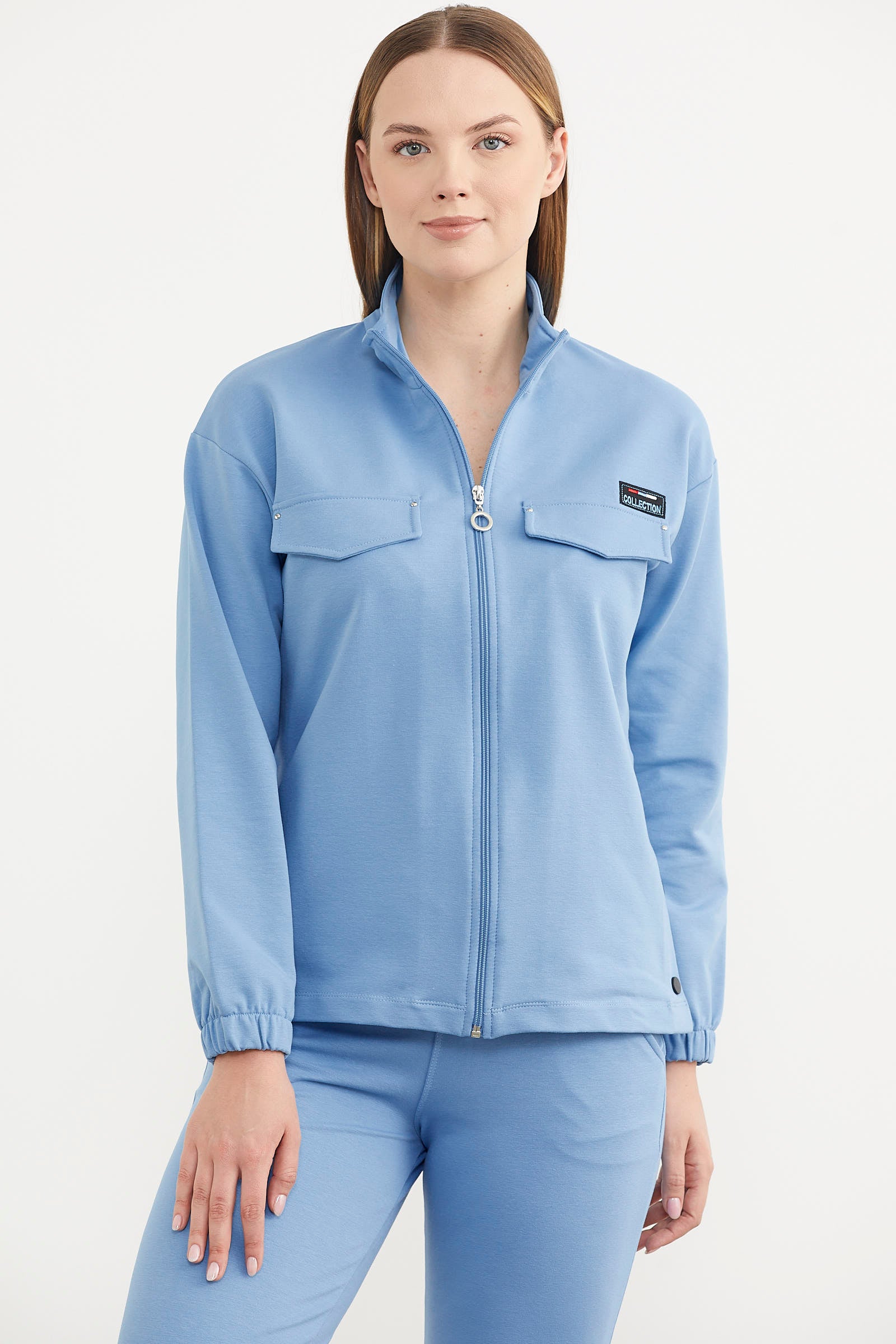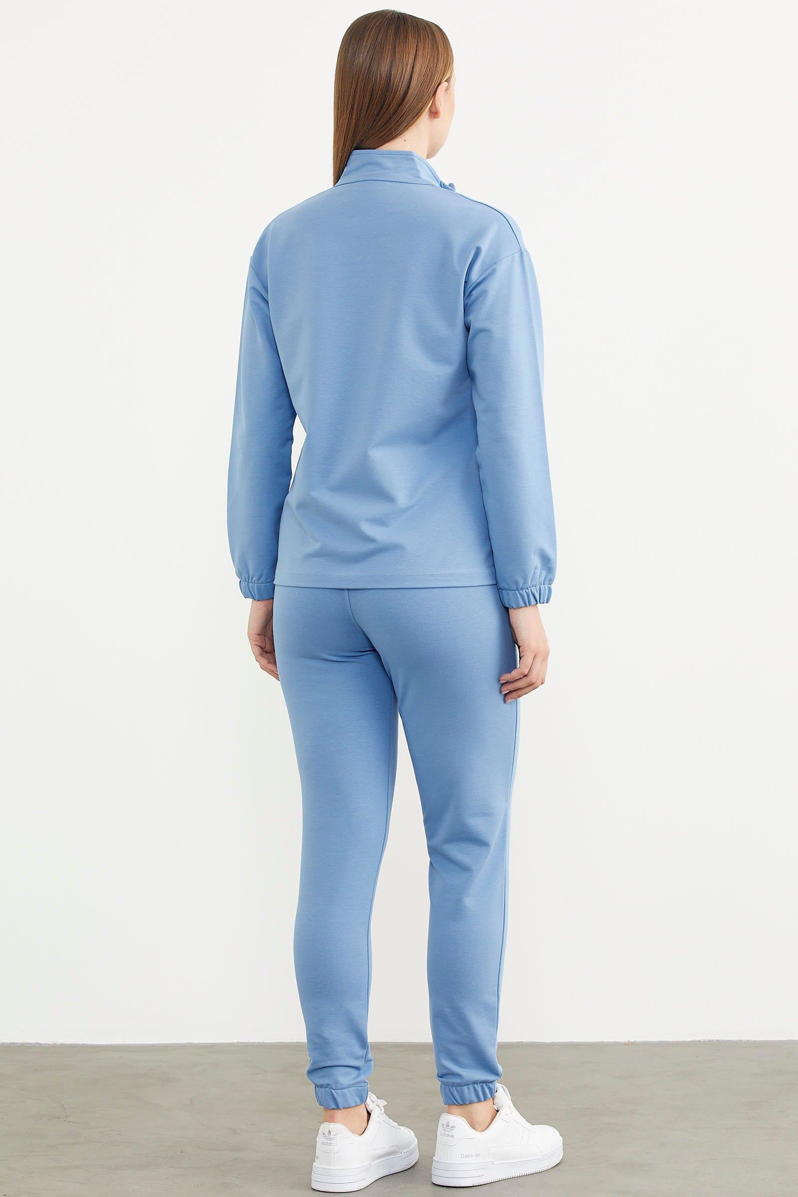 Dik yaka fermuar kapamalı sweat etek ucundaki yan çıt çıt detayıyla dikkat çekiyor. Jogger paça eşofman altıyla takım yapılmıştır.