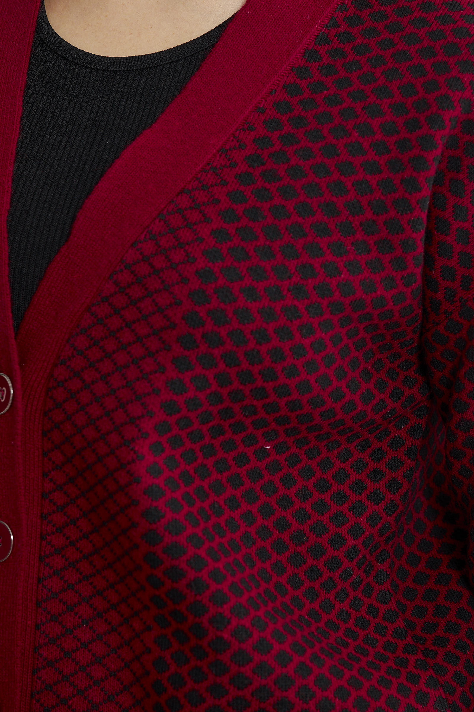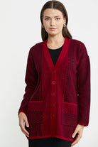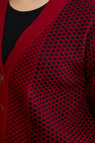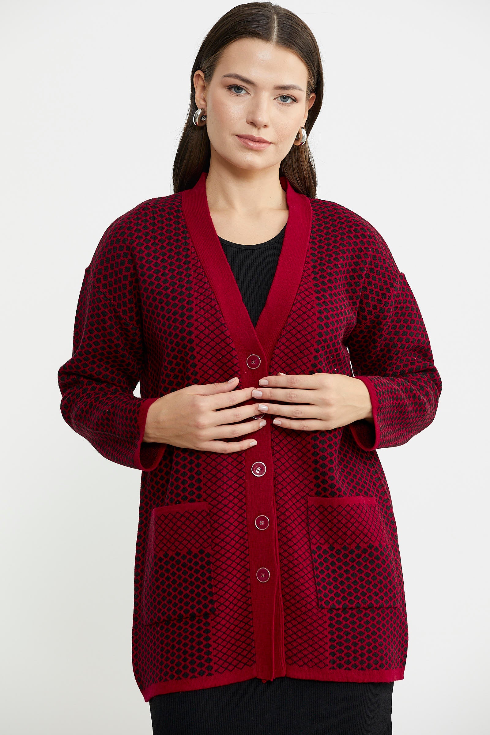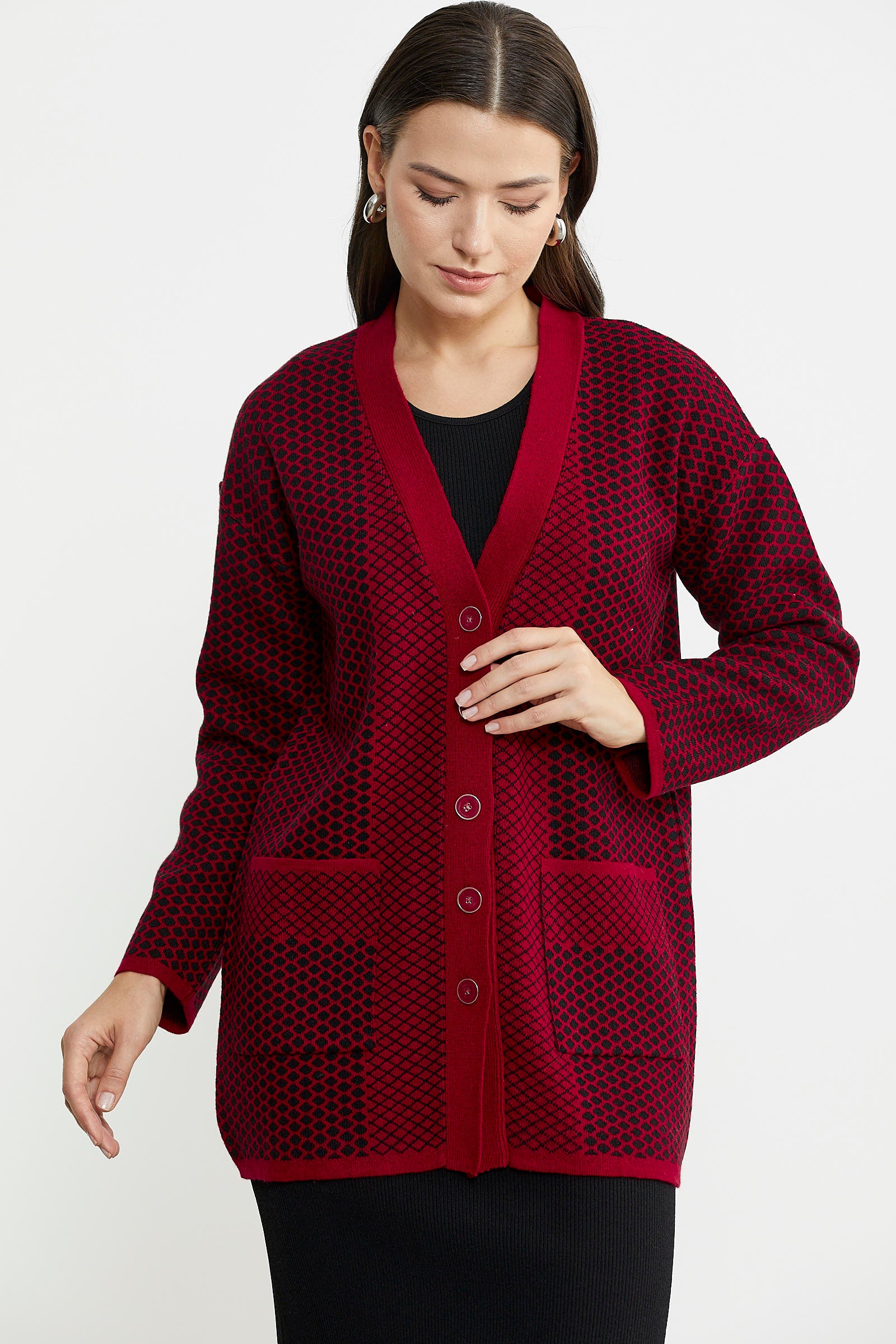 Oversize Cepli Petek Motifli Triko Ceket - Kırmızı