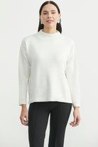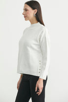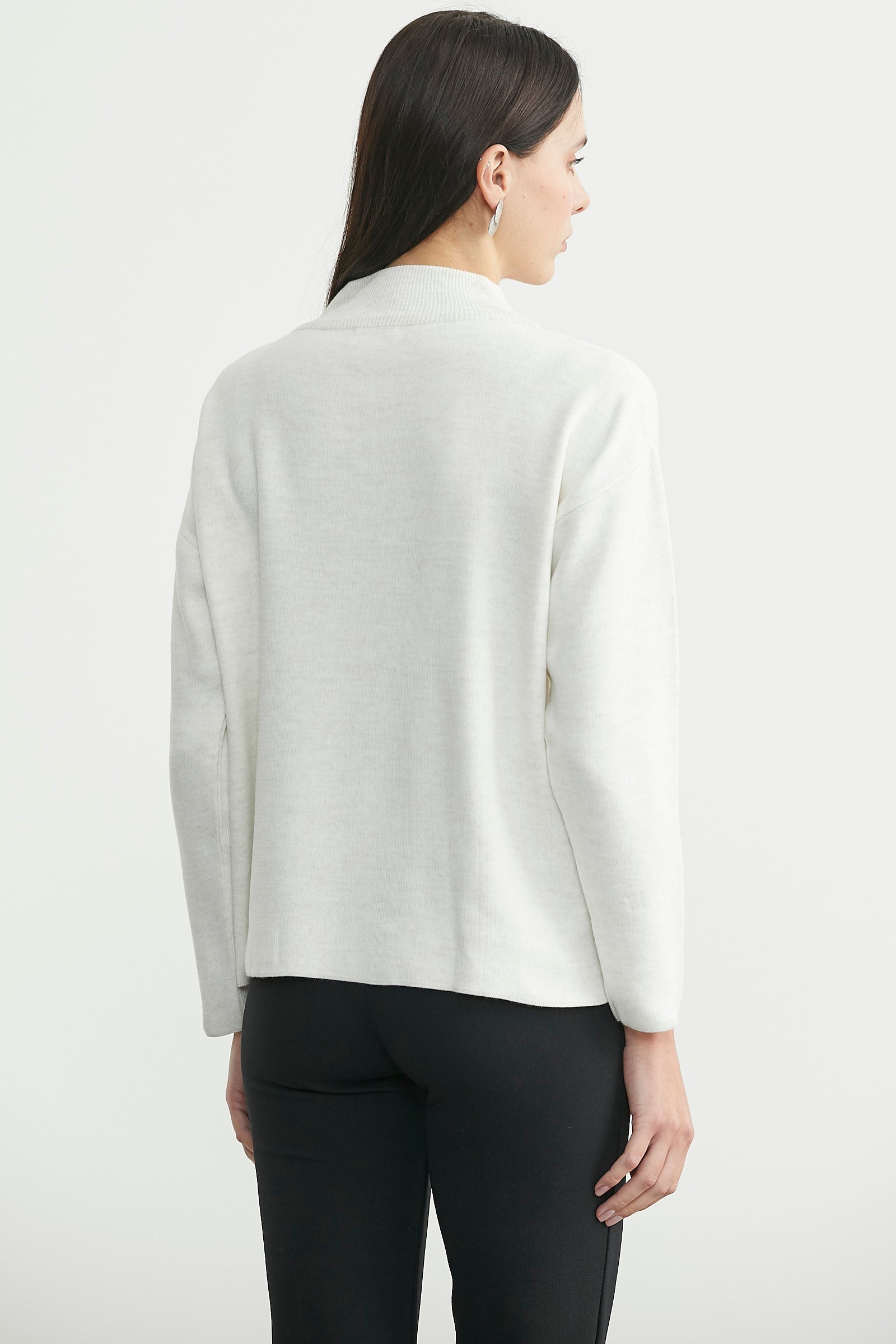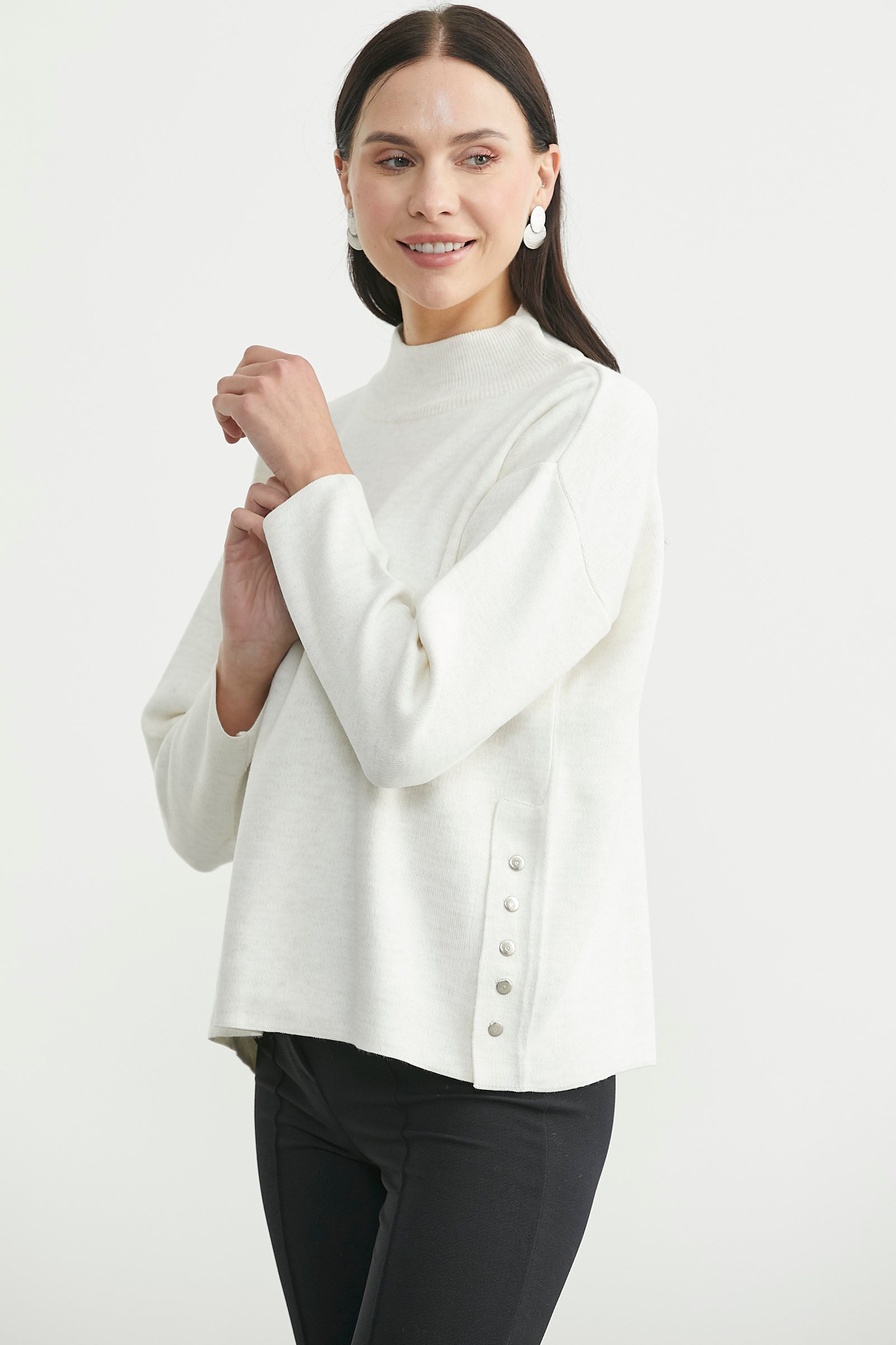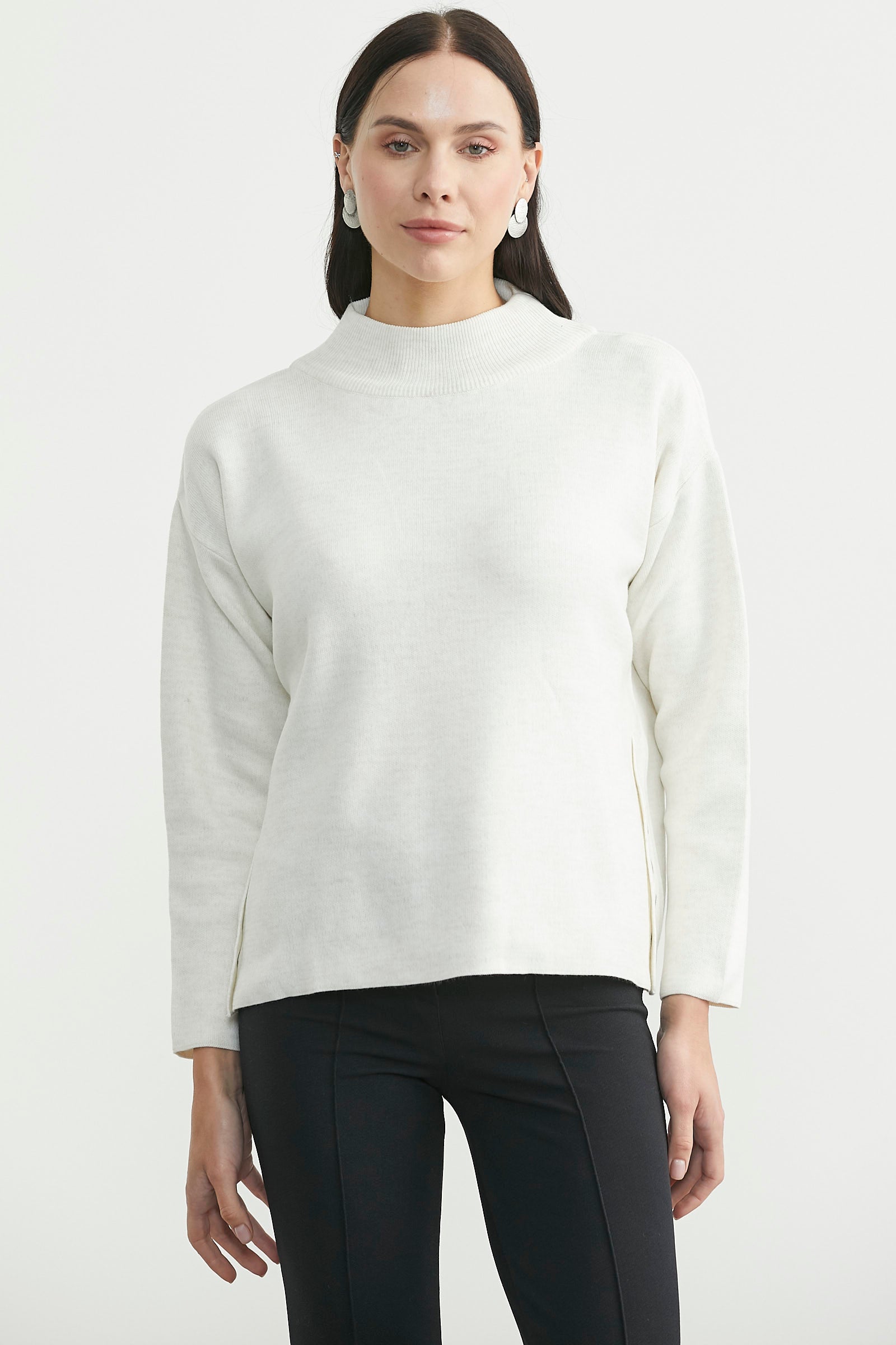 Dik yaka, lastik örgü, yanları çıt çıt detaylı, basic triko kazak.
